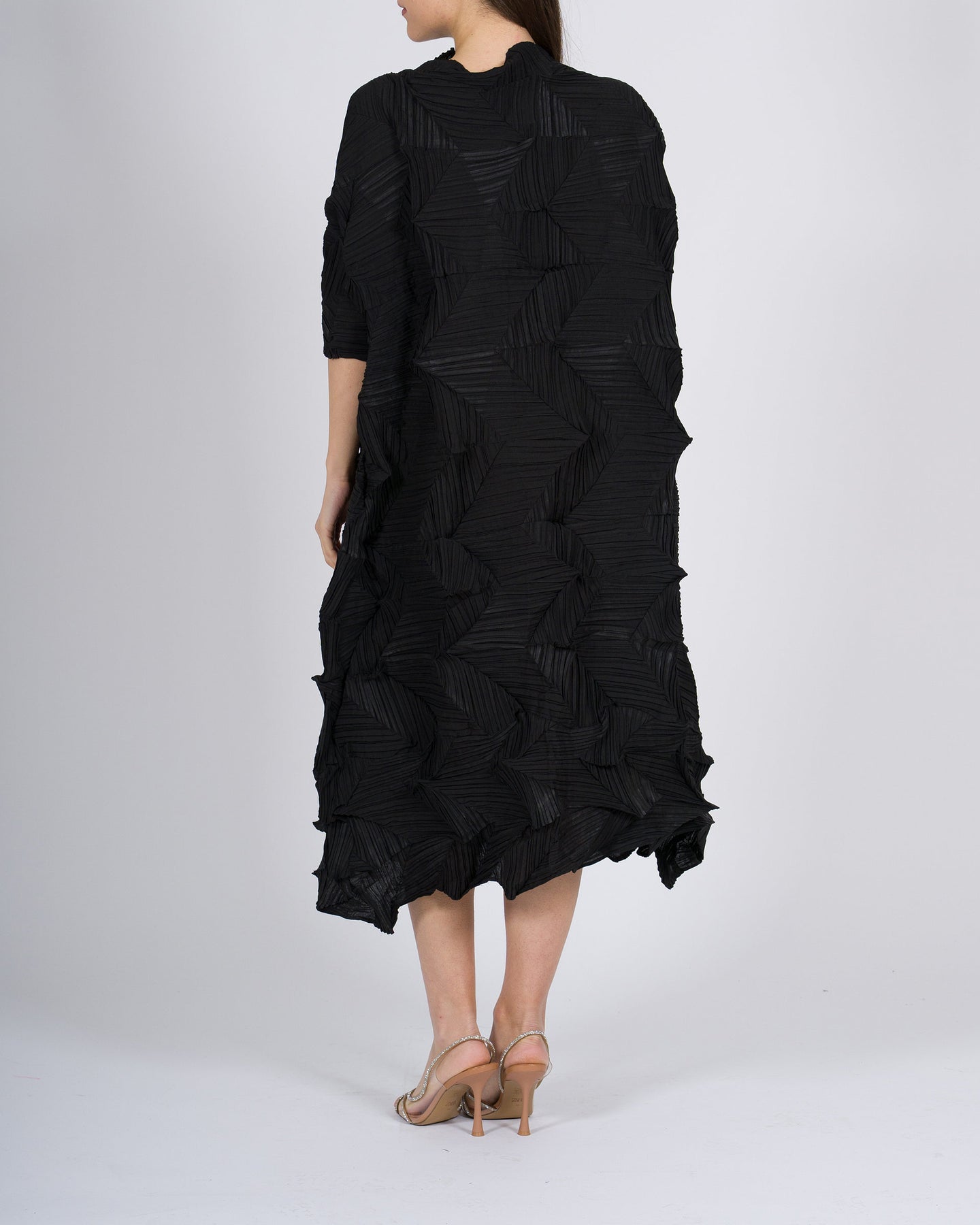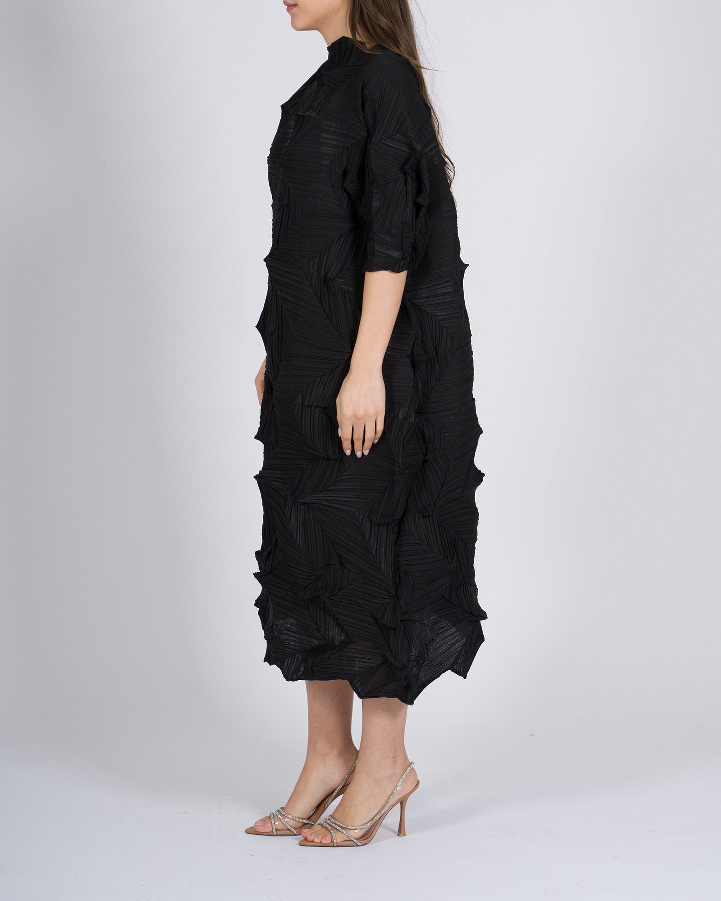 L'abito morbido MEIMEJ goffrato con linee geometriche avvolge la silhouette con leggerezza, combinando tessuto strutturato e dettagli distintivi per un look minimal e sofisticato.Un capo versatile, perfetto da abbinare a sandali, blazer o accessori ricercati per outfit eleganti e moderni.
