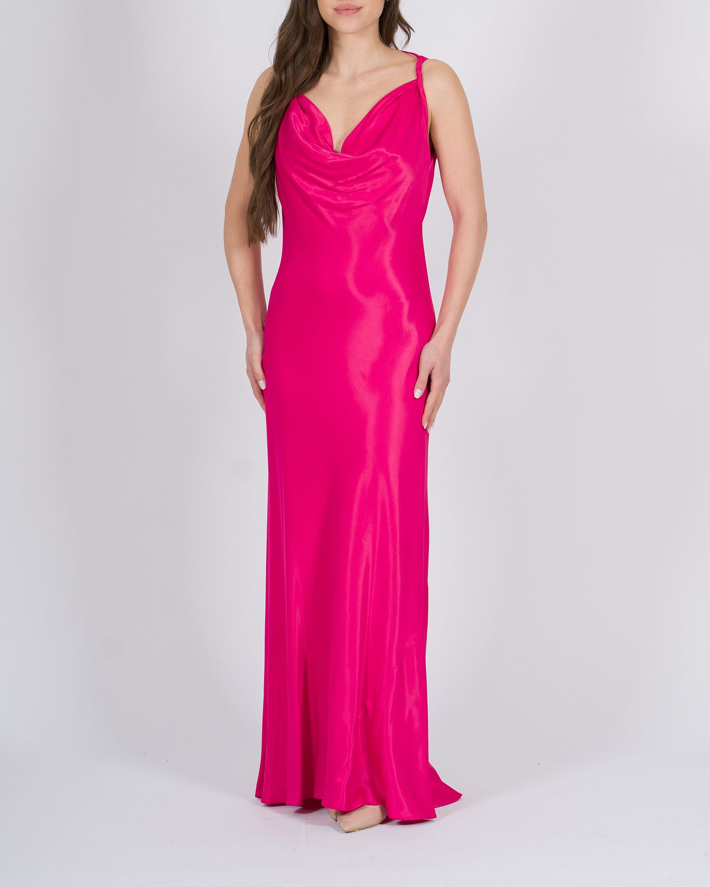 Sofisticato e di grande impatto, il Maxiabito drappeggiato è il capo perfetto per la donna che desidera un look elegante e scenografico. Realizzato in tessuto fluido di alta qualità, il drappeggio valorizza la silhouette e crea movimento armonioso ad ogni passo, conferendo charme e femminilità.Ideale per eventi esclusivi, serate di gala o cocktail raffinati, può essere abbinato a sandali gioiello, décolleté eleganti o clutch preziose per un outfit luxury da vera protagonista.