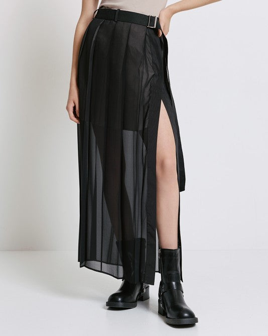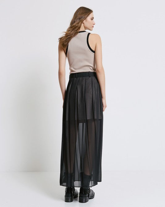 Gonna in tessuto chiffon con sottogonna in contrasto color carne.