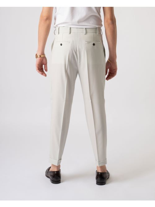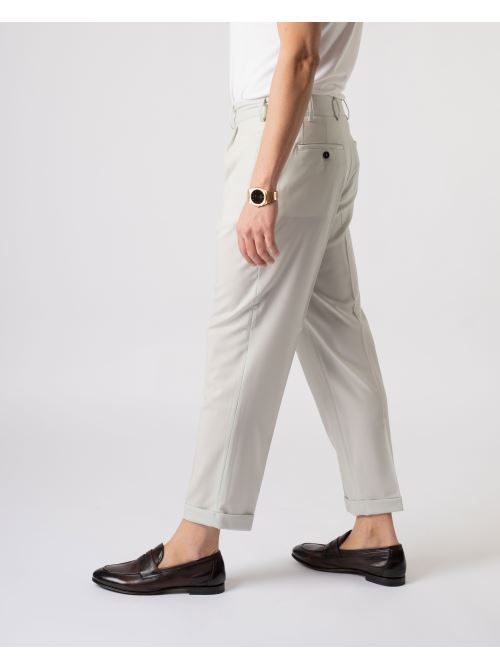 Pantalone fresco lana con una pence e risvolto al fondo colore stucco.