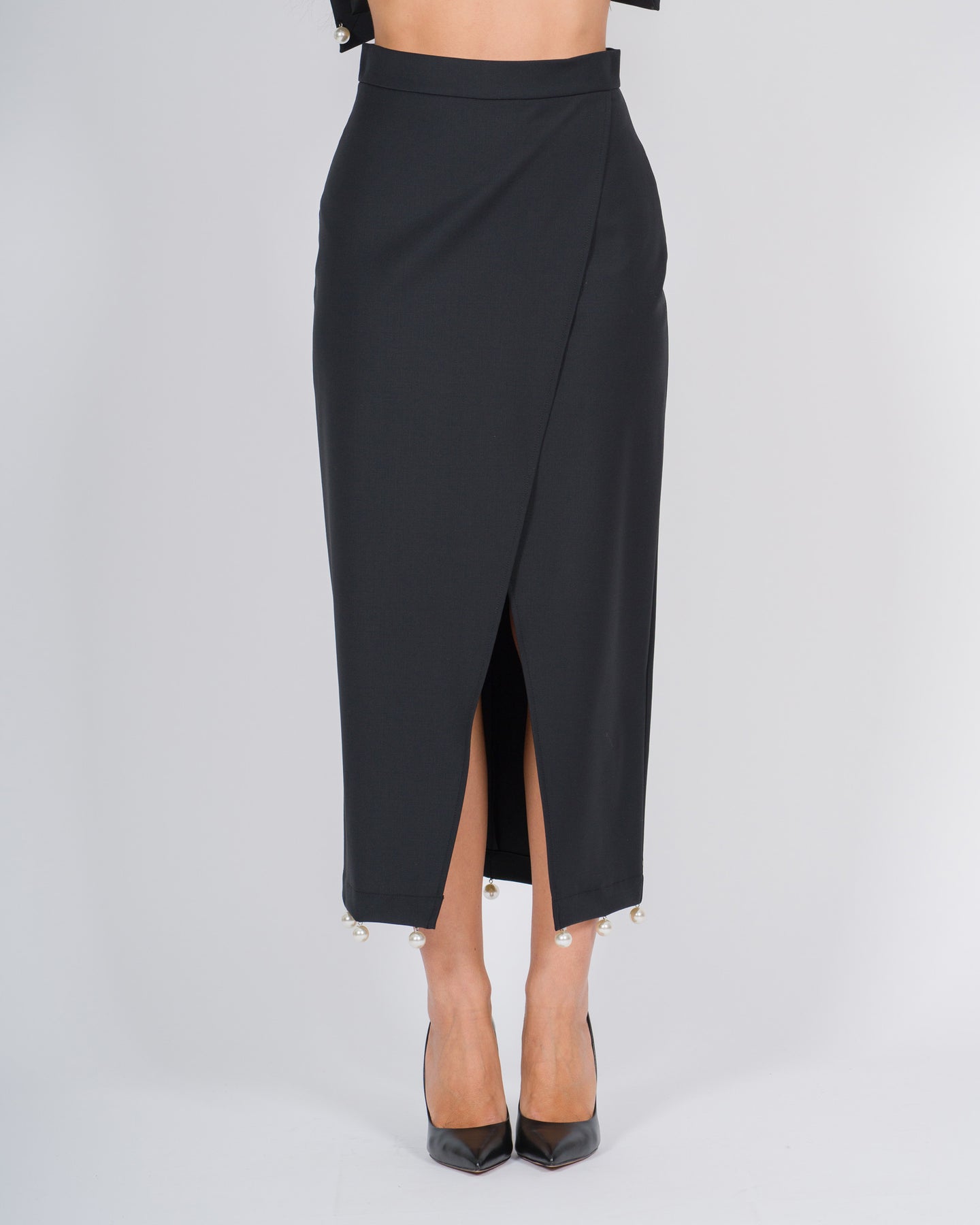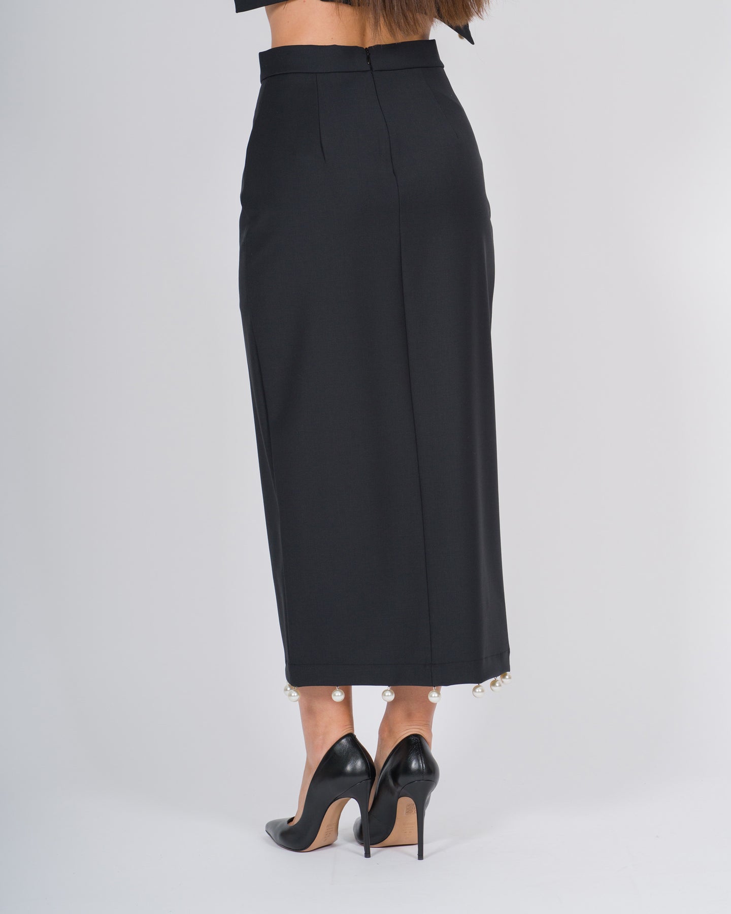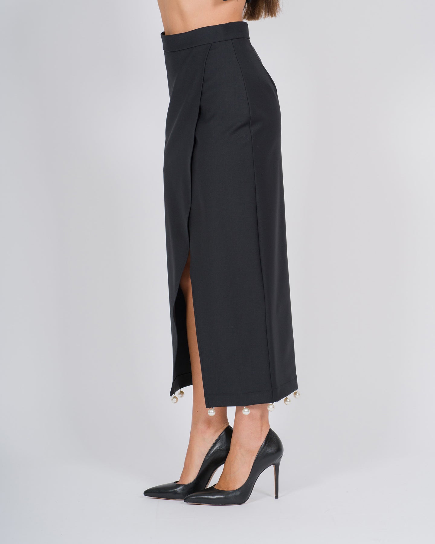 Sobria e sofisticata, questa gonna longuette in lana nera firmata Meimej interpreta l'eleganza contemporanea con linee essenziali e dettagli sartoriali. La chiusura a pacchetto definisce delicatamente il punto vita, mentre lo spacco frontale dona movimento e un'allure femminile e moderna.Realizzata in lana morbida e strutturata, accompagna la silhouette con naturalezza, offrendo comfort e stile in ogni occasione. Perfetta con bluse fluide o blazer, è un capo versatile che unisce rigore e raffinatezza in un equilibrio impeccabile.