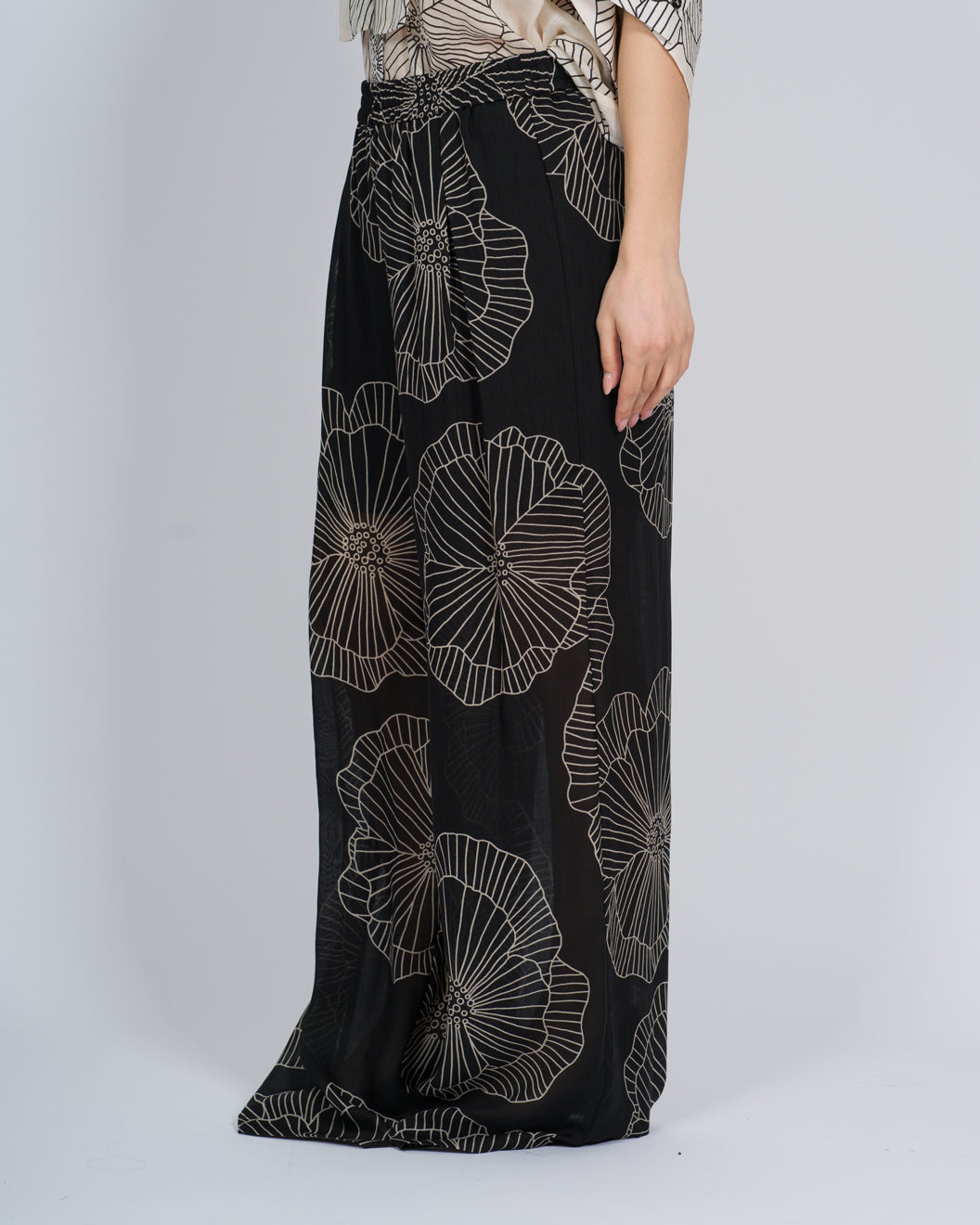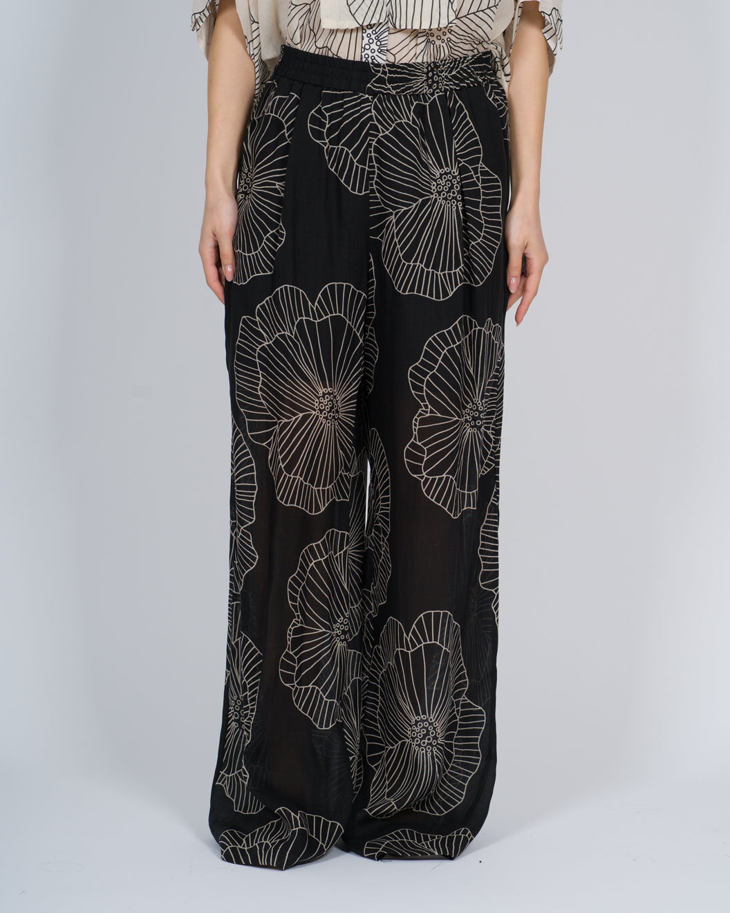 Esalta la tua eleganza con il nostro Pantalone Palazzo Fantasia! Il suo elastico in vita e la coulotte interna ti regalano comfort e libertà di movimento. Non rinunciare allo stile per la comodità, scegli il nostro pantalone!La modella indossa una Tag 40 italiana