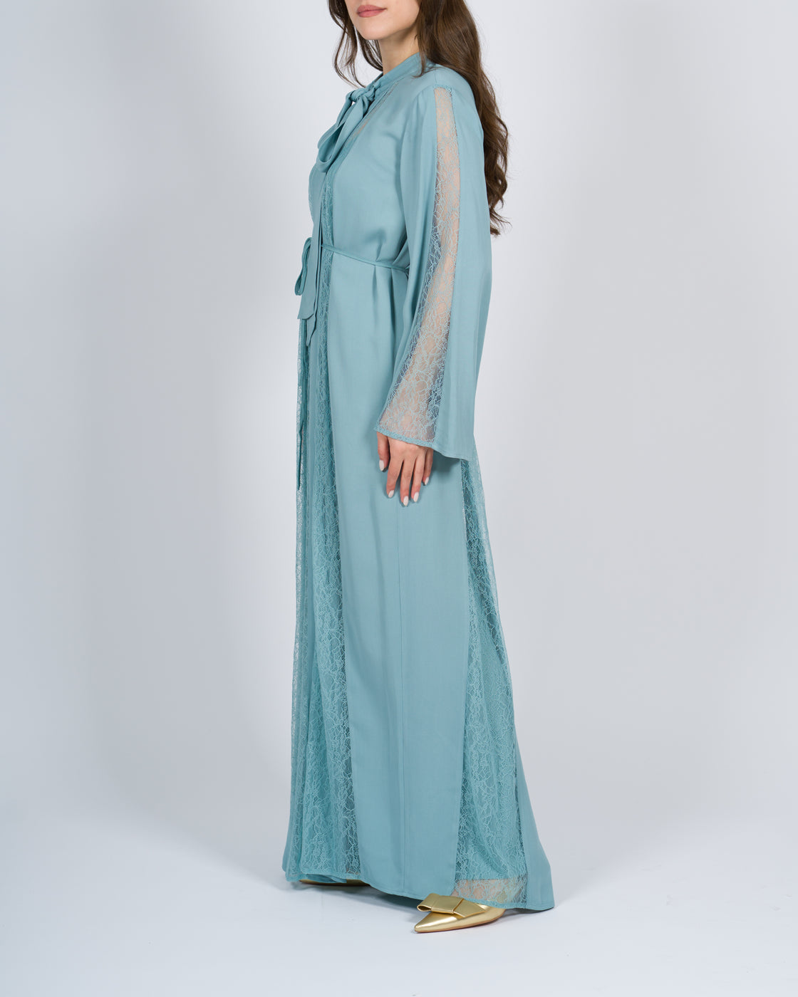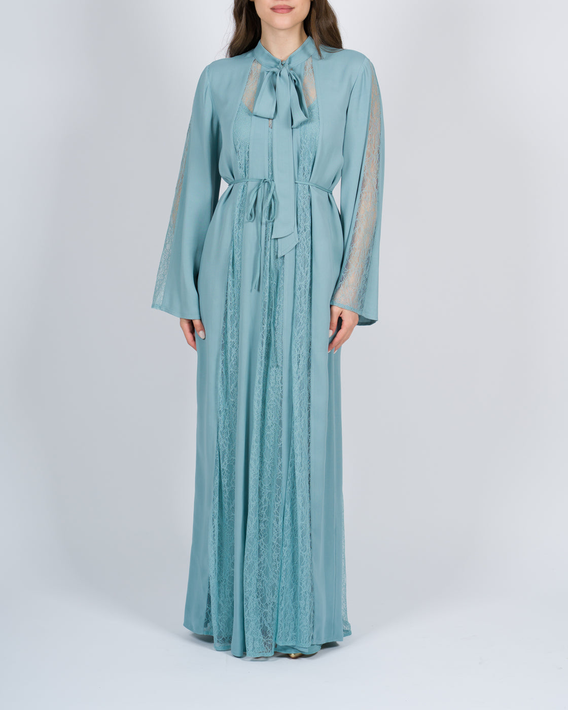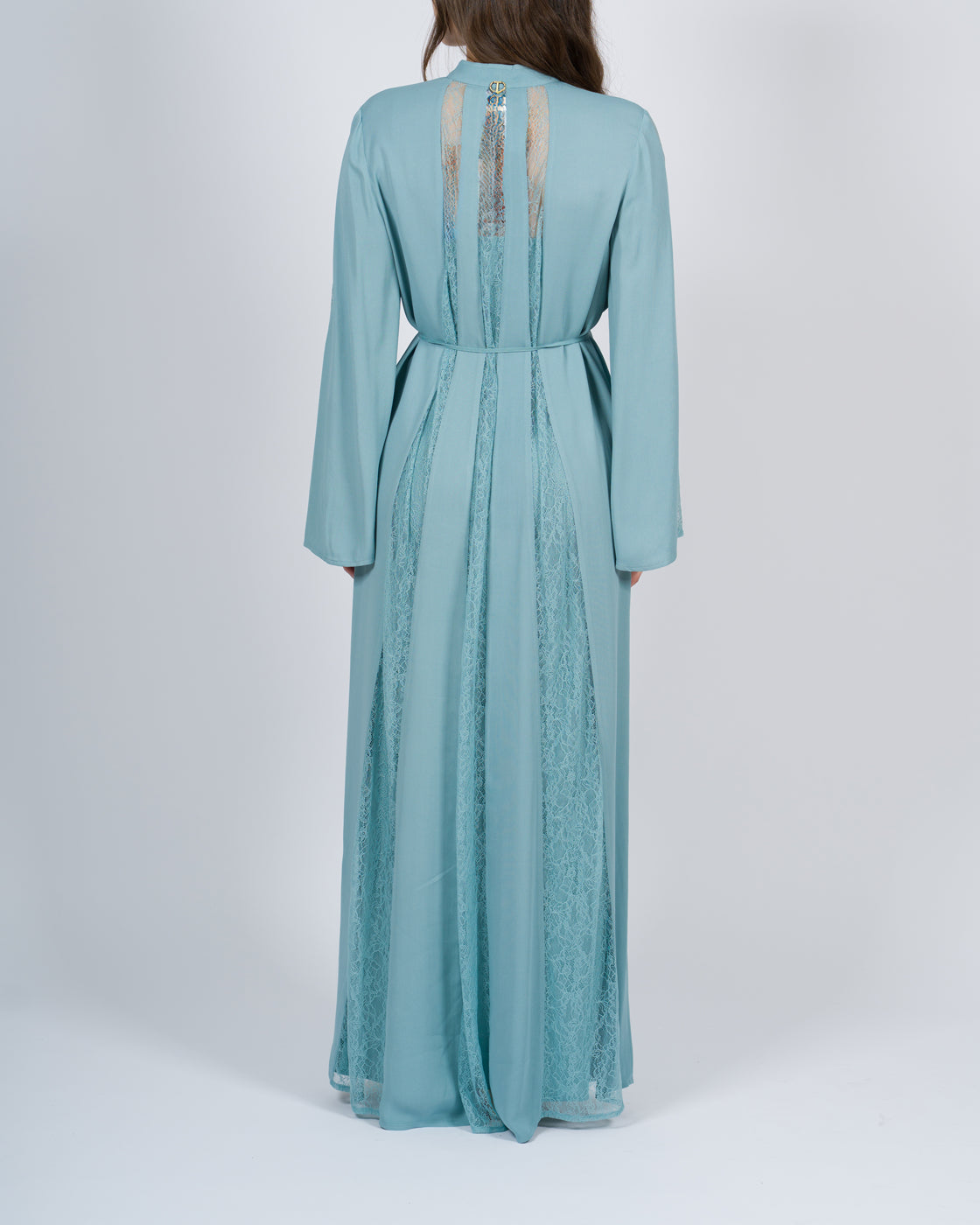 Abito lungo in crêpe e pizzo Chantilly azzurro