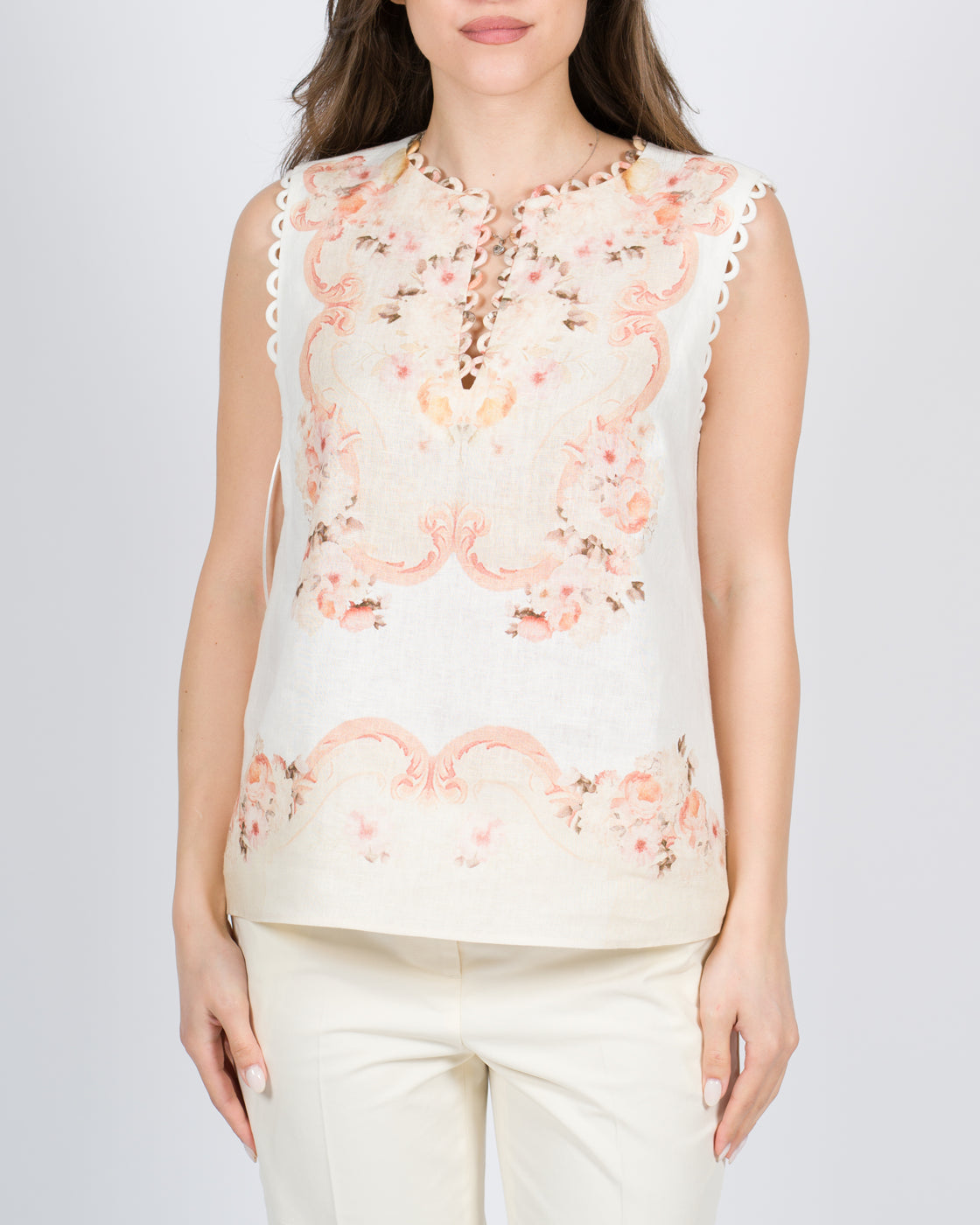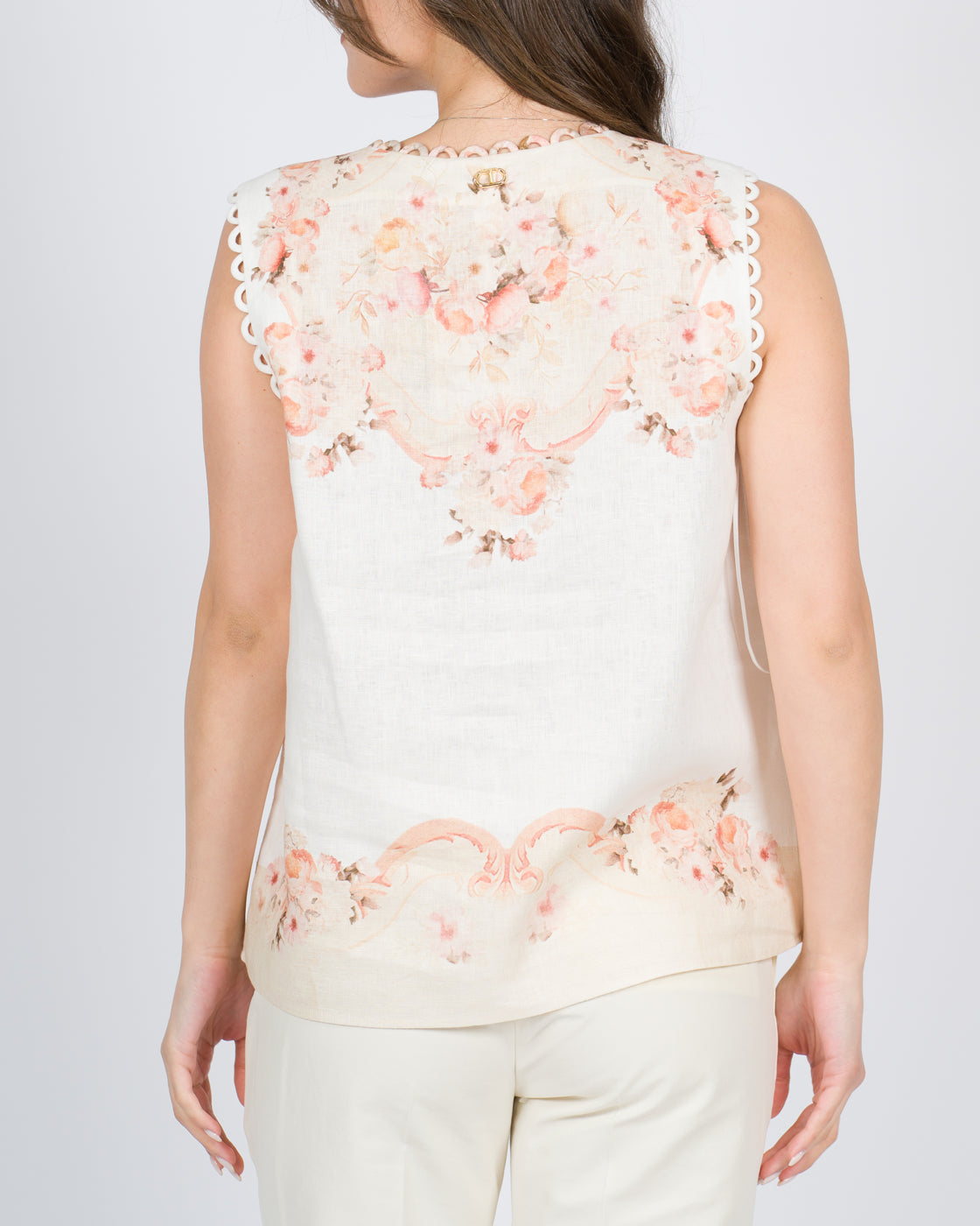 Camicia giro manica in seta con stampa a fiori.