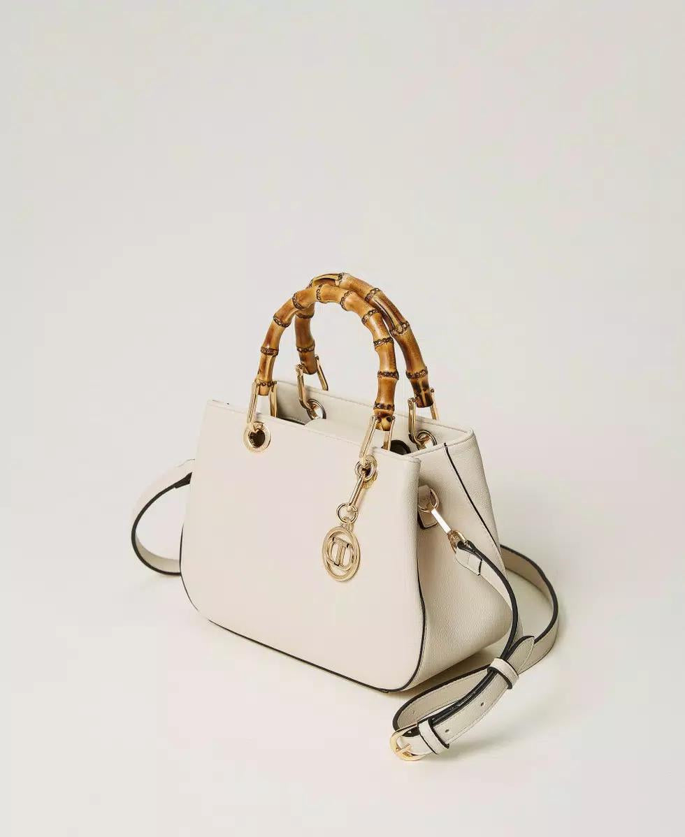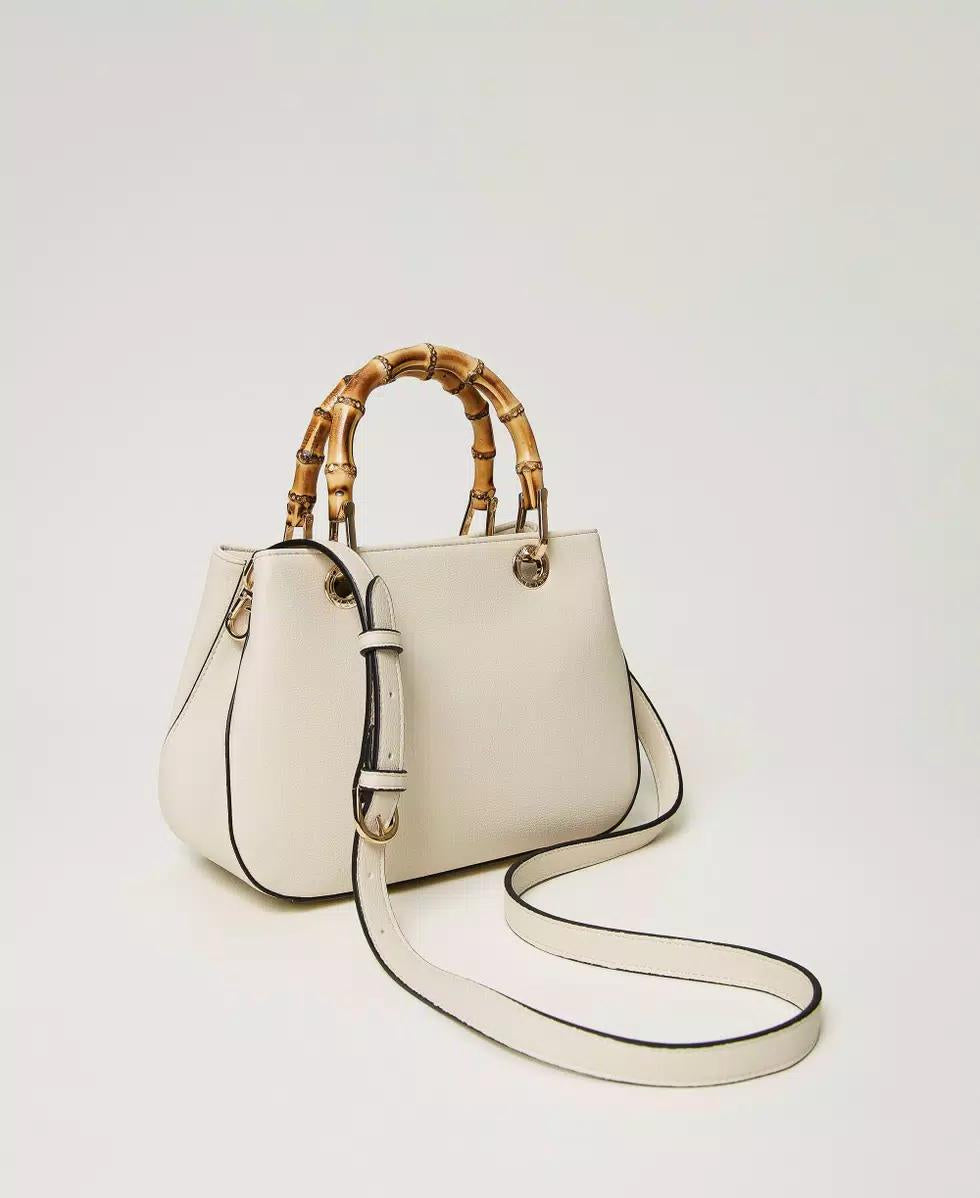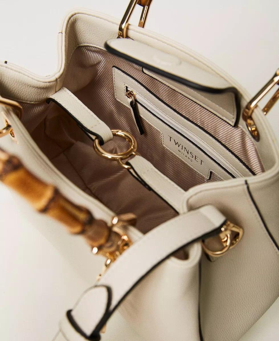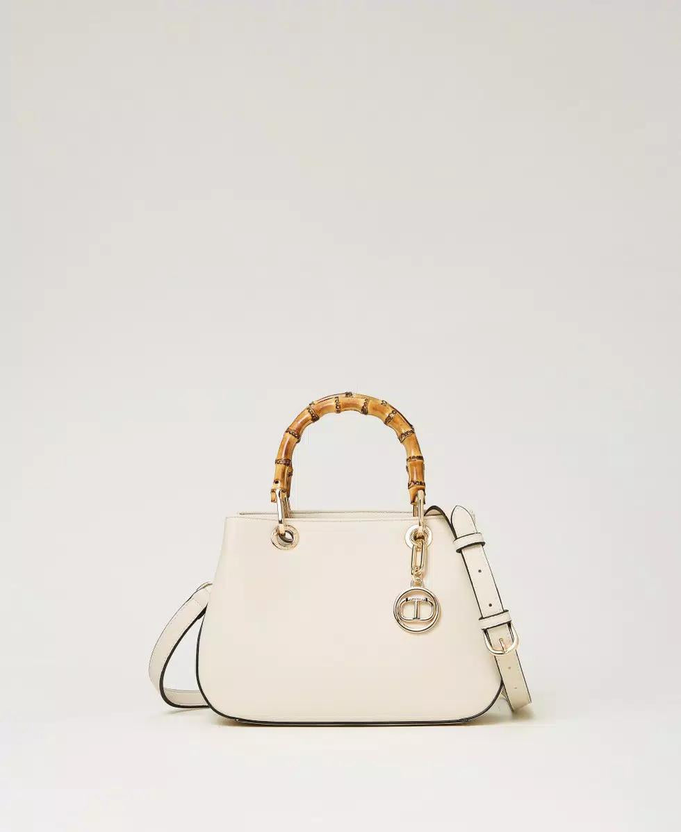 Borsa a tracolla 'Florence' effetto pelle con doppio manico a mano in bambù, tracolla rimovibile, chiusura con magnete, pendente Oval T.Ampiezza 26 cm, altezza 18,5 cm, profondità 11 cm. Ampiezza manico 10 cm. Lunghezza tracolla 52 cm100% poliuretanica. Fodera: 100% poliestereNon trattare con cloro, Non usare asciugatrice, Non stirare, Non lavare a secco