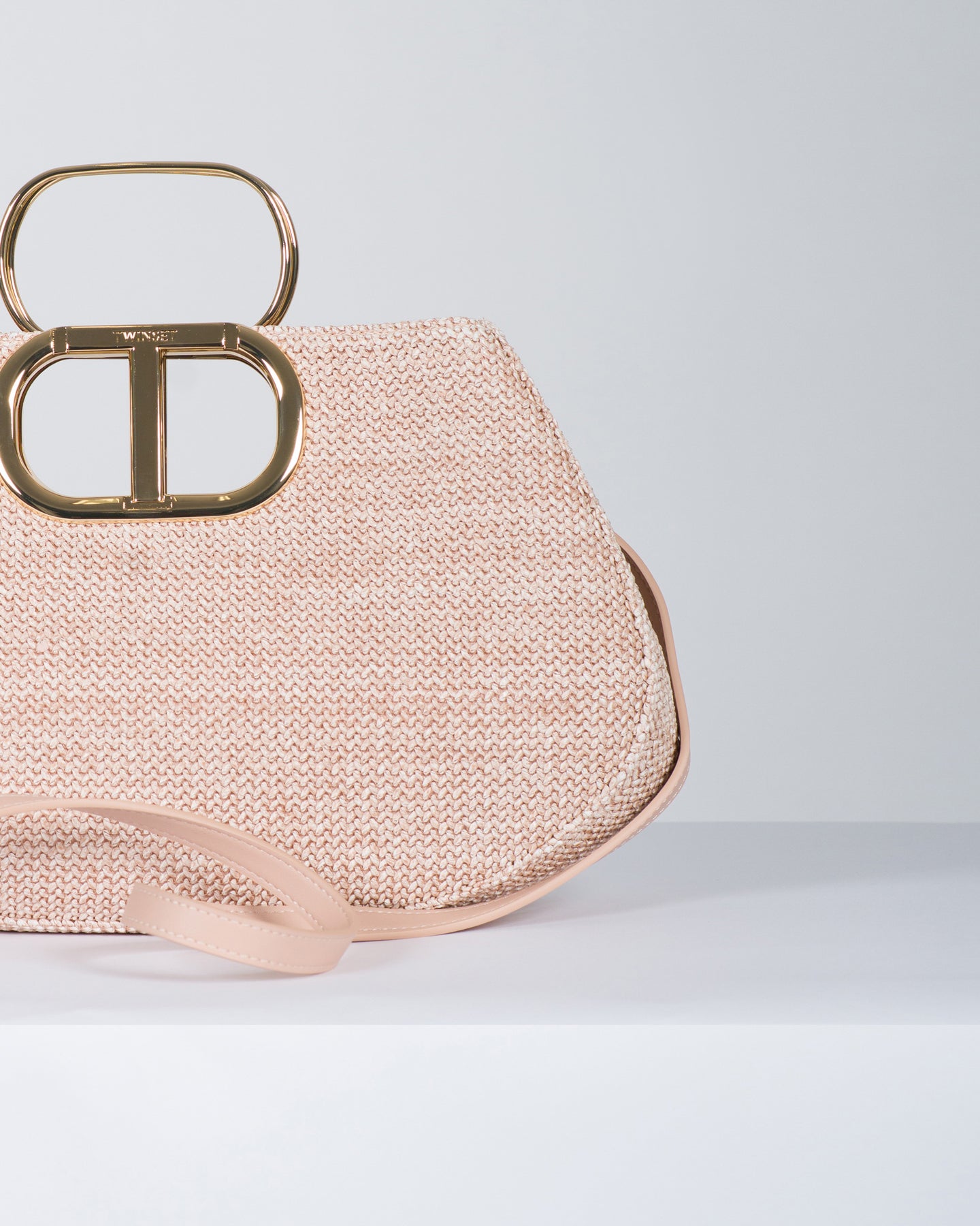 Borsa a tracolla 'Lila' effetto paglia intrecciata rosa