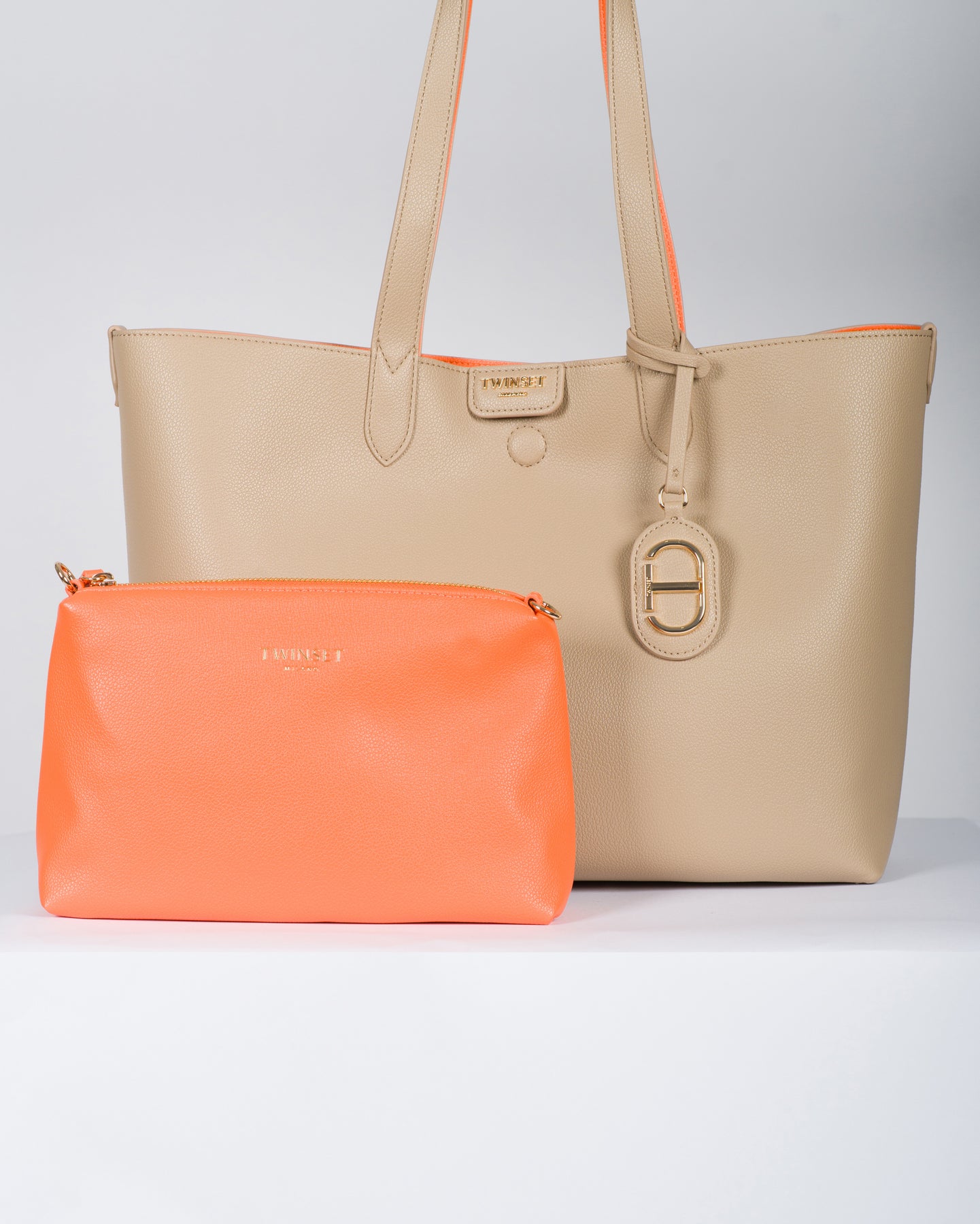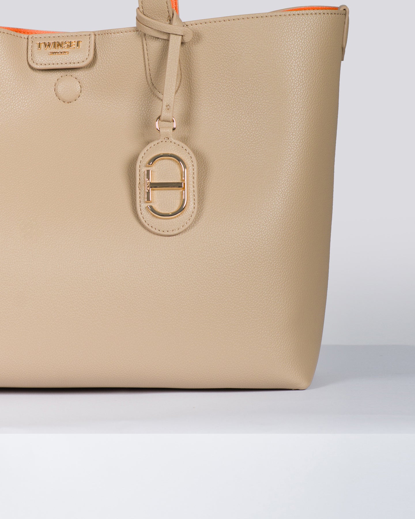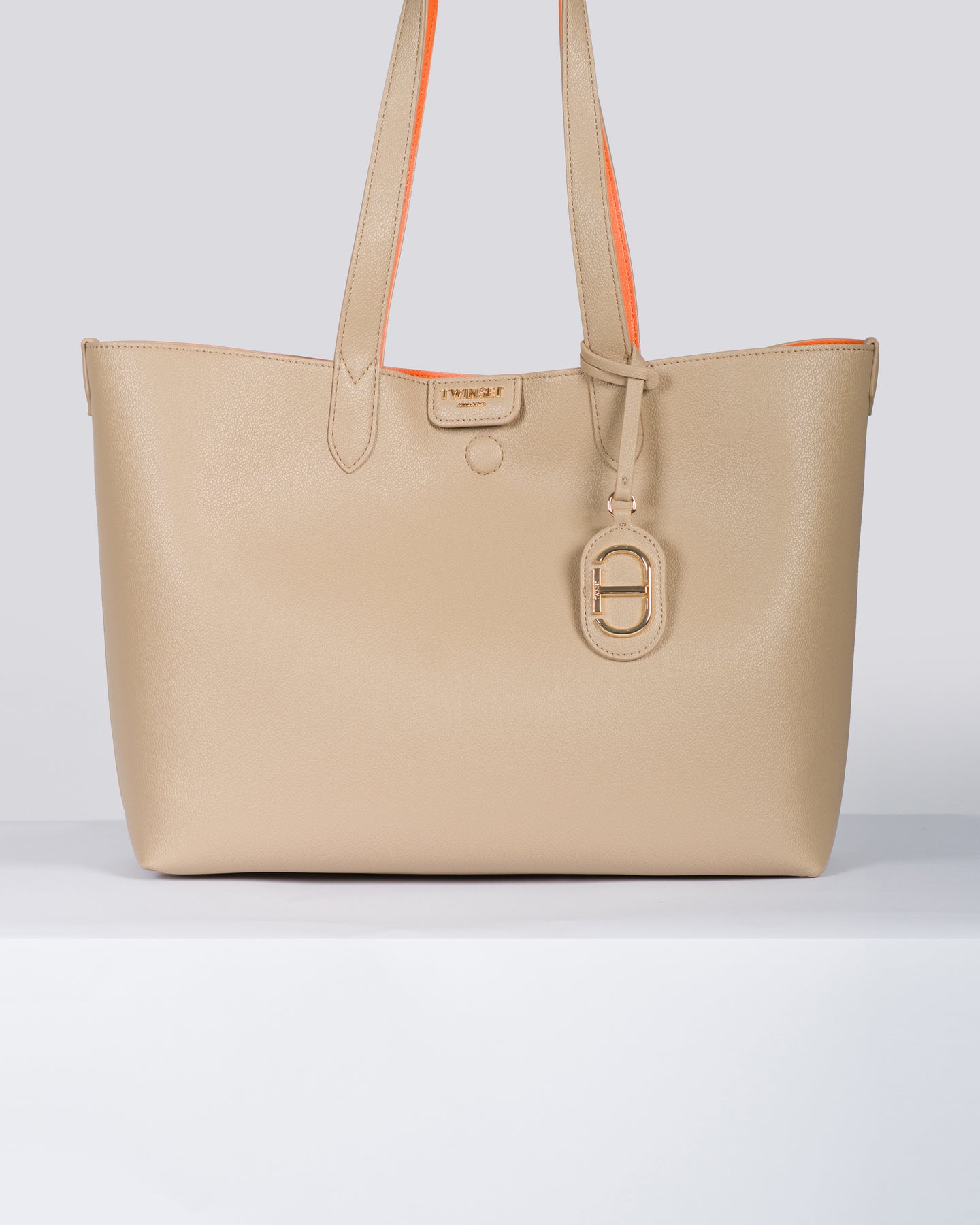 Twinset borsa a mano con chiusura. Realizzata in pelle sintetica.- Patella con chiusura magnetica.- Manici lunghi.- Compatibile con formato A4.- Il modello senza fodera.- Profondità: 12 cm.- Altezza: 28 cm.- Larghezza alla base: 37 cm.