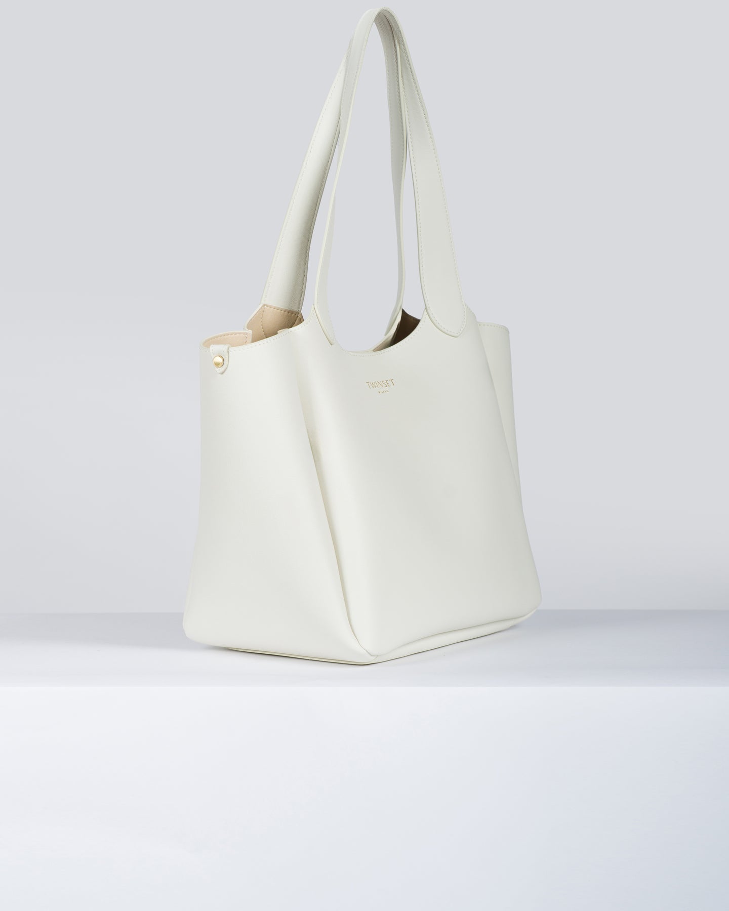 Borsa shopper 'Forever' made in Italy morbida e leggera in pelle di vitello nappato accoppiato con microfibra in colore a contrasto. Ha la chiusura con magnete, il doppio manico a spalla, il logo lettering stampato a caldo con carta oro, la tasca interna, sfoderata.-Ampiezza 30 cm, altezza 27 cm, profondità 17 cm. -Ampiezza manici 26 cm-Made in Italy-100% pelle bovina. -Fodera: 100% poliestere