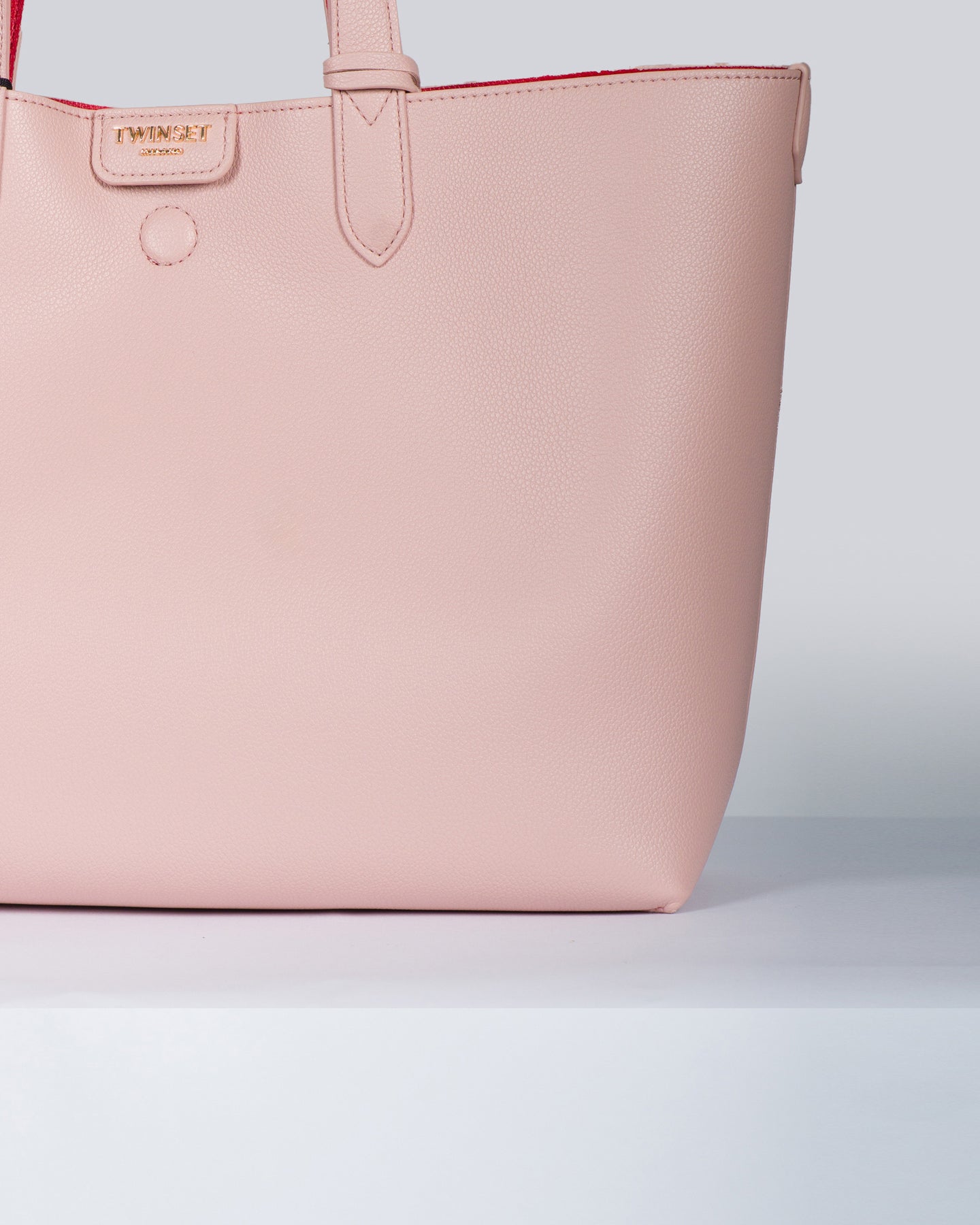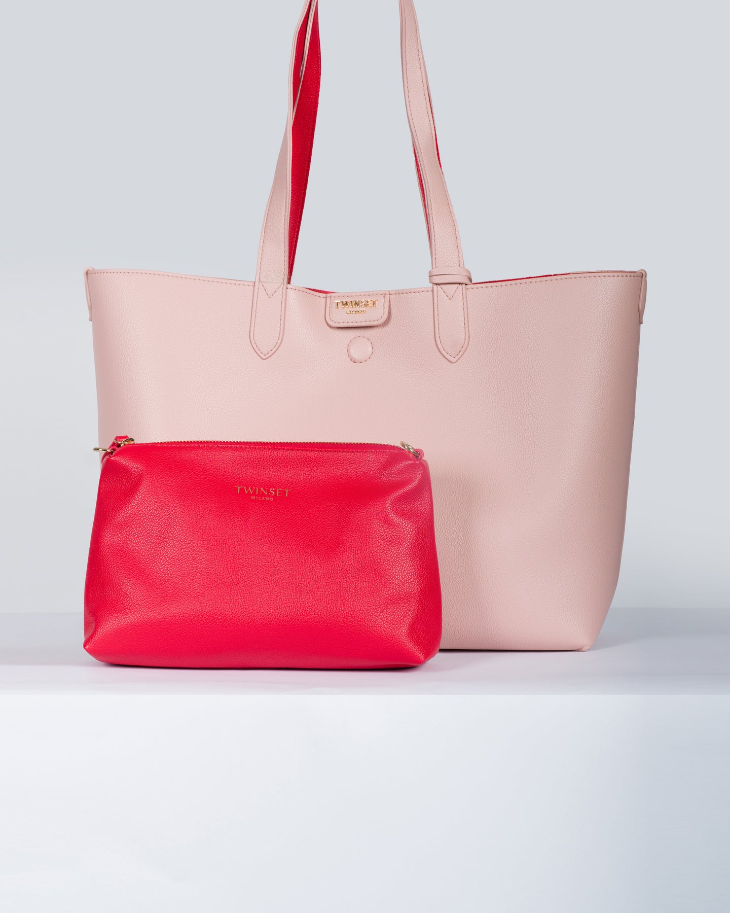 Twinset borsa a mano con chiusura. Realizzata in pelle sintetica.- Patella con chiusura magnetica.- Manici lunghi.- Compatibile con formato A4.- Il modello senza fodera.- Profondità: 12 cm.- Altezza: 28 cm.- Larghezza alla base: 37 cm.