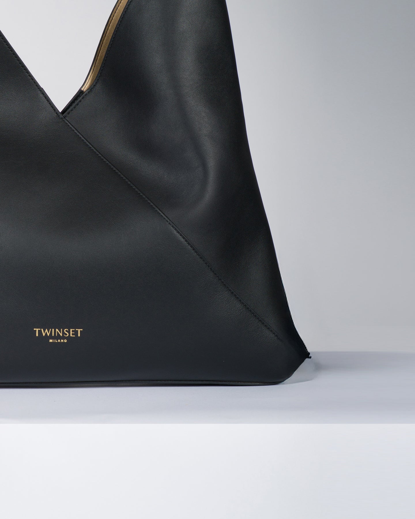 Twinset grande borsa a mano con chiusura. Realizzato in pelle naturale.- Chiusura magnetica.- Tasca interna slip-on per riporre in modo sicuro i piccoli oggetti.- Compatibile con formato A4.- Con manico regolabile.- La borsa tessile allegata protegge il prodotto dalla polvere.- Profondità: 8 cm.- Altezza: 42,5/26 cm.- Larghezza alla base: 39,5 cm.