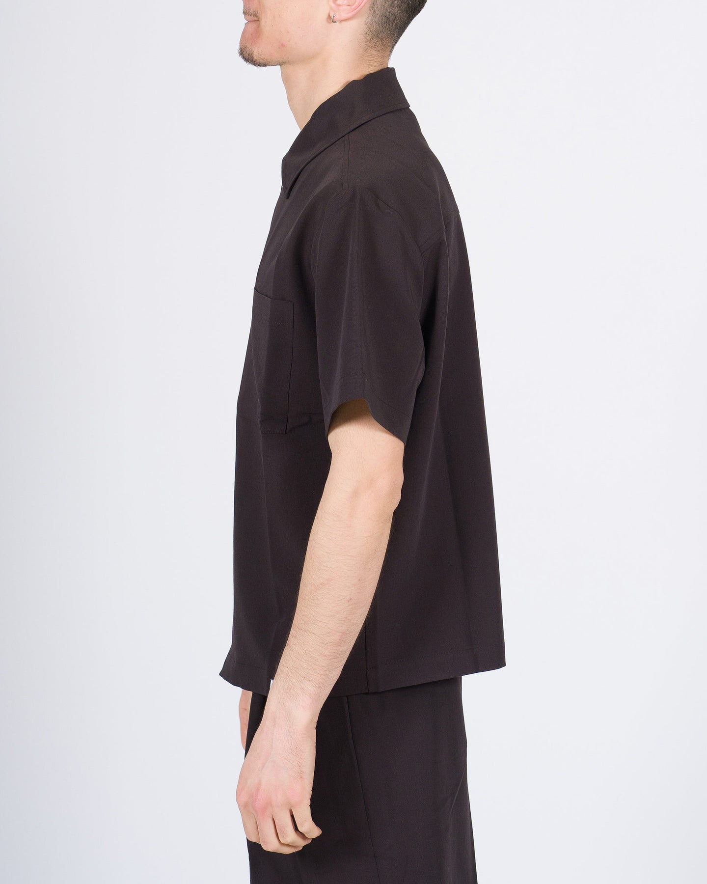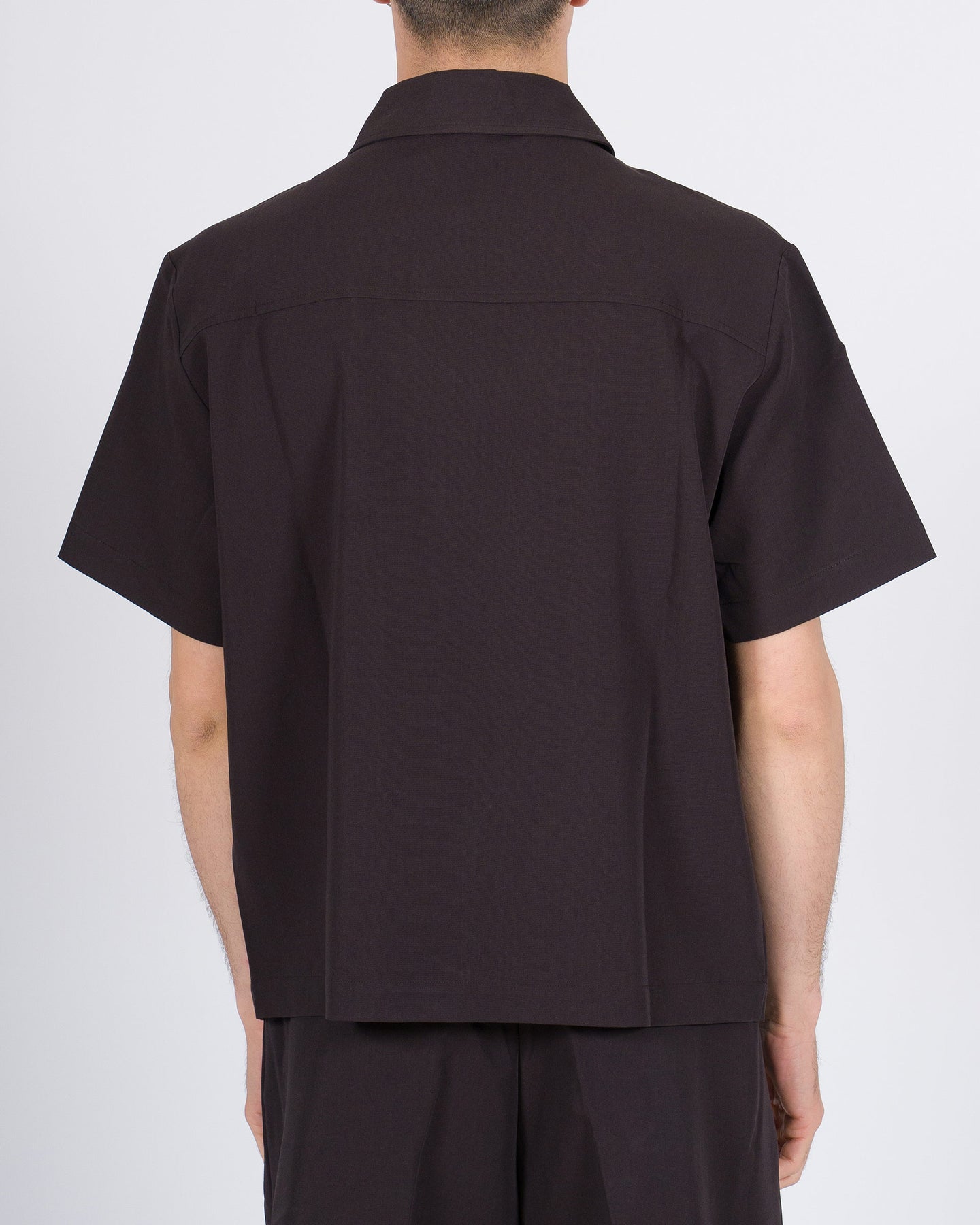 Polo uomo WOC mezza manica in fibra naturale colore moro, con zip e volumi ampi per un comfort moderno. Design pulito e sofisticato, perfetta da coordinare ai pantaloni lunghi o corti dello stesso tessuto per un look menswear contemporaneo e versatile.