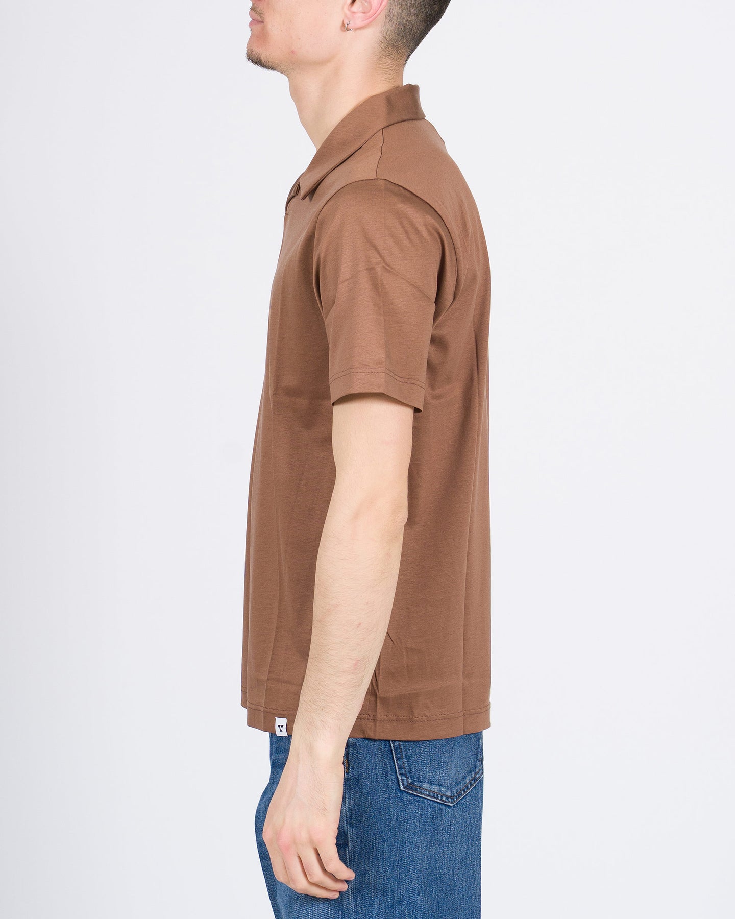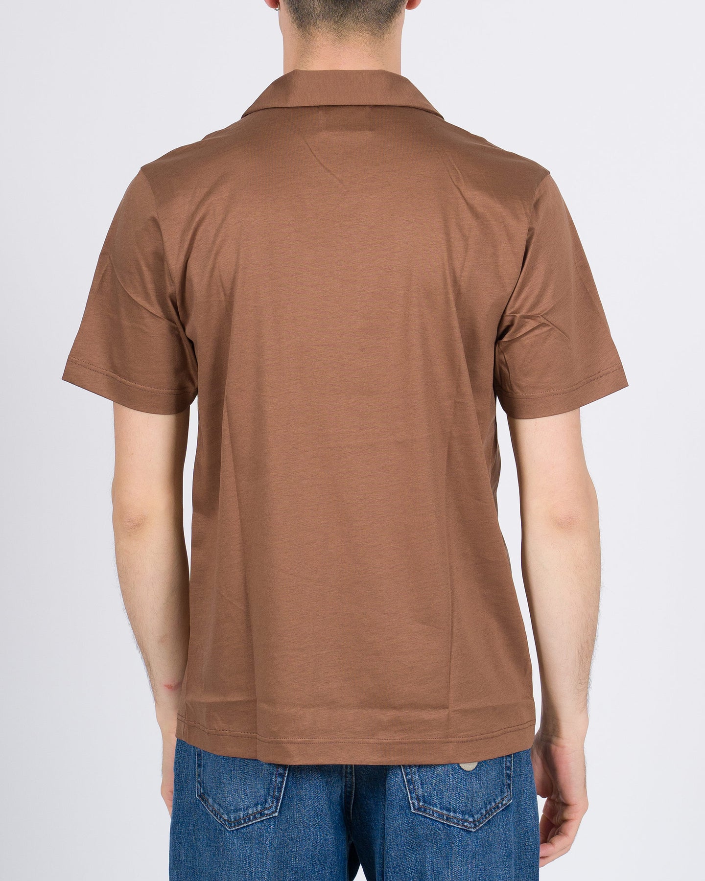 Polo skipper uomo WOC in cotone premium colore tabacco, caratterizzata da linee pulite e sofisticate. Tessuto morbido, traspirante e resistente, con vestibilità impeccabile e design essenziale. Un capo menswear elegante e versatile, ideale per look casual raffinati e contemporanei.