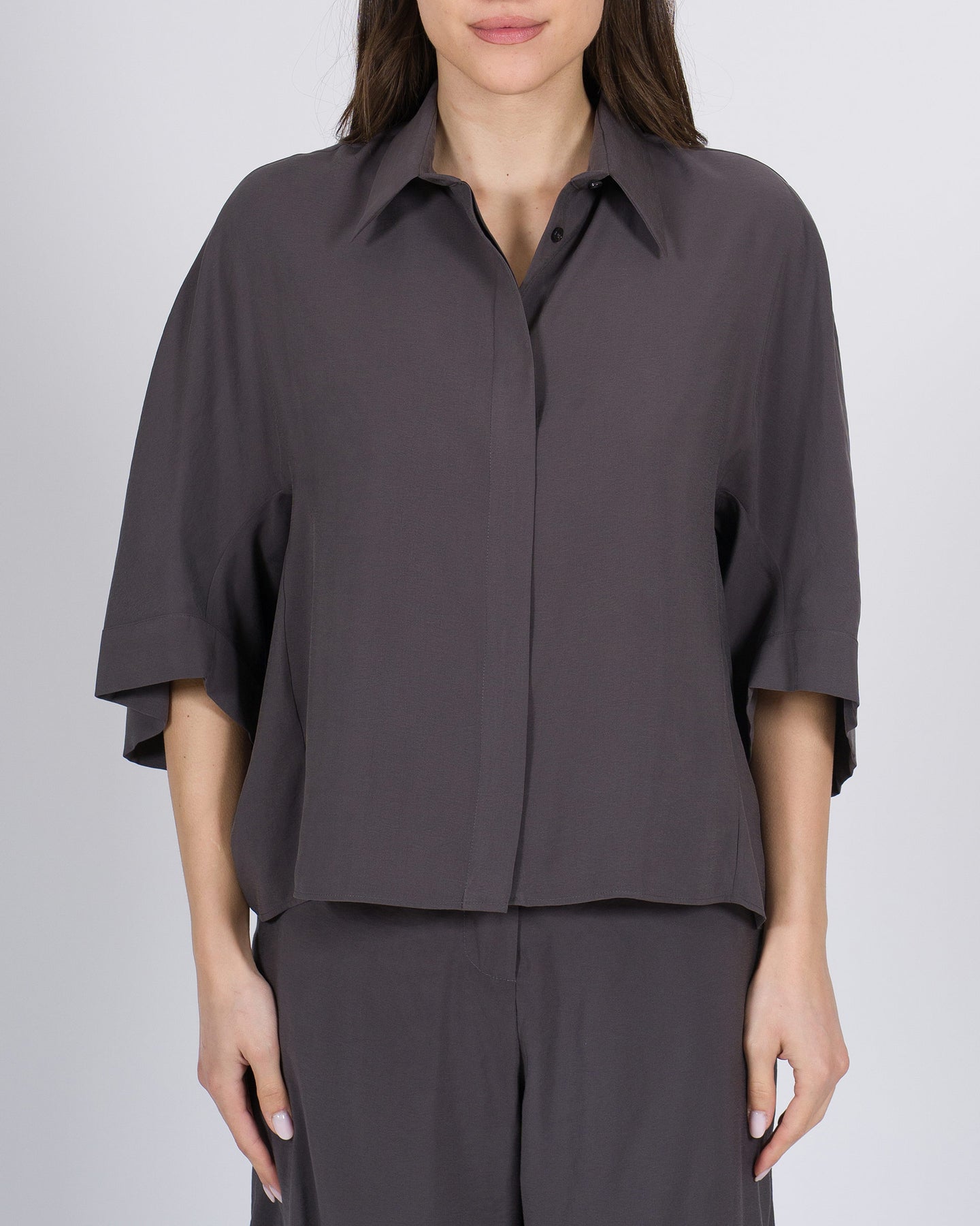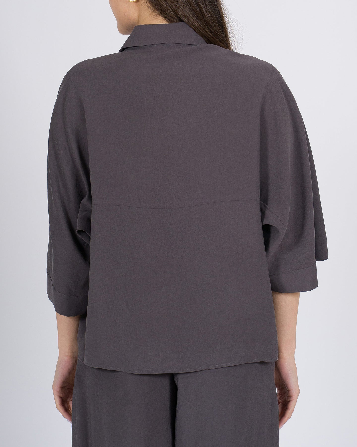 Volume morbido, eleganza rilassata, stile contemporaneo.La blusa ALYSI prugna con vestibilità over unisce linee ampie a dettagli raffinati, per un look minimal e sofisticato, perfetto da abbinare a pantaloni larghi o bermuda.Un capo versatile che coniuga comfort e carattere.