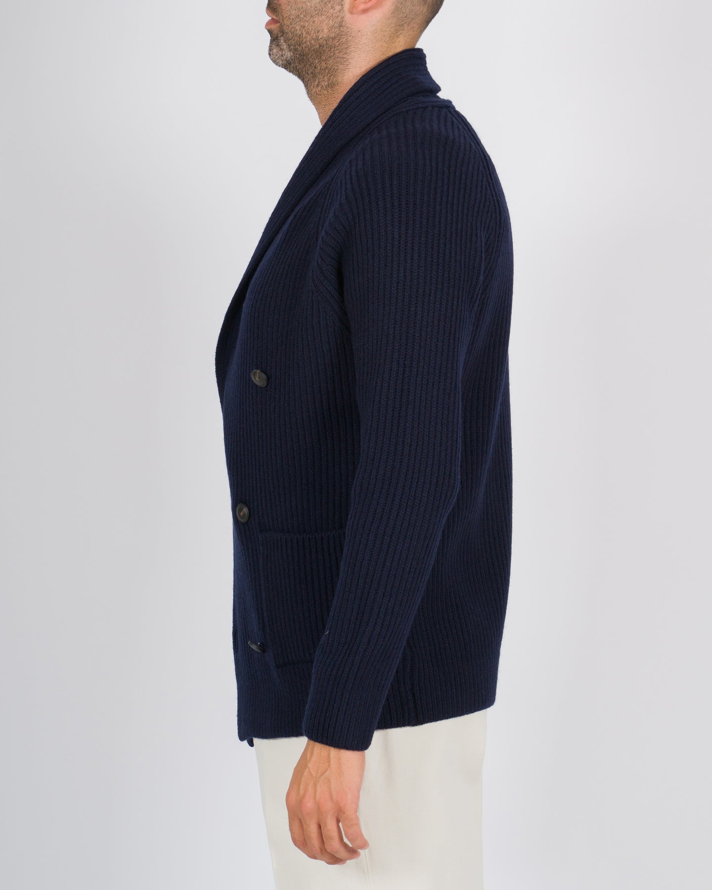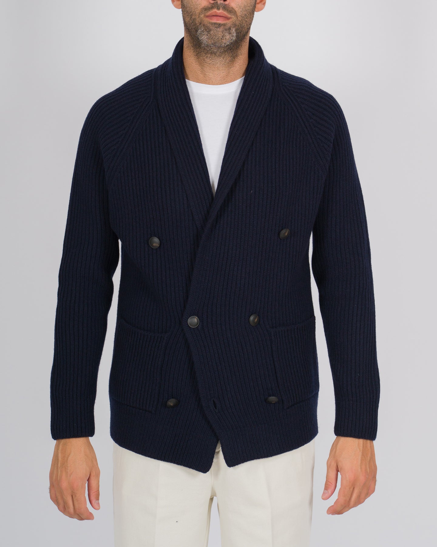 Un capo che unisce l'eleganza sartoriale alla morbidezza della maglieria: la giacca doppiopetto di La Fileria è realizzata in pura lana vergine, valorizzata da una lavorazione a coste che ne accentua il carattere raffinato e contemporaneo.Il design con collo a scialle sottolinea l'ispirazione classica, mentre la costruzione doppiopetto conferisce struttura e presenza, pur mantenendo la leggerezza e il comfort tipici della maglia. Le linee essenziali la rendono versatile: perfetta come alternativa al blazer nelle occasioni più formali, o indossata con denim e camicia per un'eleganza rilassata ma curata.Un esempio autentico di artigianalità Made in Italy, che fonde tradizione e modernità in un capo destinato a diventare un pilastro del guardaroba maschile.