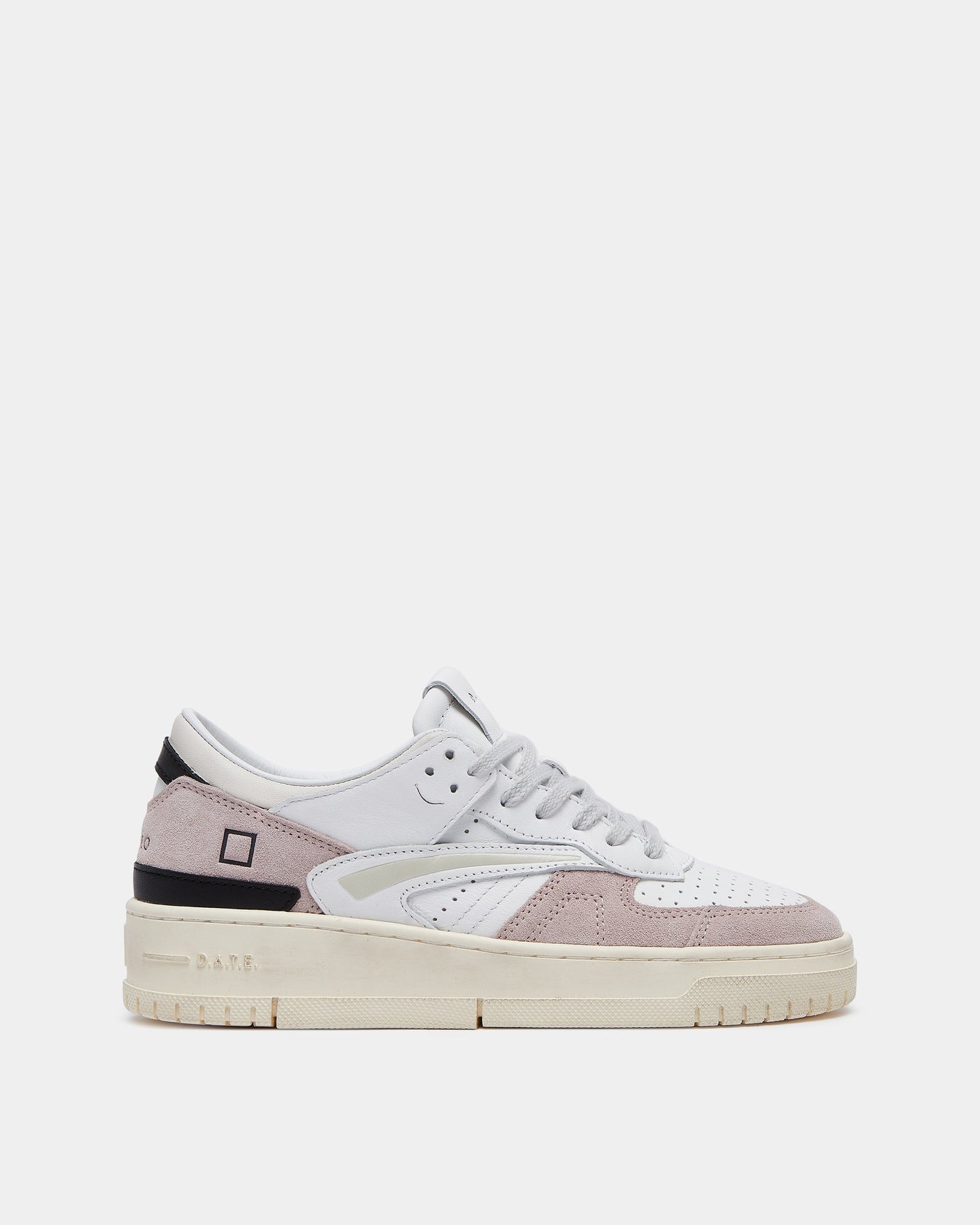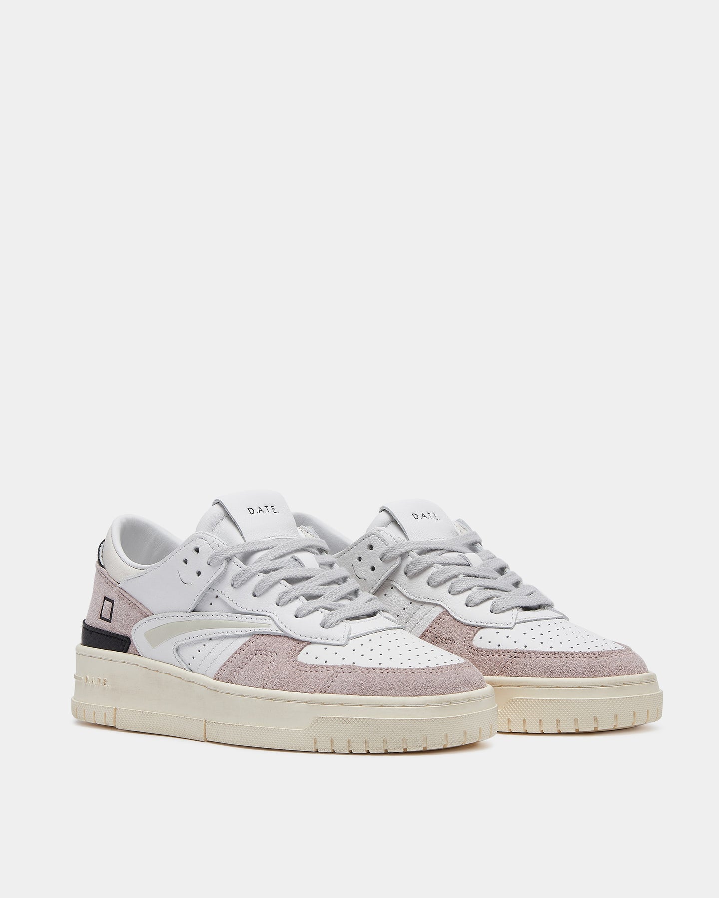 Sneakers bassa in pelle colore bianco con inserti in suede colore rosa.-La punta è traforata per una maggiore traspirazione.-Sulla linguetta è impressa la scritta D.A.T.E.-I lacci sono in cotone e il logo quadrato è impresso lateralmente.-Dettaglio laterale in pelle colore bianco.-Dettaglio posteriore in suede colore rosa e nome del modello impresso.-Fodera in pelle e spugna di cotone.-La soletta interna è rialzato di 2.5 cm per un migliore comfort.-La suola in gomma, alta 2.5 - 3.5 cm, è cucita.-Tutti i materiali selezionati sono Made in Italy.-Vestibilità: REGULAR