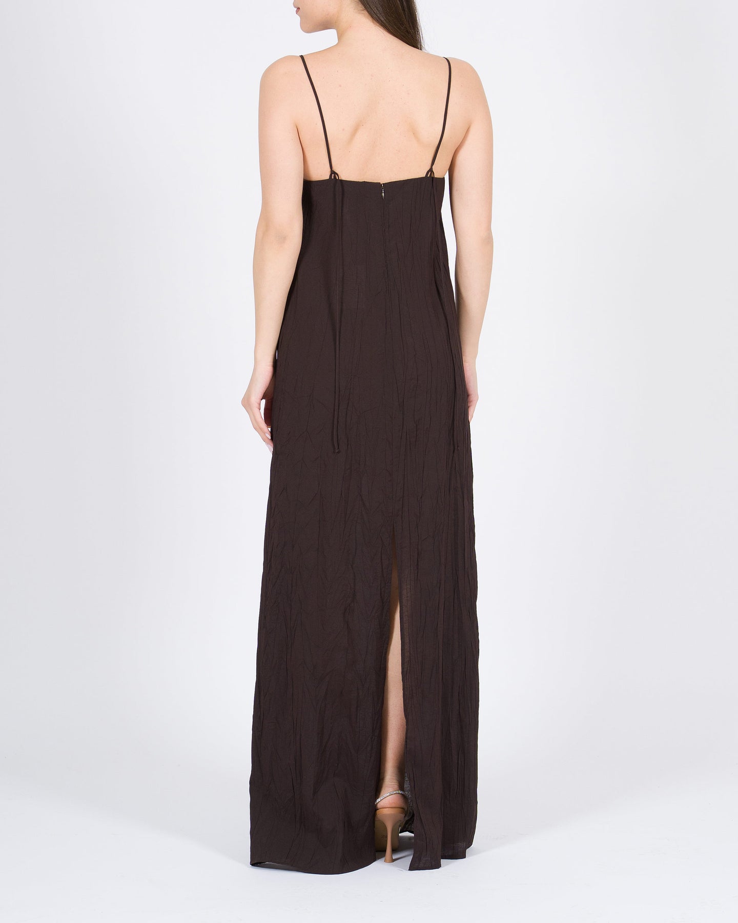 Linee fluide, drappeggio raffinato, eleganza contemporanea.L'abito ALYSI in viscosa color cioccolato avvolge la silhouette con morbidezza, combinando un drappeggio elegante a dettagli essenziali per un look minimal e sofisticato.Un capo distintivo, perfetto per occasioni eleganti o outfit dal carattere ricercato.