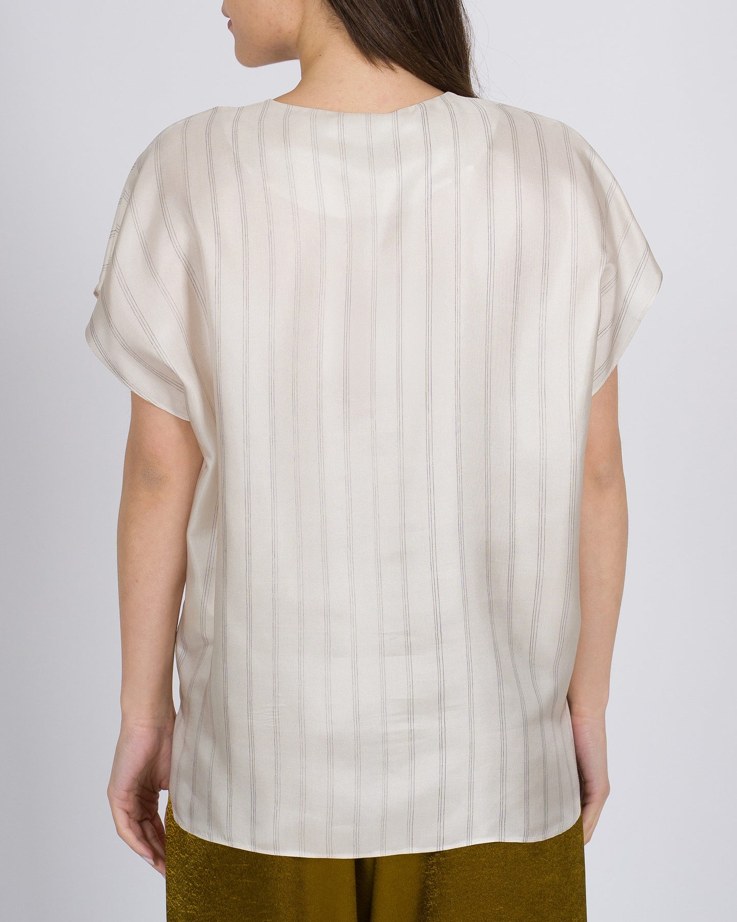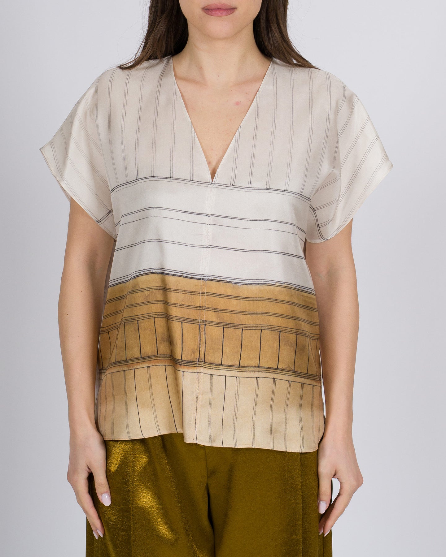 Fluidità elegante, dettagli raffinati, stile contemporaneo.La blusa ALYSI in seta fantasia morbida avvolge la silhouette con leggerezza, combinando un motivo delicato a linee essenziali per un look sofisticato e femminile.Un capo versatile che porta eleganza e carattere ad ogni outfit.