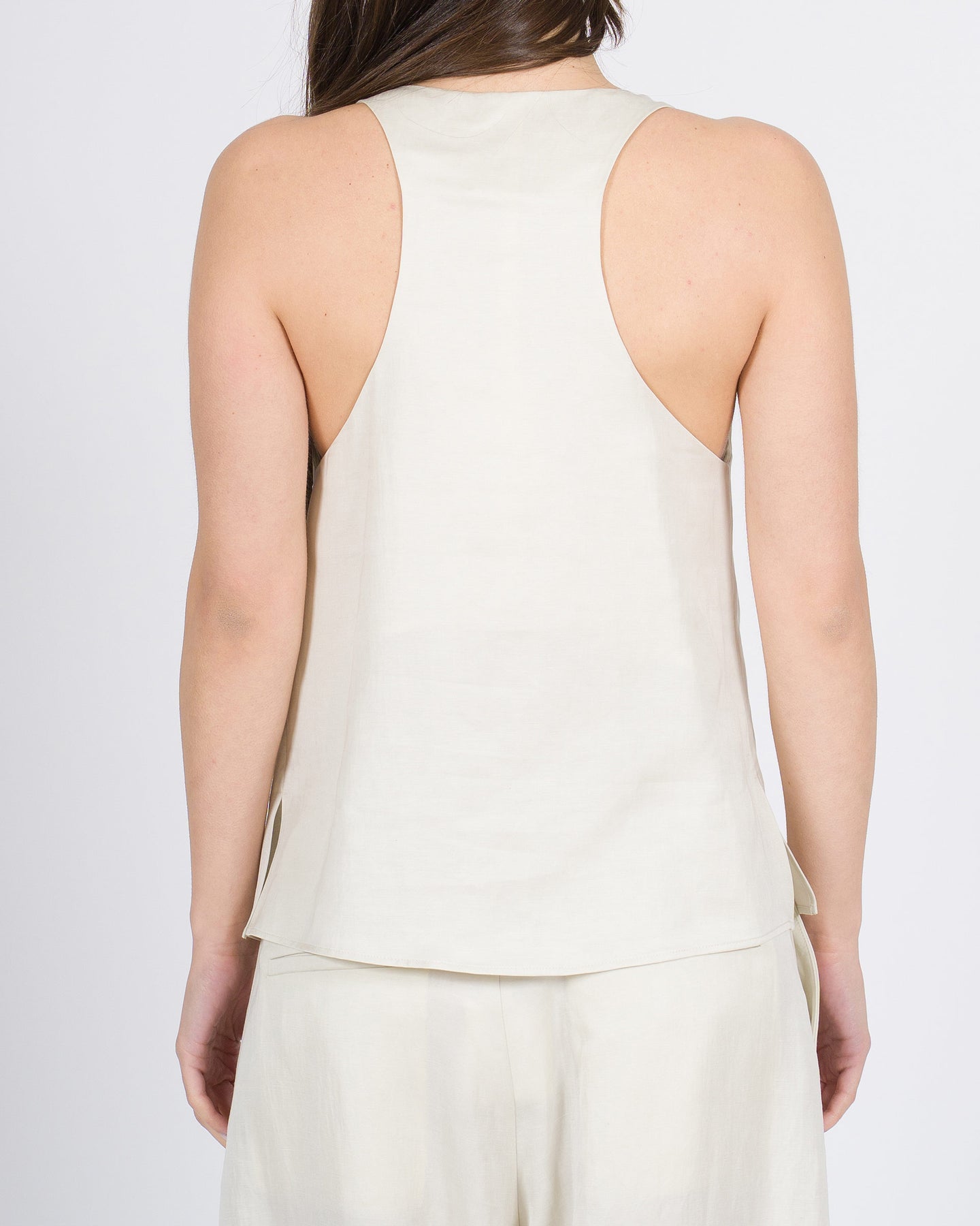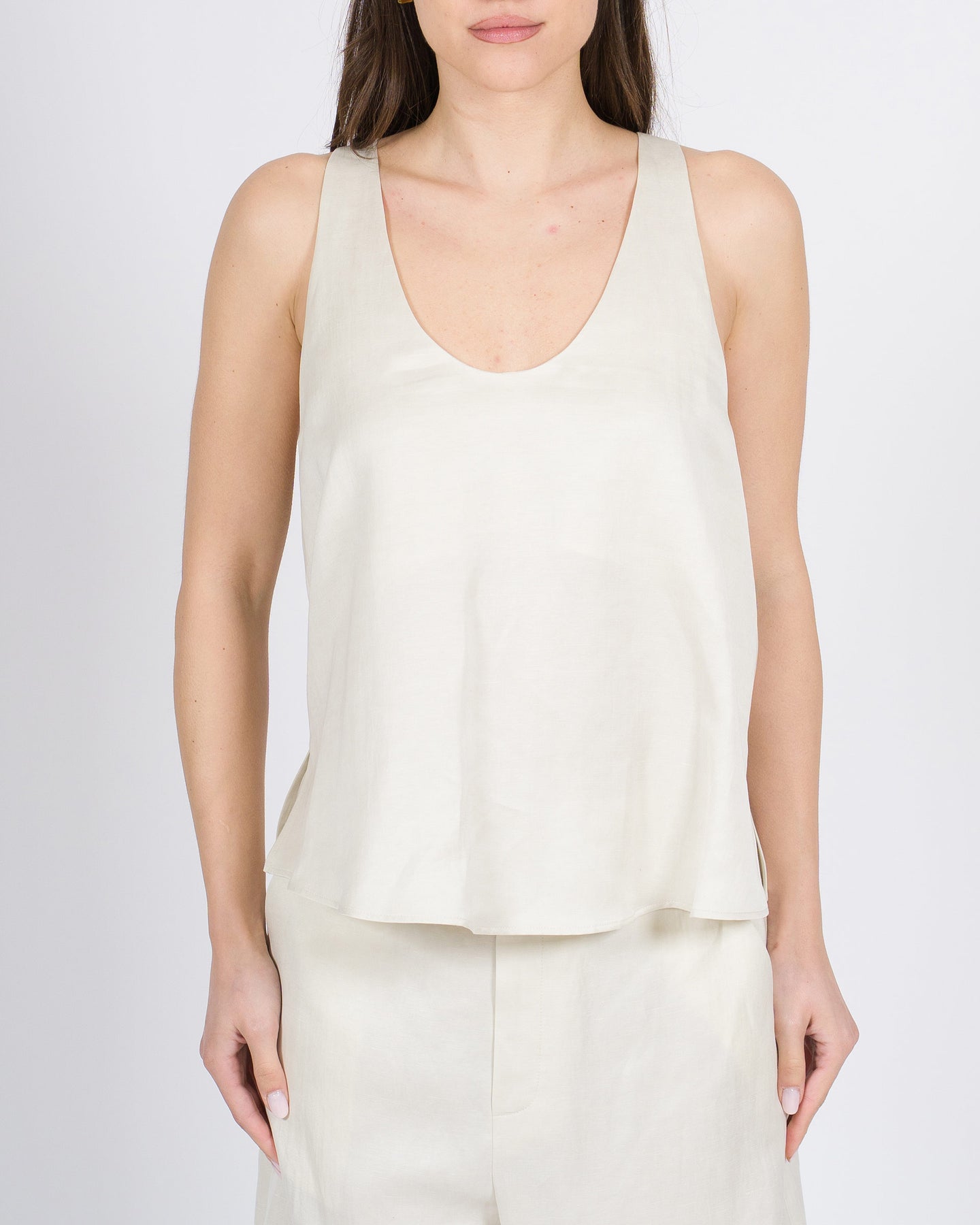 Semplicità elegante, tessuto leggero, stile contemporaneo.La canotta ALYSI in colore panna avvolge delicatamente la silhouette con morbidezza e fluidità, per un look minimal e sofisticato, perfetto da combinare a pantaloni larghi o bermuda.Un capo essenziale che unisce comfort e raffinatezza.