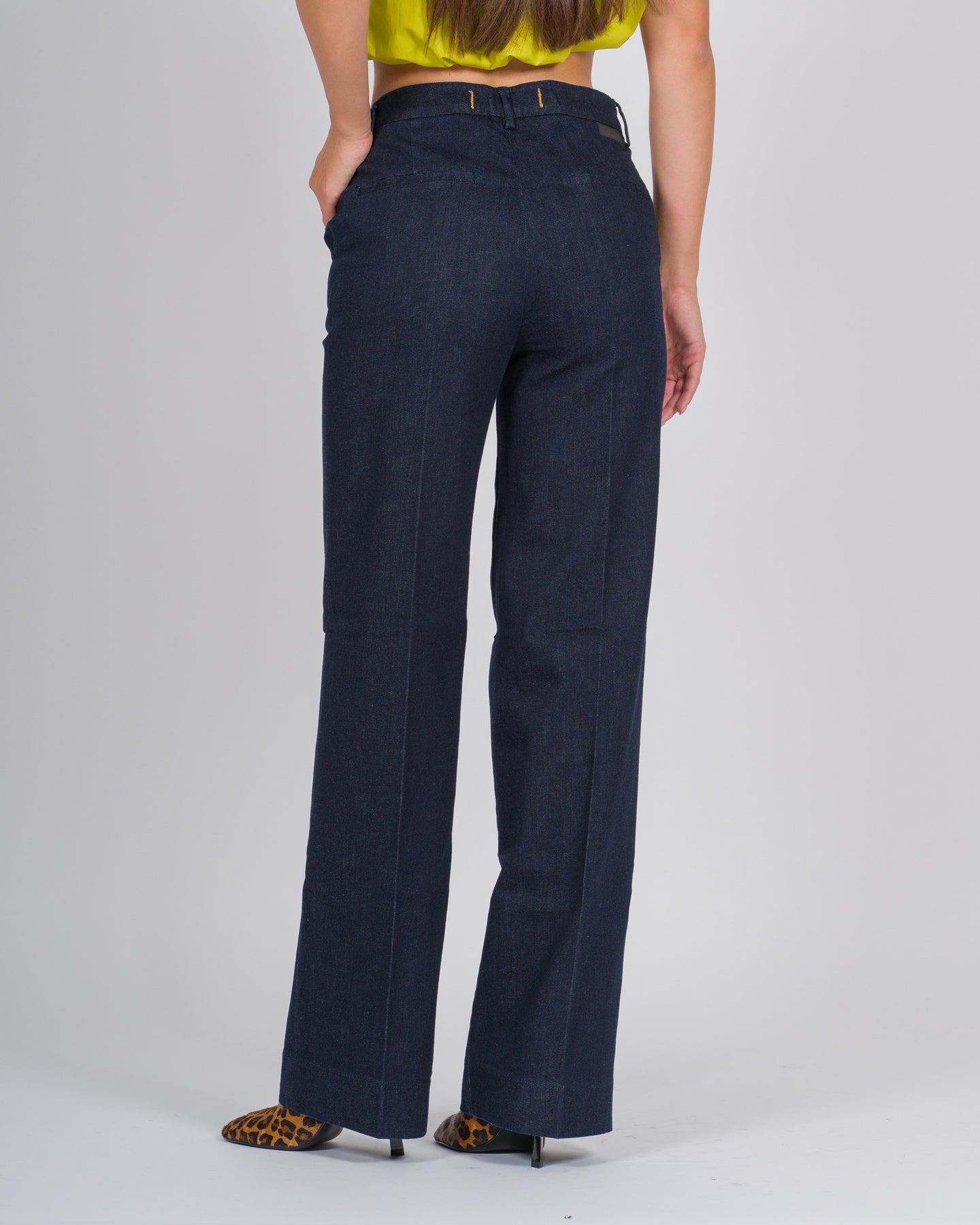 I jeans New York della linea Bonheur reinterpretano lo stile classico con un taglio ampio e moderno. Realizzati in denim di cotone di alta qualità in lavaggio zero blu, presentano una gamba a palazzo, ampia e fluida, ideale per chi cerca comfort senza rinunciare all'eleganza.Le tasche a filo aggiungono un dettaglio minimal e pulito, valorizzando il design sartoriale del capo. Perfetti da abbinare a blazer strutturati, camicie morbide o top minimalisti, questi jeans offrono versatilità e stile contemporaneo, ideali per look casual-chic o smart-casual.