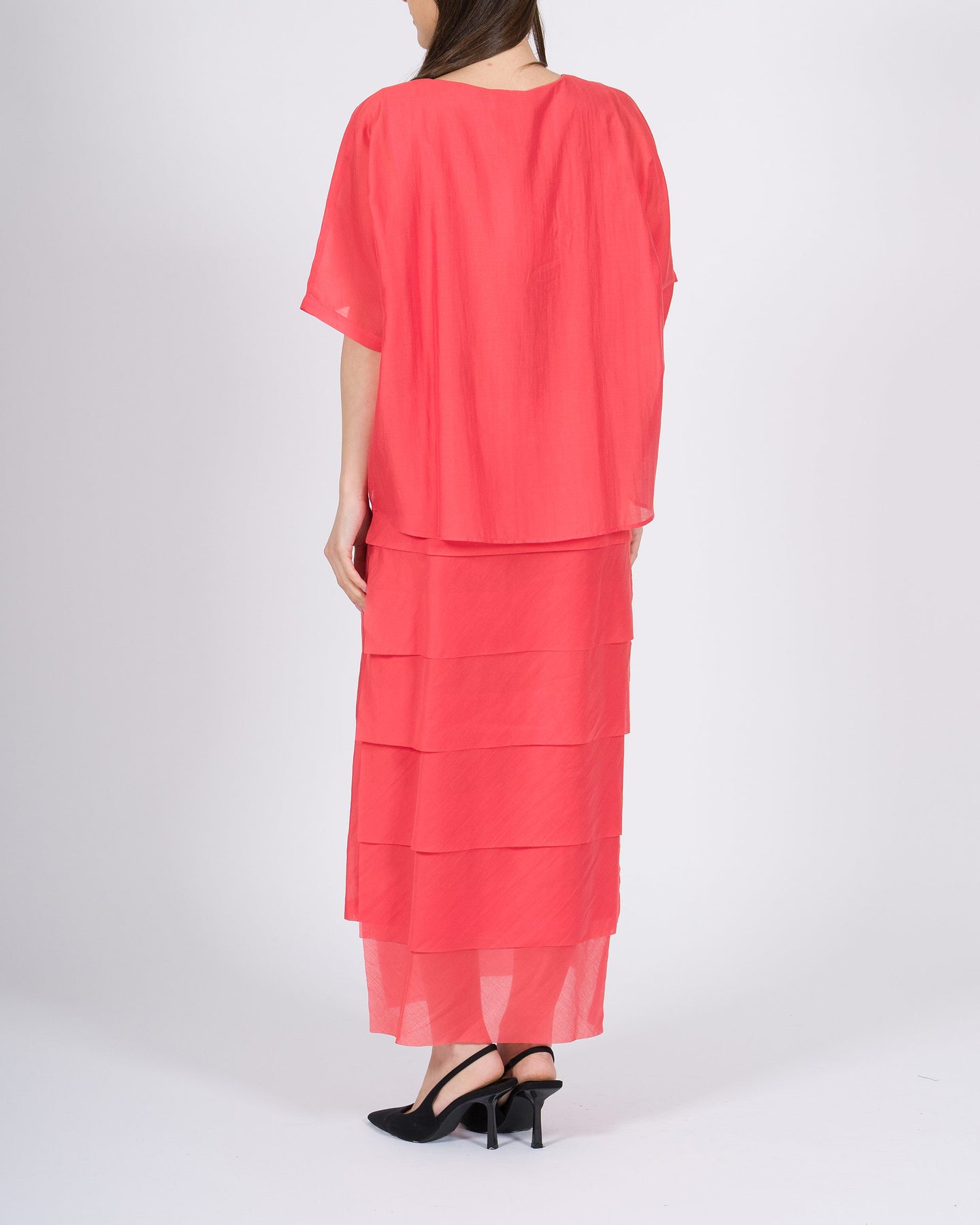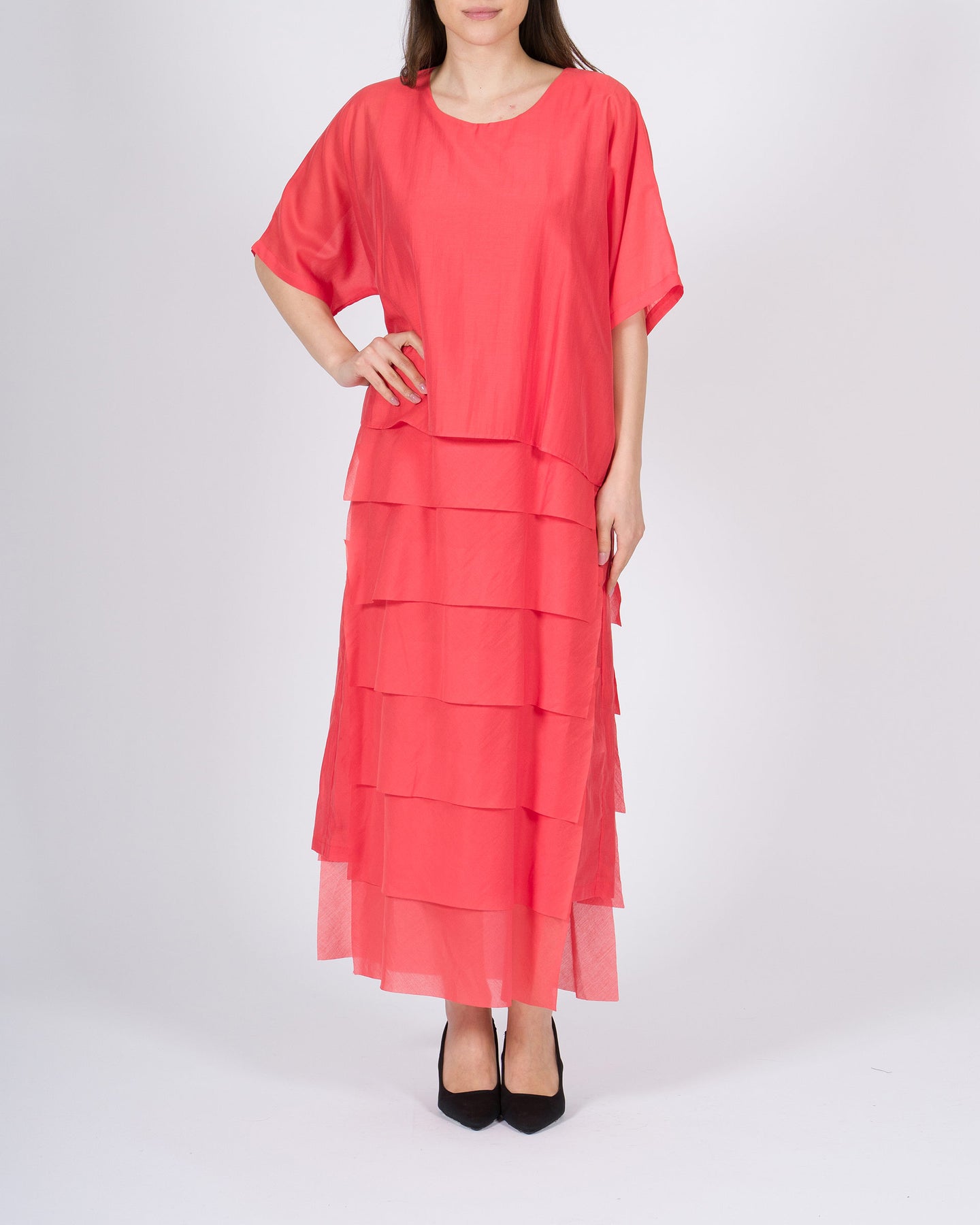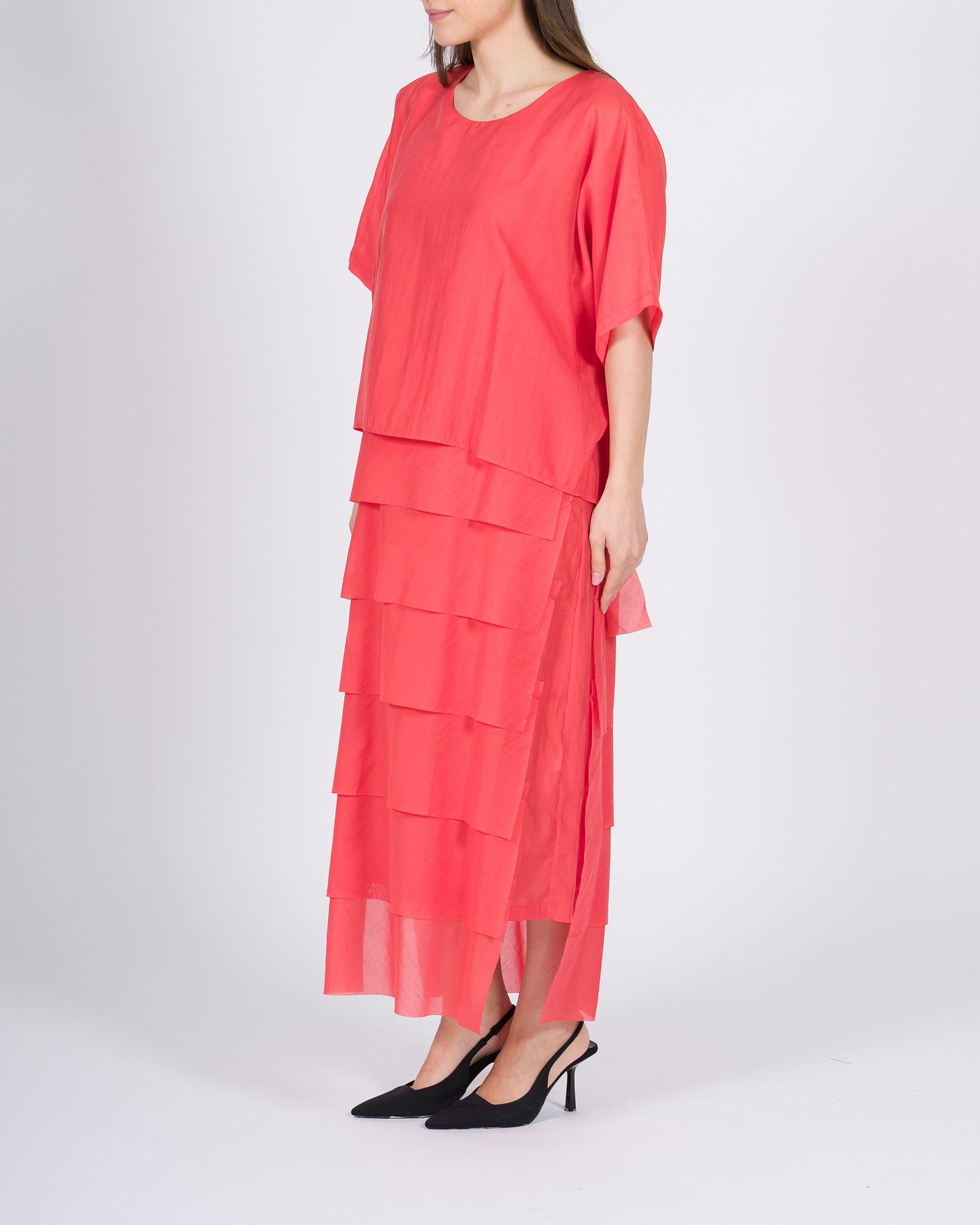 Delicato abito da donna corallo del brand Meimeij, realizzato in mussola di cotone leggero e traspirante, ideale per garantire comfort e freschezza durante la stagione calda. Il modello presenta balze morbide lungo il capo, che aggiungono movimento e un tocco femminile, mantenendo una linea dritta che valorizza la silhouette senza aderire eccessivamente.Perfetto per look estivi, giornate all'aperto o occasioni casual chic, facile da abbinare a sandali, ballerine o accessori minimal per un outfit leggero e raffinato.
