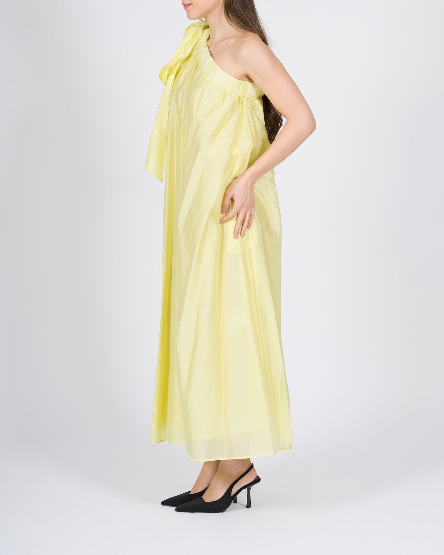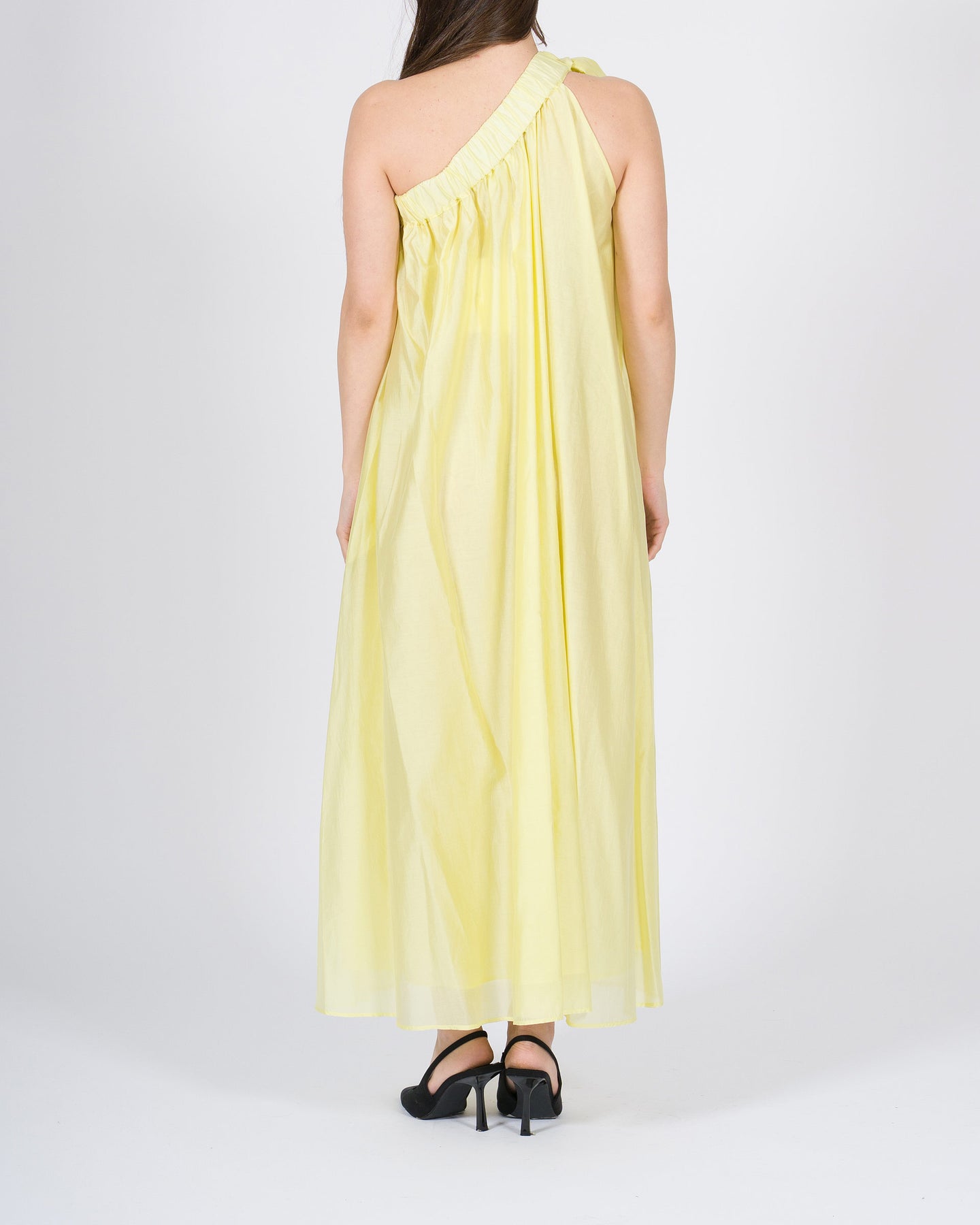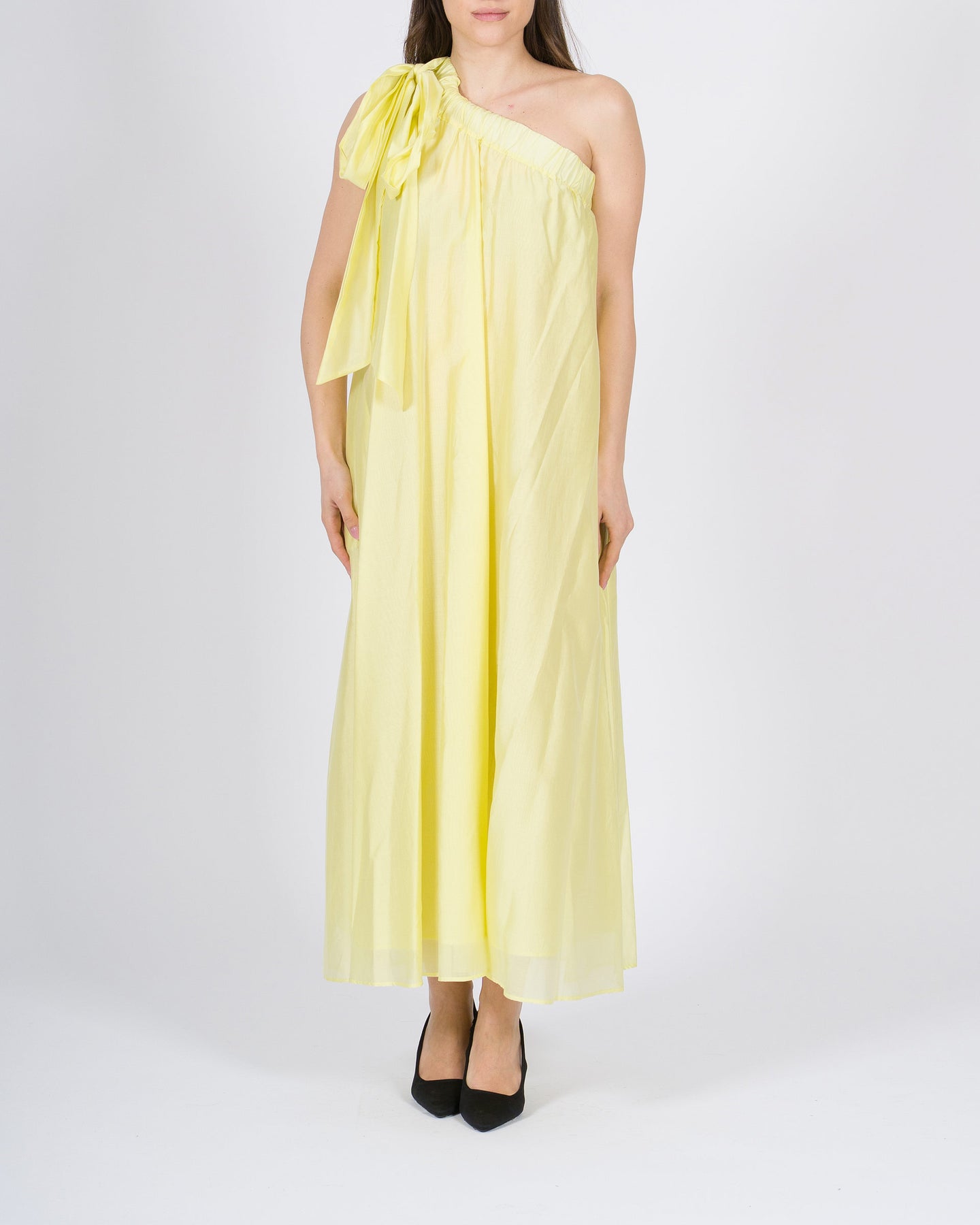 Fresco e raffinato abito da donna lime del brand Meimeij, realizzato in mussola di cotone leggero e traspirante, perfetto per le giornate primaverili ed estive. Il modello monospalla conferisce un look elegante e moderno, mentre il fiocco sulla spalla aggiunge un dettaglio femminile e sofisticato.La linea morbida assicura comfort e libertà di movimento, rendendo l'abito versatile per occasioni casual chic, eventi all'aperto o serate estive. Facile da abbinare a sandali, ballerine o accessori minimal chic per un outfit fresco e di grande stile.