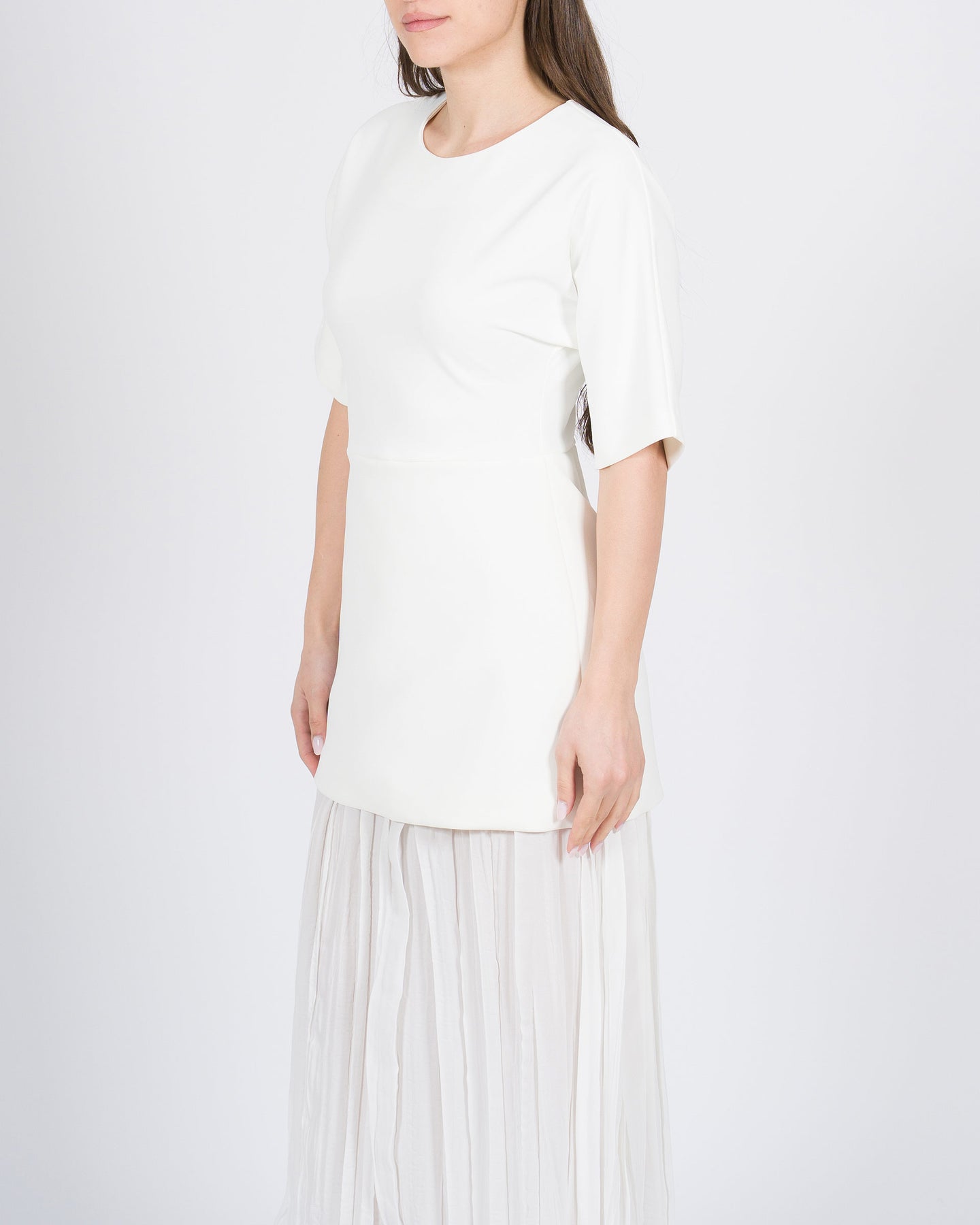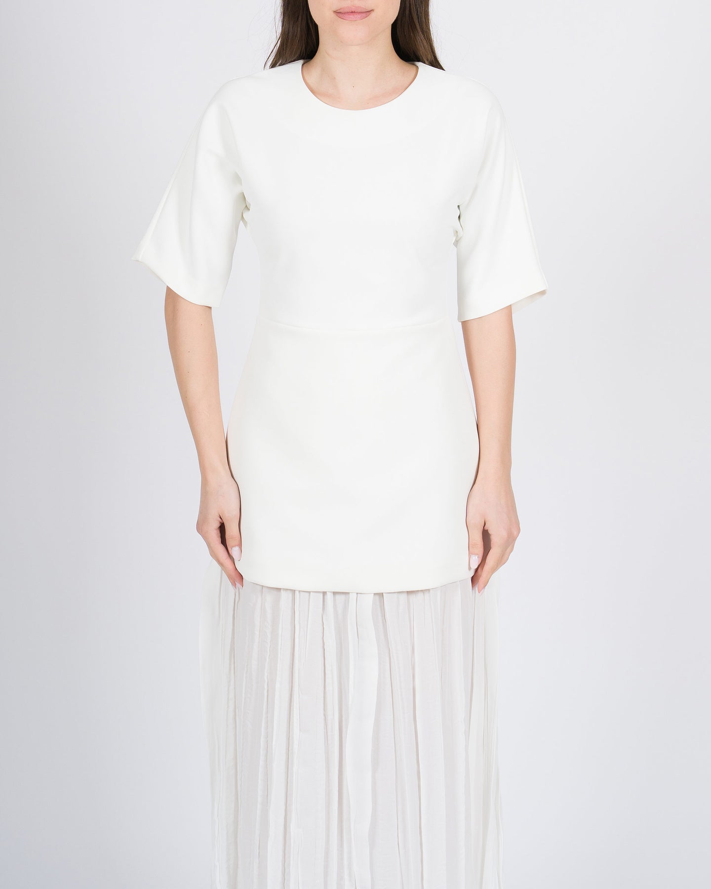 Fluidità elegante, dettagli raffinati, stile contemporaneo.L'abito MEIMEJ con manica raglan e plissé finale avvolge la silhouette con leggerezza, combinando linee morbide a tocchi distintivi per un look minimal e sofisticato.Un capo versatile, perfetto per occasioni eleganti o outfit dal carattere ricercato.