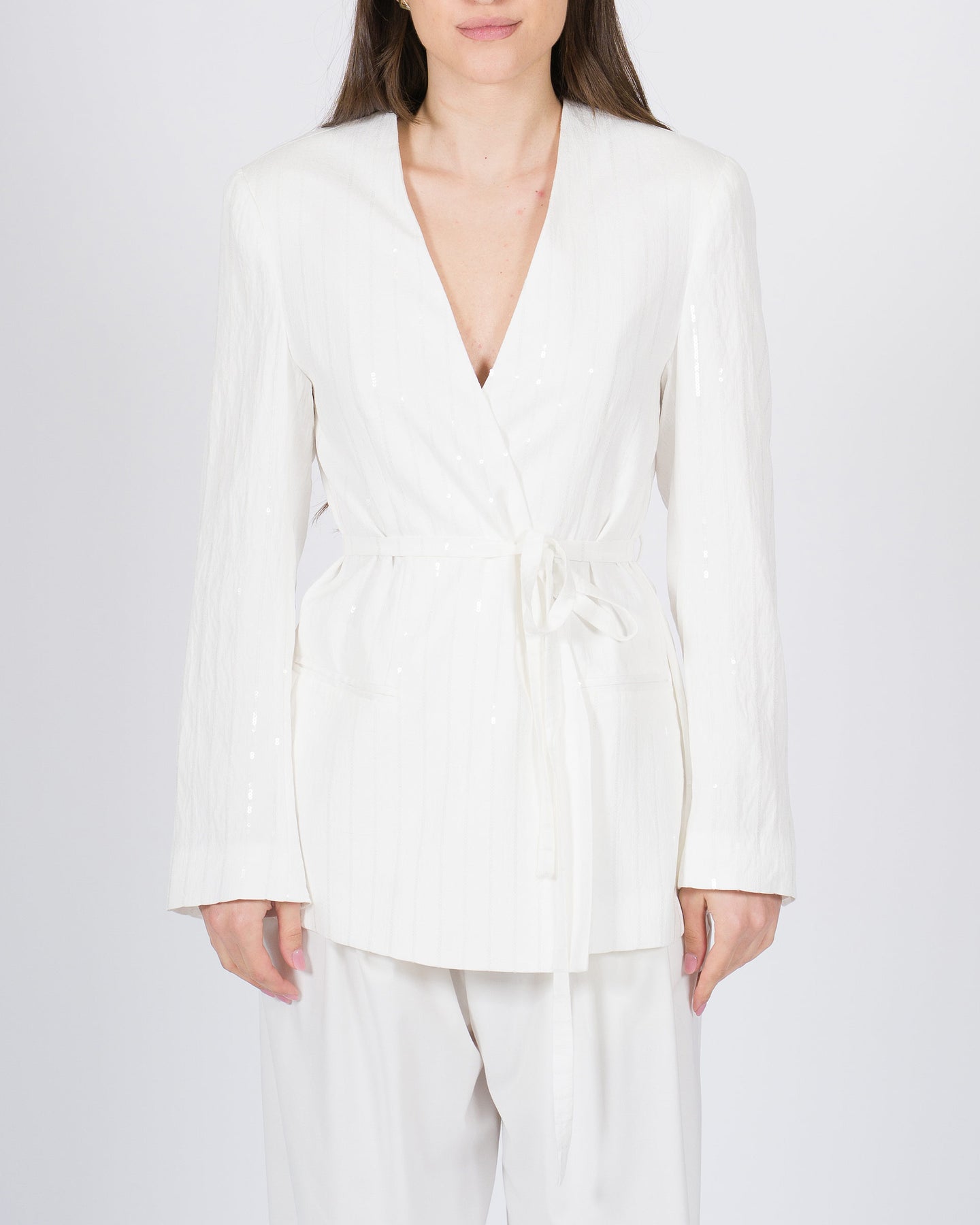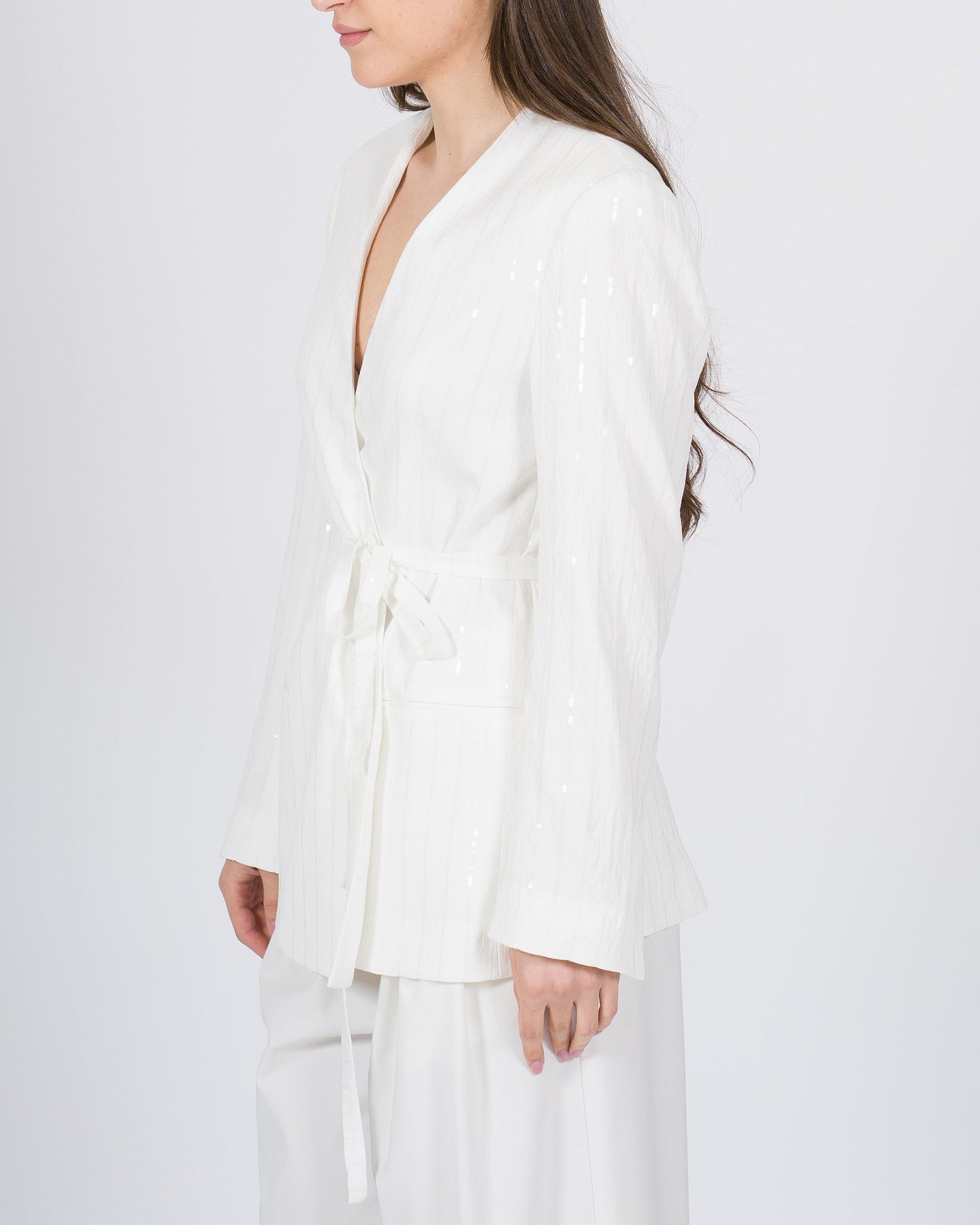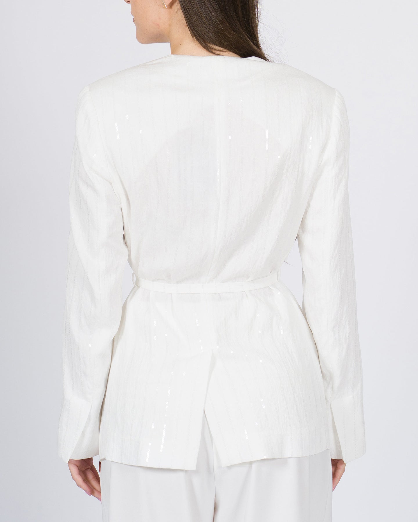 Giacca MEIMEJ Lino con Fusciacca e Micro Paillettes panna