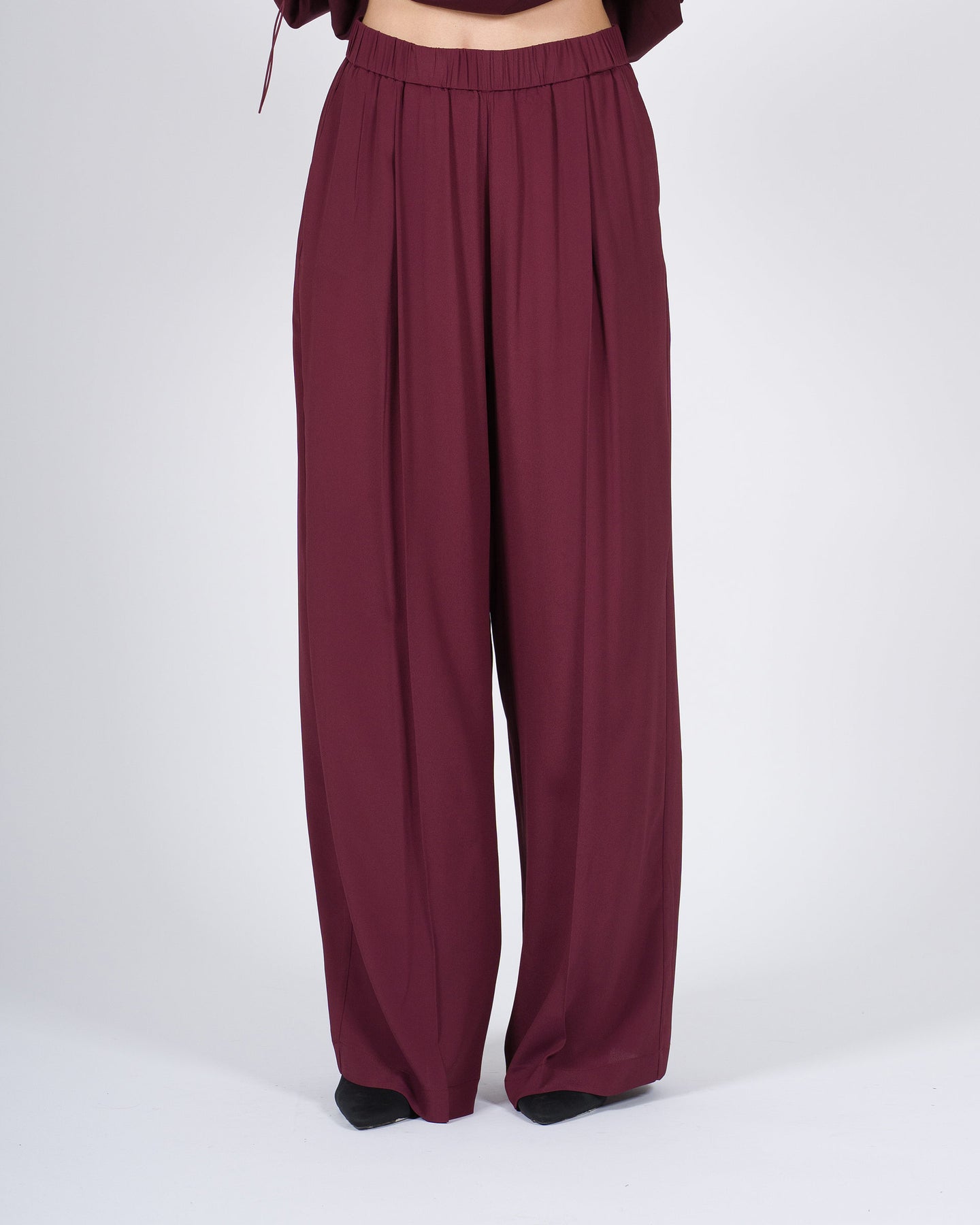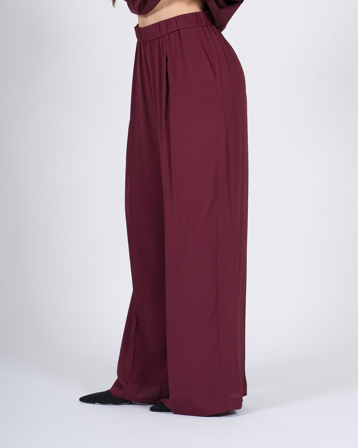 Elegante pantalone da donna bordeaux del brand Meimeij, dal modello palazzo che valorizza la silhouette con una linea ampia e fluida. La vita con elastico garantisce comfort, adattabilità e una vestibilità perfetta per diverse occasioni.Realizzato in tessuto morbido e leggero, il pantalone è ideale per look casual chic, ufficio o serate eleganti, facilmente abbinabile a bluse, top o camicie. La combinazione di stile e comodità lo rende un capo versatile e raffinato.
