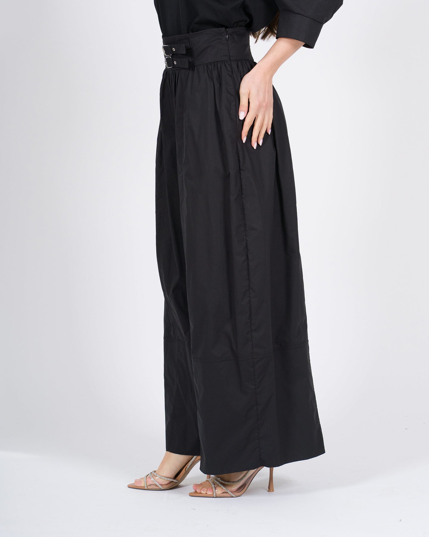 Pantaloni MEIMEJ Balloon Cotone con Cinghie in Vita nero