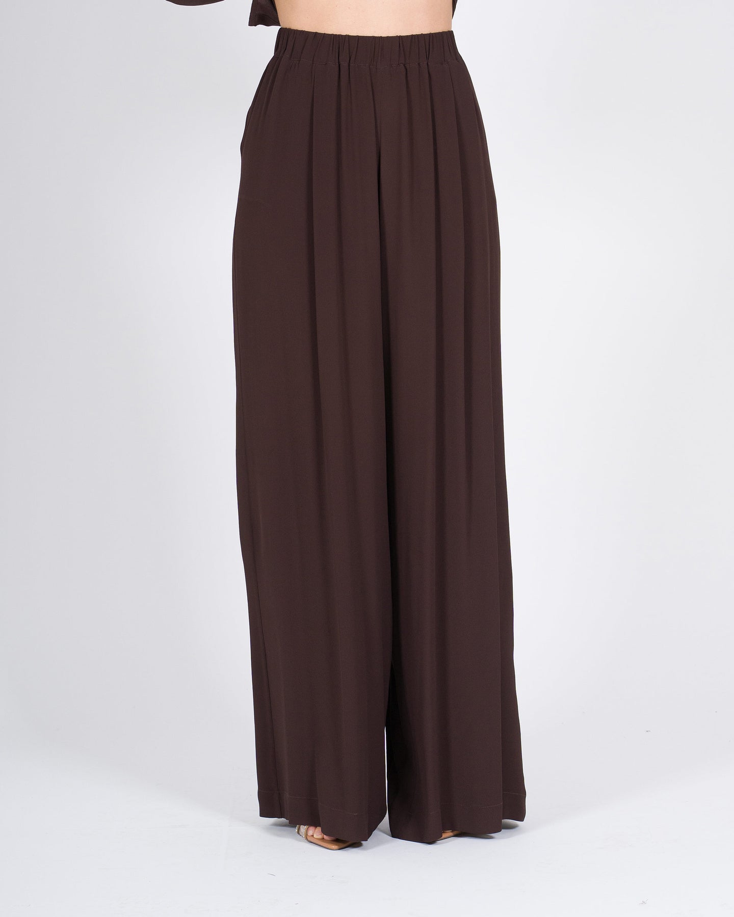Fluidità elegante, volumi morbidi, stile contemporaneo.I pantaloni palazzo MEIMEJ in seta con elastico in vita avvolgono la silhouette con leggerezza, combinando comfort e linee raffinate per un look minimal e sofisticato.Un capo versatile, perfetto da abbinare a camicie, top o giacche leggere per outfit eleganti e ricercati.