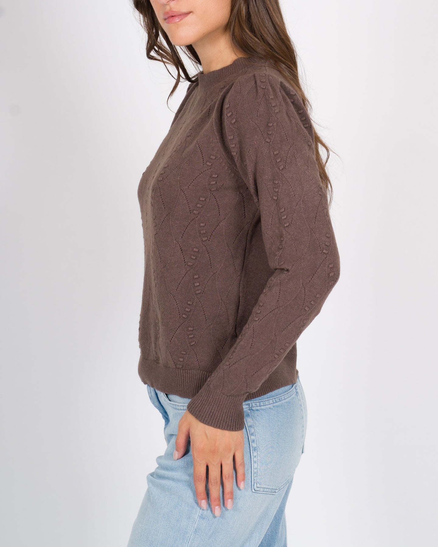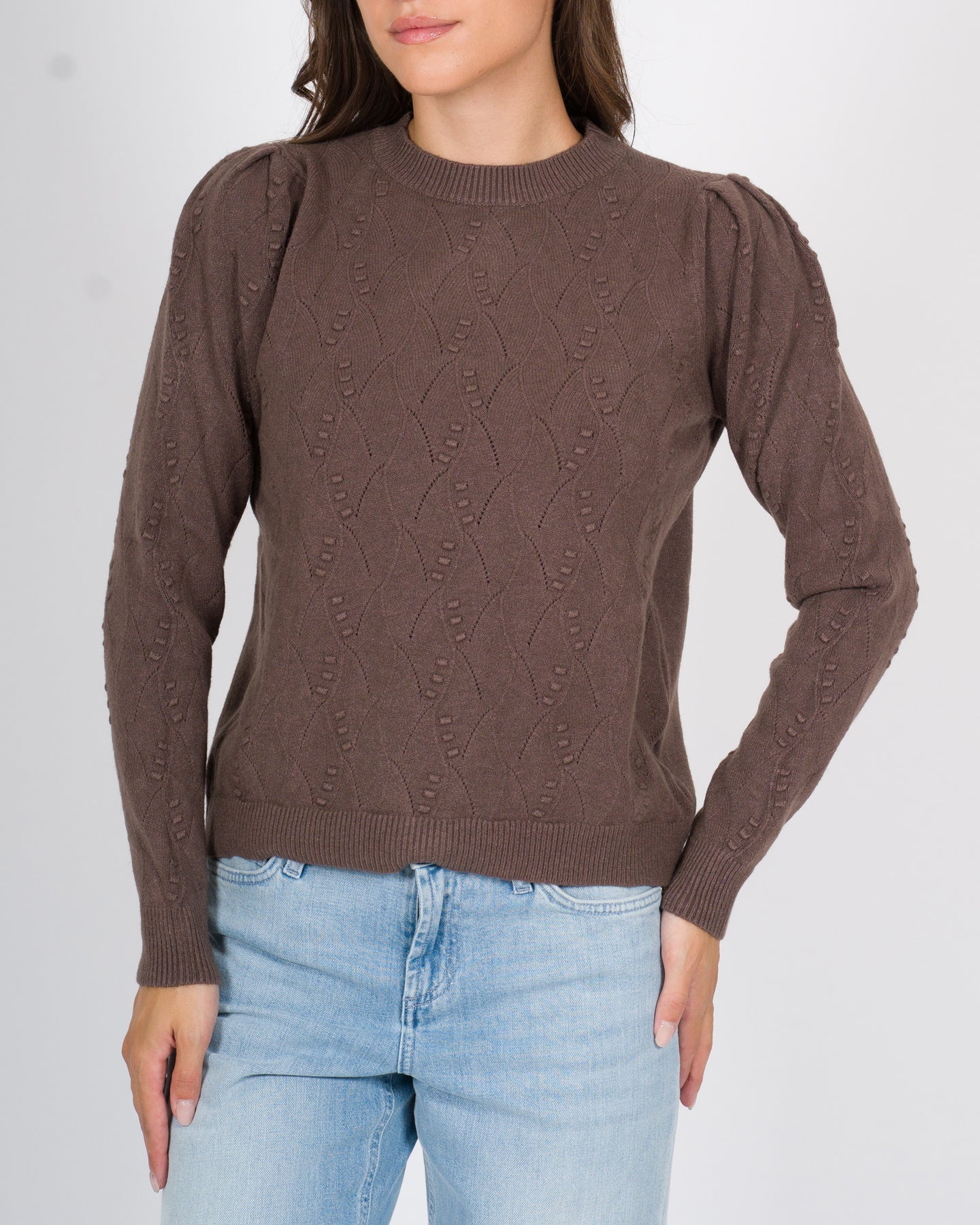 Maglia manica lunga realizzata in morbido tessuto di viscosa, arricchita da una delicata lavorazione a rombi tono su tono, che dona un elegante effetto tridimensionale al capo. Il giro manica a sbuffo aggiunge un tocco femminile e sofisticato, rendendo la maglia ideale sia pe outfit quotidiani che più ricercati.Dettagli tecnici:Tessuto: viscosaLavorazione a rombiManica a sbuffoColore: cacaola modella indossa la taglia S/M ed è alta 1.70.
