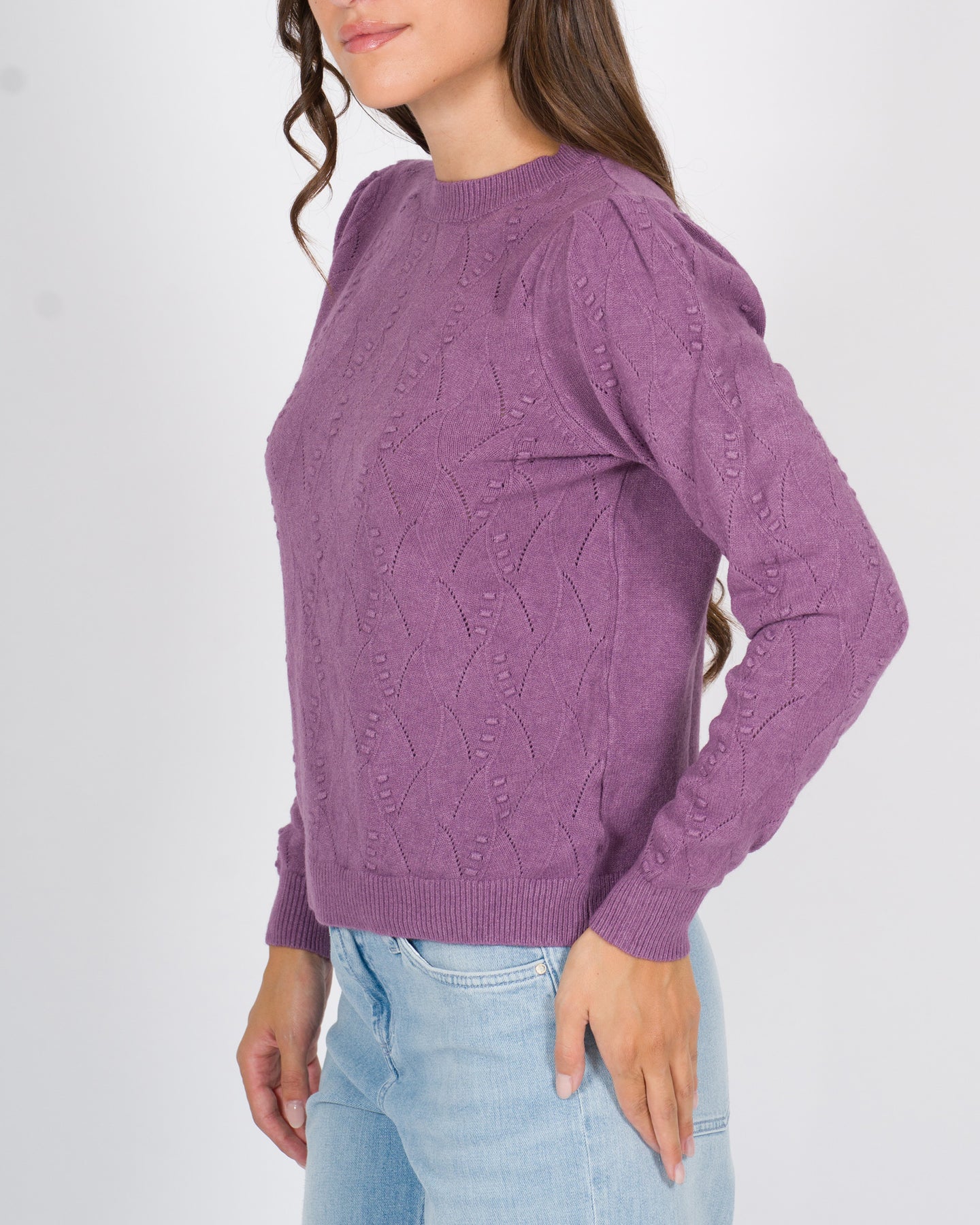 Maglia manica lunga realizzata in morbido tessuto di viscosa, arricchita da una delicata lavorazione a rombi tono su tono, che dona un elegante effetto tridimensionale al capo. Il giro manica a sbuffo aggiunge un tocco femminile e sofisticato, rendendo la maglia ideale sia pe outfit quotidiani che più ricercati.Dettagli tecnici:Tessuto: viscosaLavorazione a rombiManica a sbuffoColore: melanzanala modella indossa la taglia S/M ed è alta 1.70.