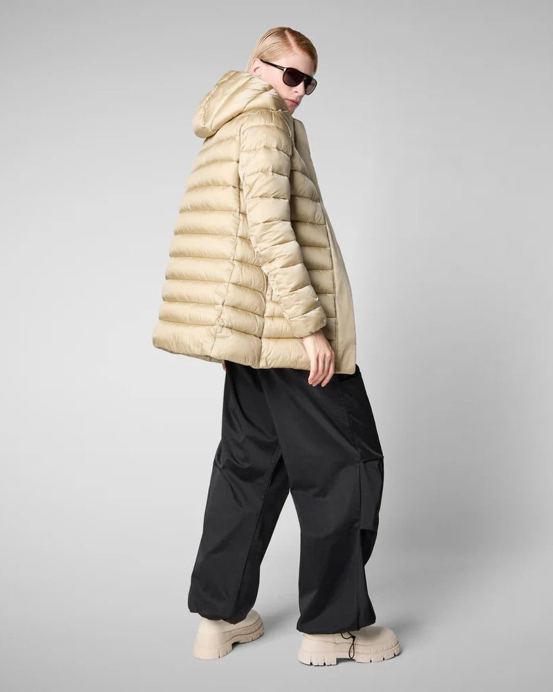Versatile puffer jacket dalla linea lunga e morbida, con un comodo cappuccio. Chiusa da zip brillante e patta con bottoni, si presenta con il tiretto personalizzato e piccolo logo rotondo tono su tono sulla manica.100% nylon ad altissima densità (20dX20d) è estremamente leggero e morbido con aspetto fashion e lucente. Sottile ma allo stesso tempo resistente, garantisce protezione dall'acqua e dall'aria, assorbe l'umidità e asciuga rapidamente.