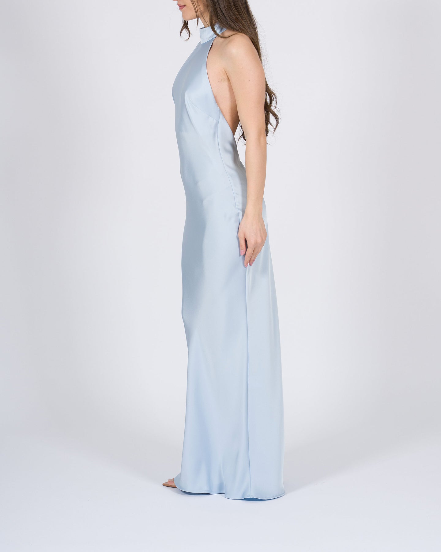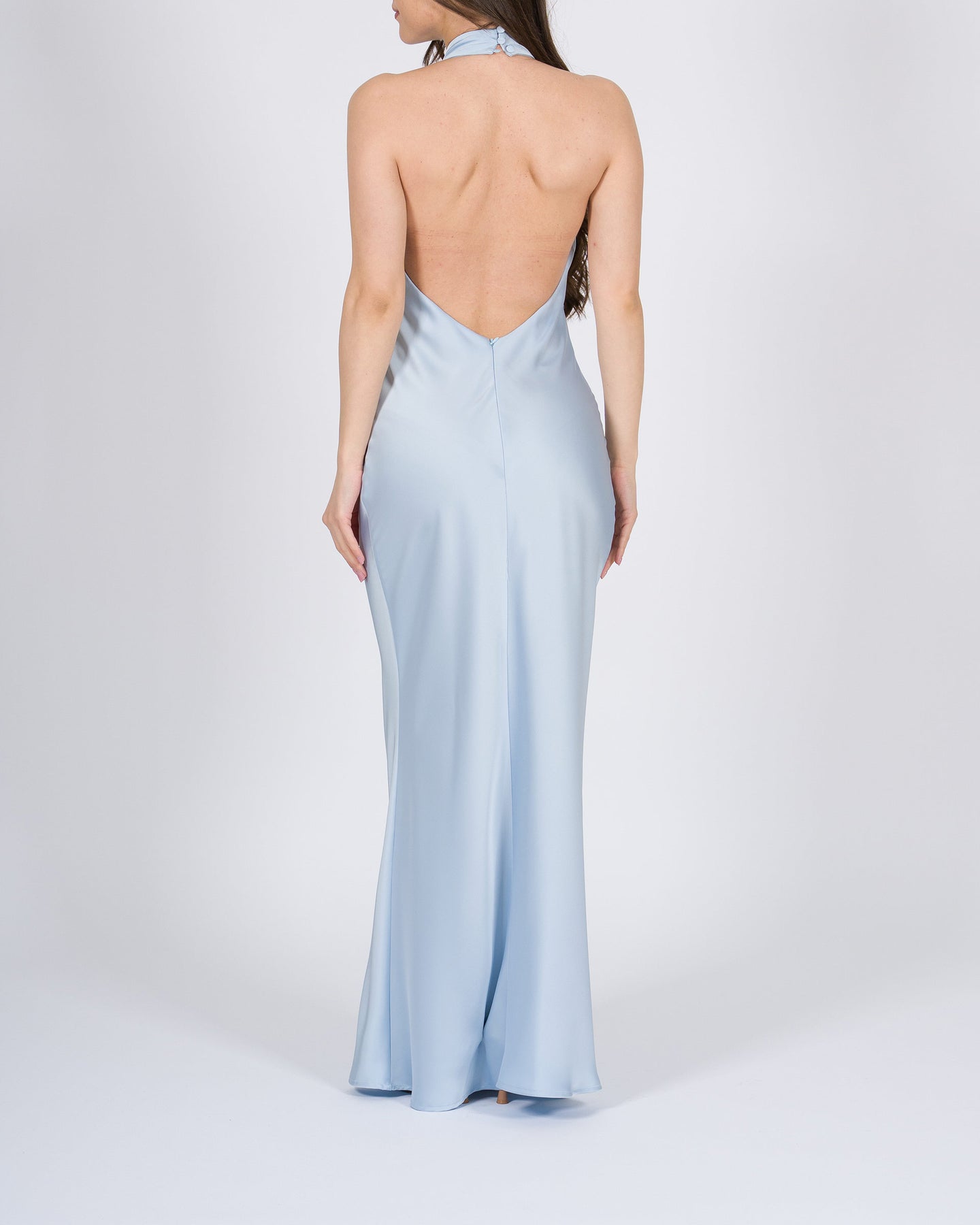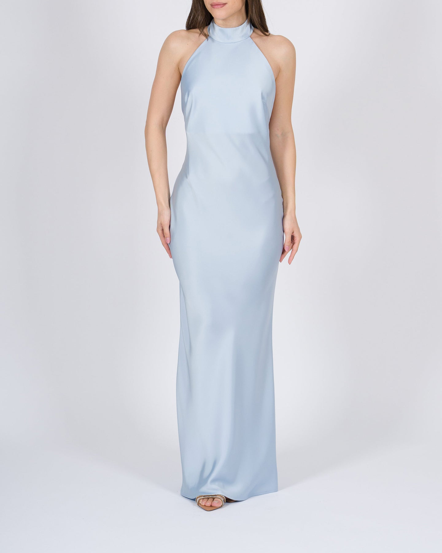 Elegante e femminile, questo abito Silence in raso azzurro unisce raffinatezza e comfort. Il collo all'americana dona un tocco sofisticato, mentre lo scollo sul retro aggiunge un dettaglio delicato e moderno. La linea fluida valorizza la silhouette, rendendolo perfetto per occasioni speciali, eventi serali o look chic primaverili ed estivi.