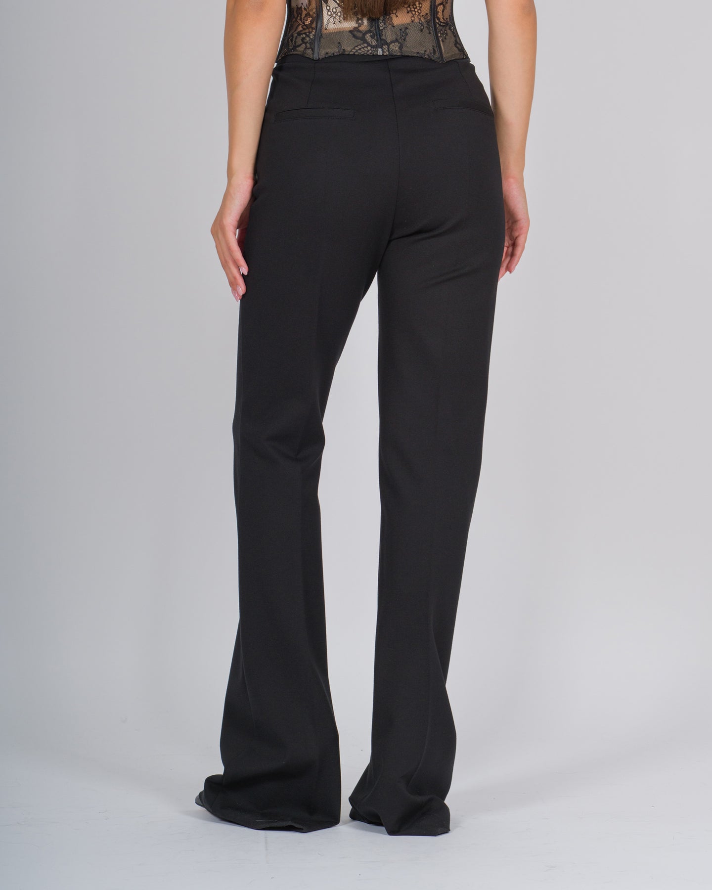 Il pantalone Silence in crepe nero unisce eleganza e stile contemporaneo. Caratterizzato da una vita alta, valorizza la silhouette, mentre la coscia stretta e il taglio largo e lungo al fondo creano un effetto fluido e slanciato, perfetto per un look sofisticato e moderno.Le tasche a filo completano il design, conferendo pulizia e minimalismo, mentre il tessuto crepe garantisce comfort, movimento e un'eleganza naturale. Questo capo è ideale per essere abbinato a camicie raffinate, blazer sartoriali o top eleganti, sia in contesti professionali che in occasioni serali.