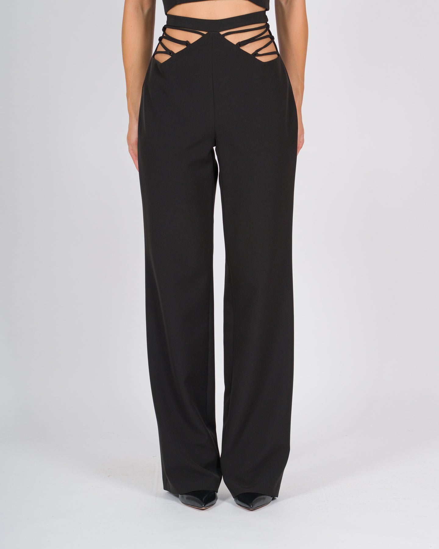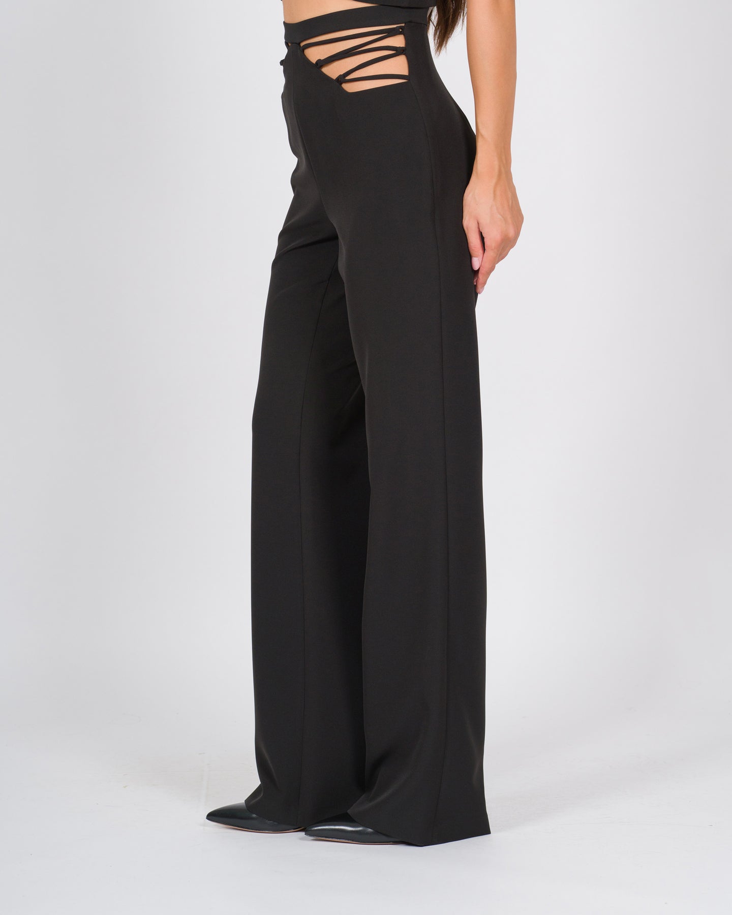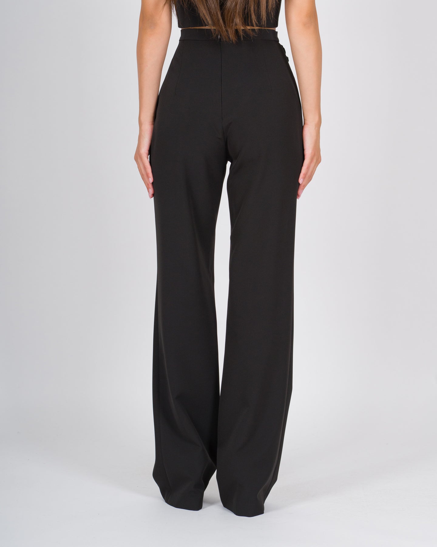 Pantalone Silence nero dal design elegante e contemporaneo, caratterizzato da vestibilità palazzo che dona fluidità e movimento alla silhouette. I tagli anteriori ai lati aggiungono un dettaglio distintivo e moderno, rendendo il capo sofisticato e di carattere. Pensato per essere abbinato alla giacca coordinata, completa un look raffinato e versatile.Dettagli del capo:Vita regolare, confortevole e adatta a diverse occasioniVestibilità palazzo, ampia e scivolata per slanciare la figuraTagli ai lati anteriori, che arricchiscono il design con un dettaglio originaleTessuto fluido e strutturato, perfetto per mantenere la formaColore nero, elegante e facile da abbinarePerfetto da indossare con la giacca coordinata per creare un tailleur moderno e sofisticato, oppure singolarmente per look casual-chic o eleganti.