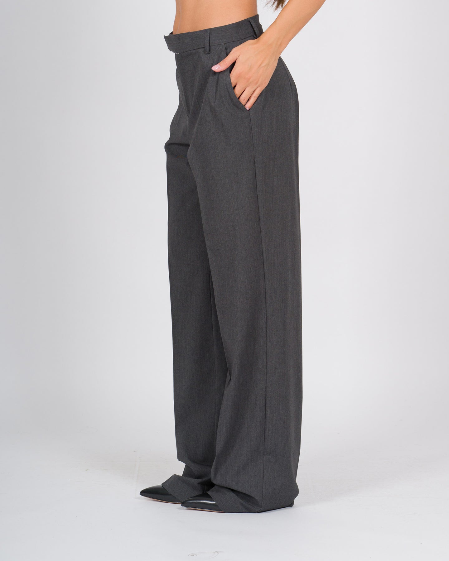 Pantaloni palazzo in lana antracite, eleganti e senza tempo, caratterizzati da tasche a filo e da un taglio ampio e fluido che slancia la silhouette. Realizzati in tessuto di lana, uniscono comfort e raffinatezza, risultando perfetti per outfit sia formali che casual-chic.Dettagli del capo:•Vita regolare o alta, per una vestibilità femminile e confortevole•Gamba palazzo, ampia e scivolata, dall'effetto slanciato•Tasche a filo, discrete e raffinate, che mantengono la linea pulita•Tessuto in lana, caldo e strutturato•Colore antracite, intenso ed elegantePerfetti da abbinare a camicie, maglie leggere o blazer coordinati, ideali per creare look eleganti, business o serali.