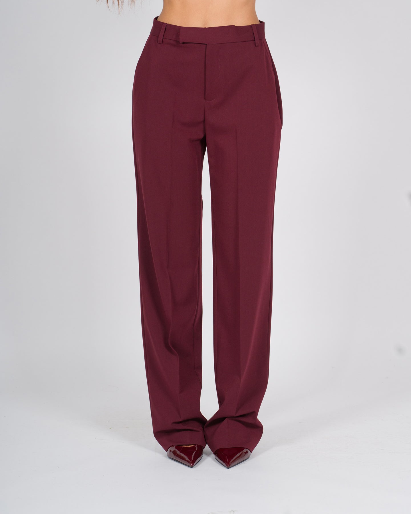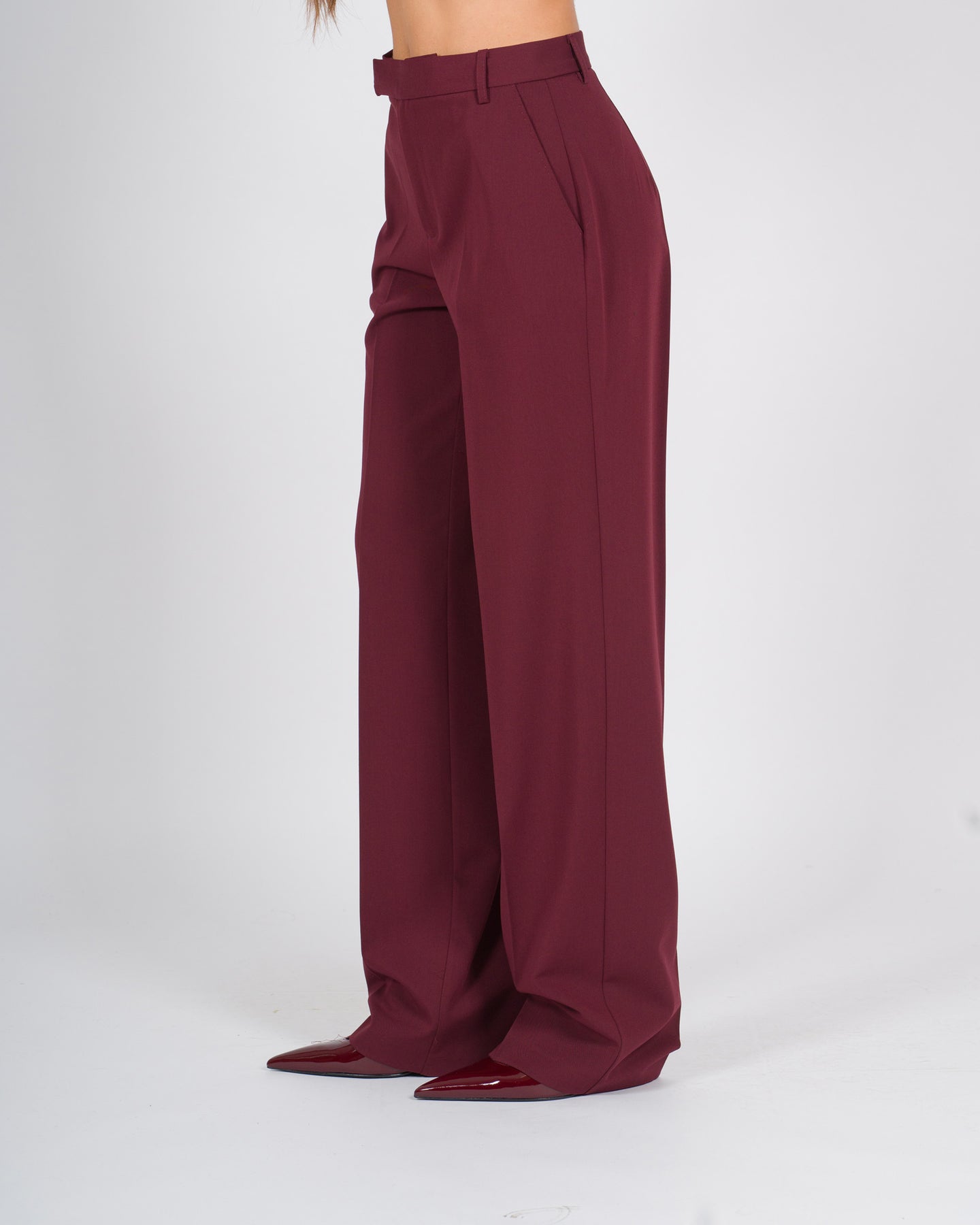 Pantaloni palazzo in lana bordeaux, eleganti e senza tempo, caratterizzati da tasche a filo e da un taglio ampio e fluido che slancia la silhouette. Realizzati in tessuto di lana, uniscono comfort e raffinatezza, risultando perfetti per outfit sia formali che casual-chic.Dettagli del capo:Vita regolare o alta, per una vestibilità femminile e confortevoleGamba palazzo, ampia e scivolata, dall'effetto slanciatoTasche a filo, discrete e raffinate, che mantengono la linea pulitaTessuto in lana, caldo e strutturatoColore bordeaux, intenso ed elegantePerfetti da abbinare a camicie, maglie leggere o blazer coordinati, ideali per creare look eleganti, business o serali.