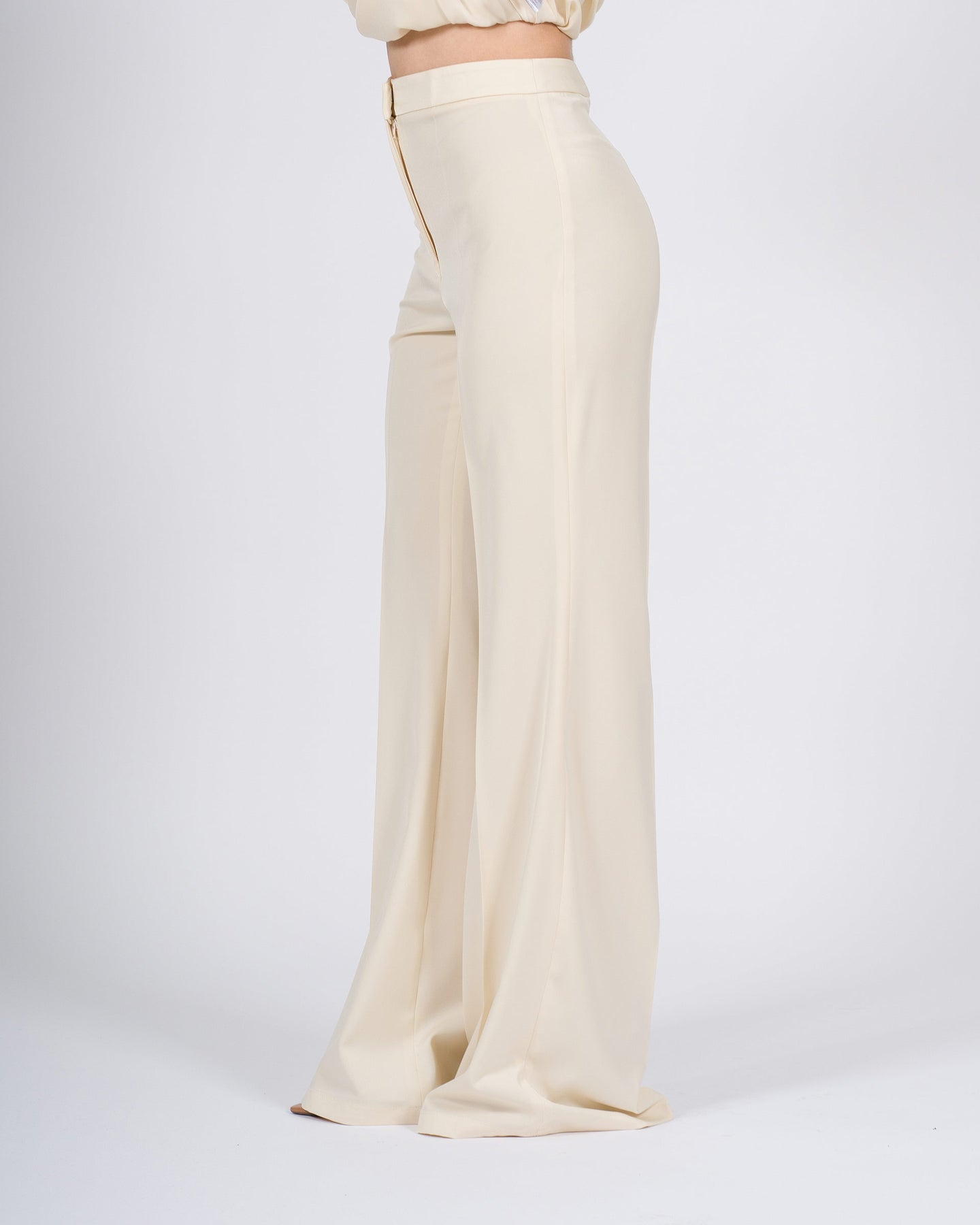 Sofisticati e femminili, questi pantaloni palazzo in raso panna uniscono eleganza e comfort. La linea ampia e fluida valorizza la silhouette e crea un effetto elegante in ogni movimento. Perfetti da abbinare a top minimal, camicie leggere o bluse più ricercate, sono ideali per outfit formali, eventi serali o look chic quotidiani.