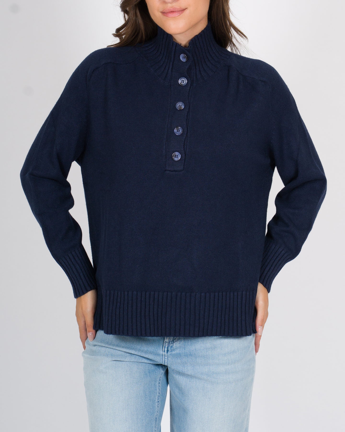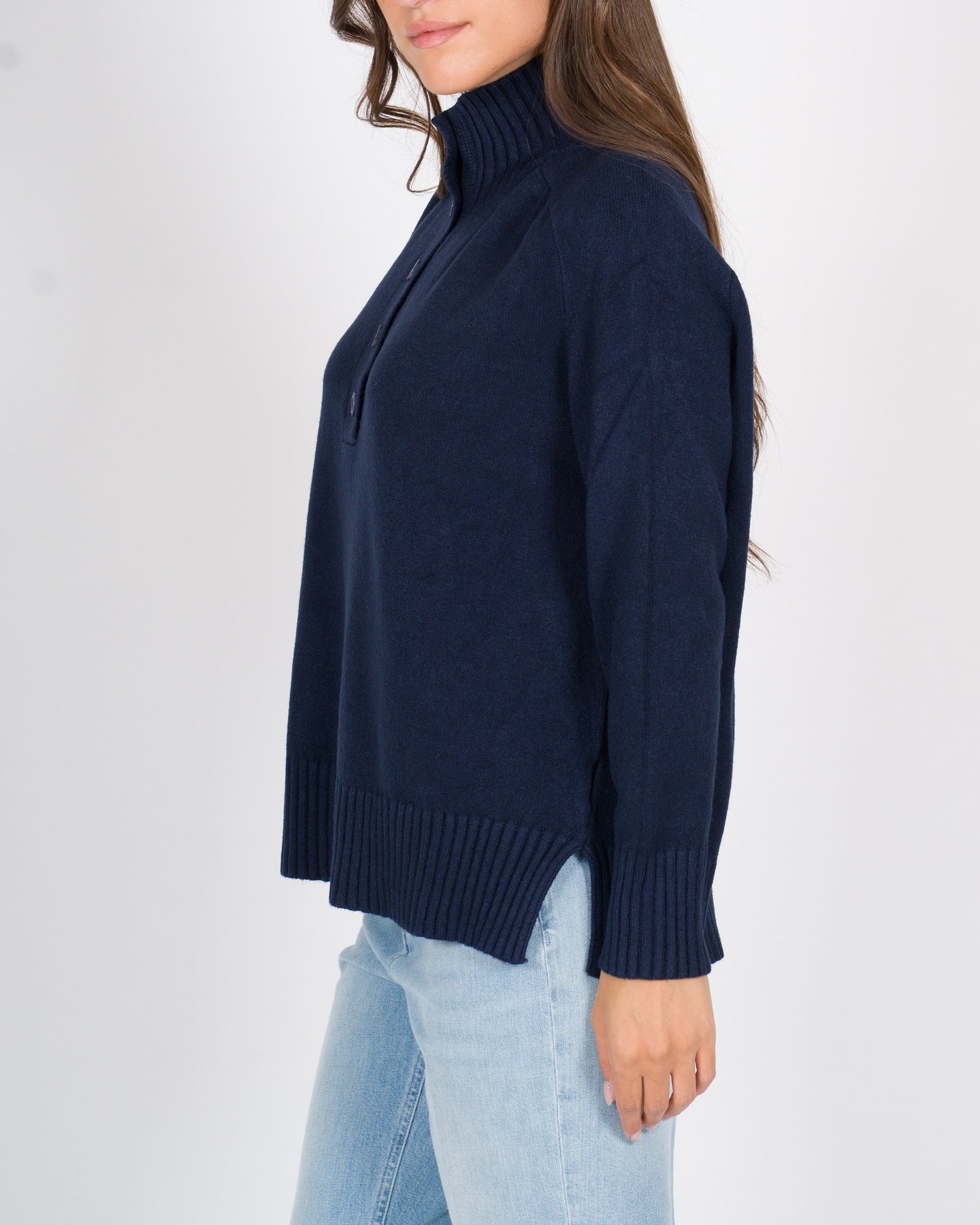 Maglia elegante e versatile realizzata in morbido tessuto di viscosa, perfetta per un look curato e confortevole. Il modello presenta maniche lunghe e un raffinato collo pistagna a coste, che dona un tocco moderno e strutturato al capo. La chiusura con cinque bottoni sul davanti aggiunge un dettaglio distintivo e permette di regolare l'apertura secondo il proprio stile. Il design essenziale ma ricercato rende questa maglia ideale sia per contesti casual che più formali.Dettagli tecnici:Chiusura 5 bottoniTessuto: viscosaColore: bluLa modella indossa la taglia S/M ed è alta 1.70