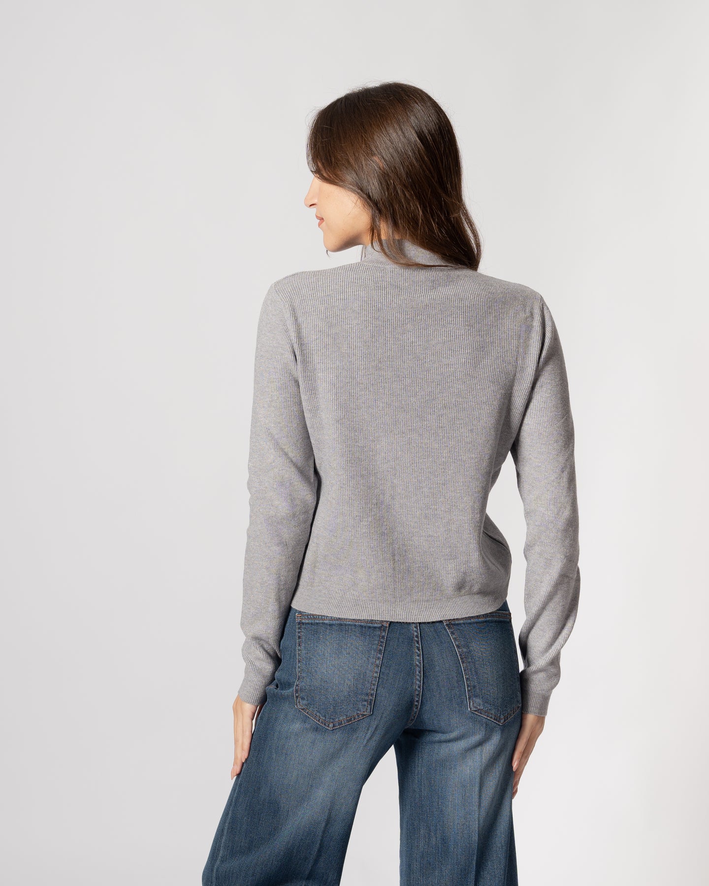 Maglia manica lunga con apertura a goccia sul petto in tessuto viscosa colore grigio.