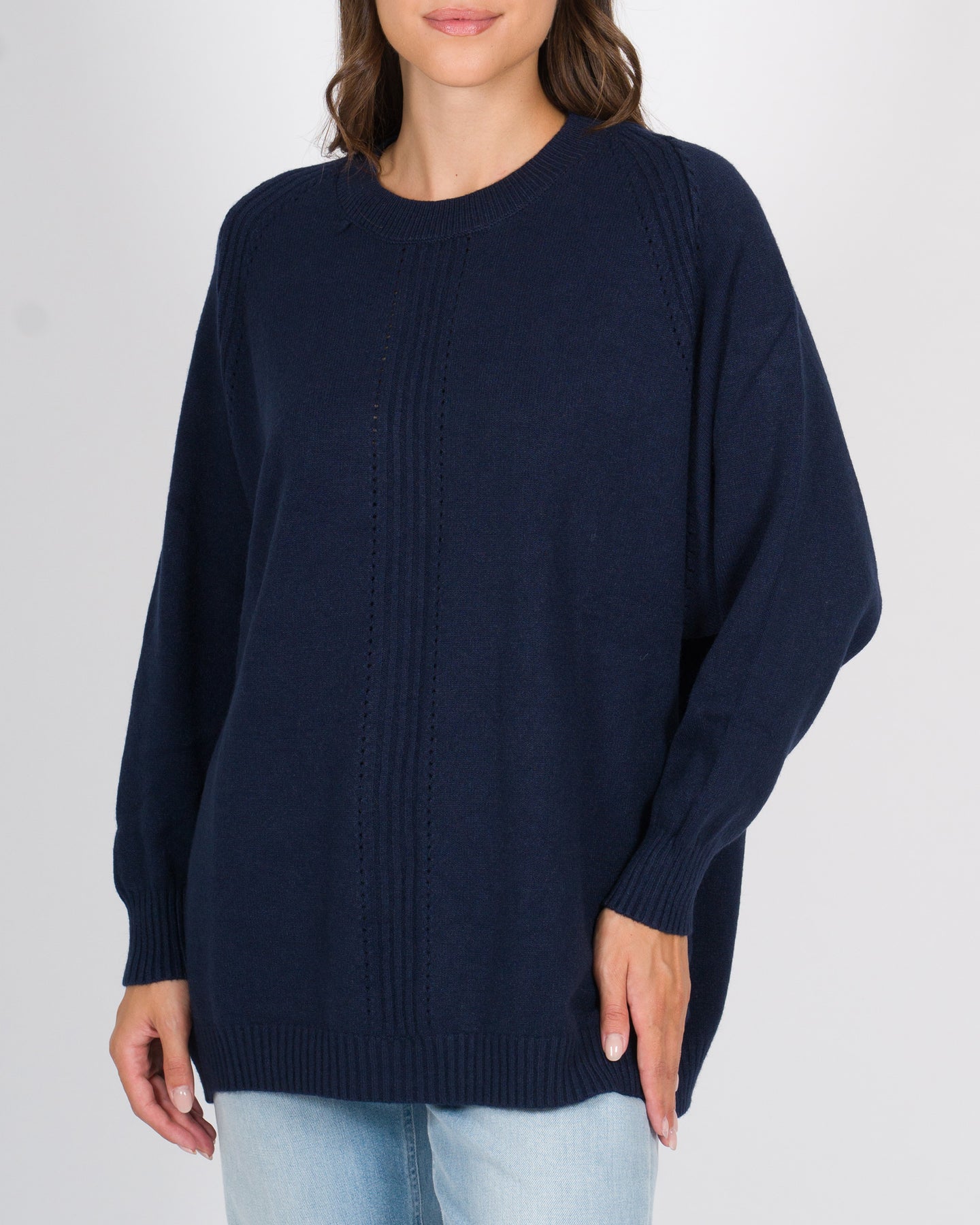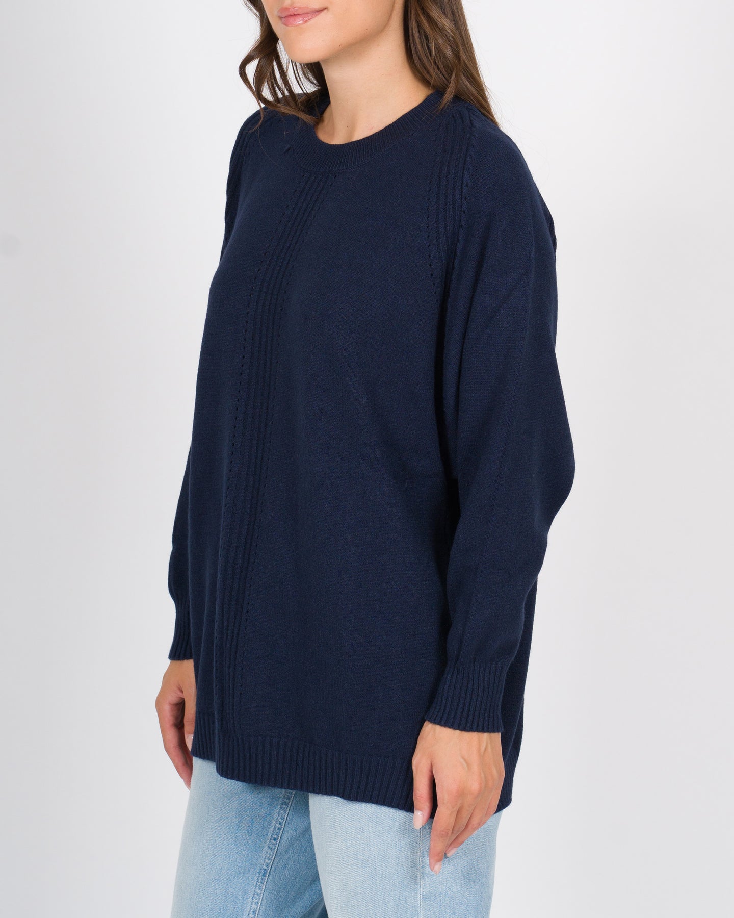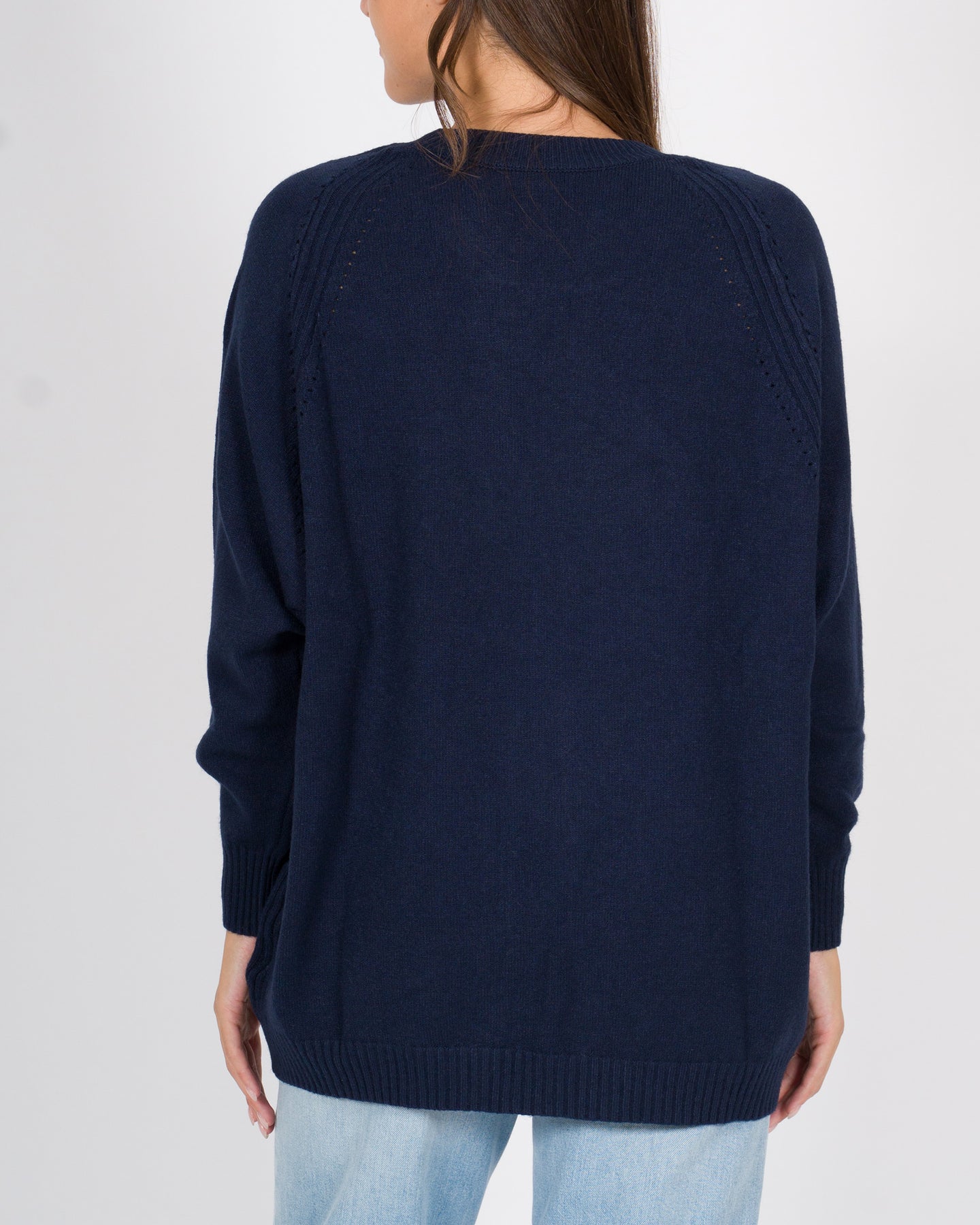 Capo versatile e avvolgente, perfetto per aggiungere un tocco di stile rilassato ma curato i look quotidiani. Pullover realizzato in morbida e calda viscosa, questa maxi maglia con maniche lunghe è pensata per offrire comfort e stile in un unico capo. La linea è morbida oversize.I dettagli distintivi riguardano la lavorazione a coste posizionata al centro e lungo le spalle e la manica raglan.Dettagli tecnici:Manica raglanLavorazione a coste centrale Tessuto: viscosa Colore: bluLa modella indossa la taglia S/M ed è alta 1.70.