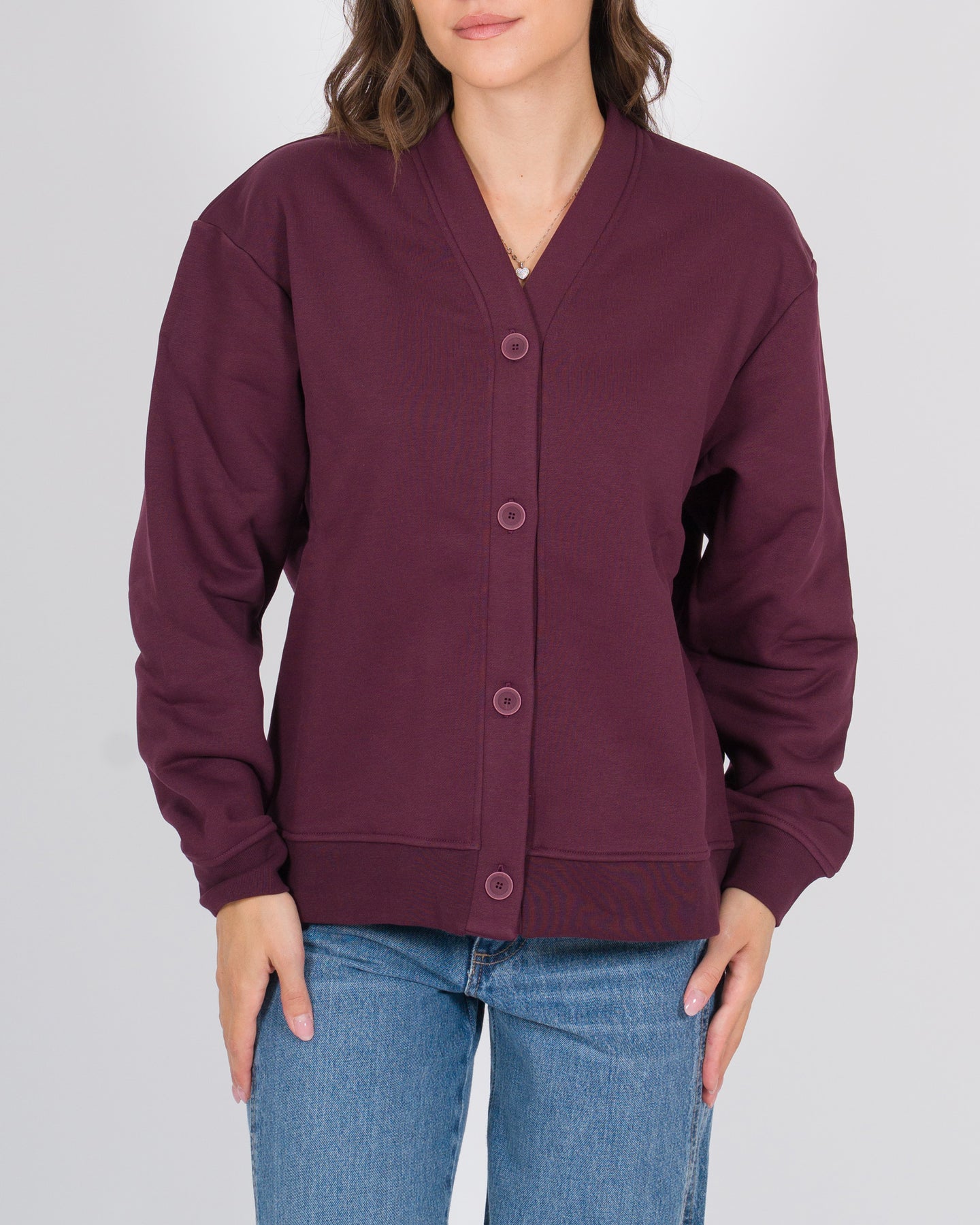 Un classico rivisitato in chiave casual. Questo cardigan firmato WOC è realizzato in morbida felpa vino e presenta un design essenziale con scollo a V e chiusura frontale a bottoni. Le maniche lunghe e la vestibilità confortevole lo rendono un capo versatile, perfetto da indossare sia come strato leggero che come alternativa alla felpa tradizionale.