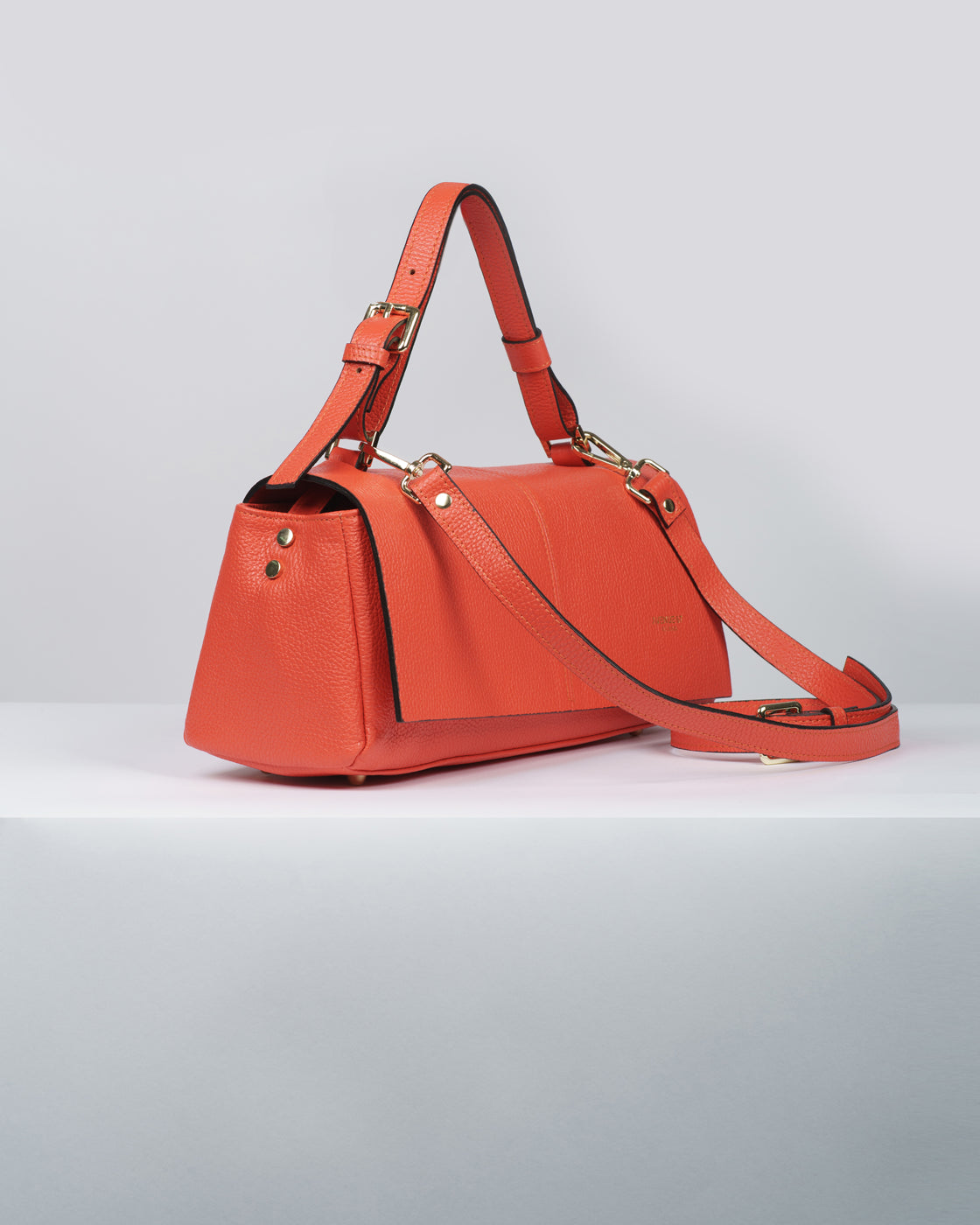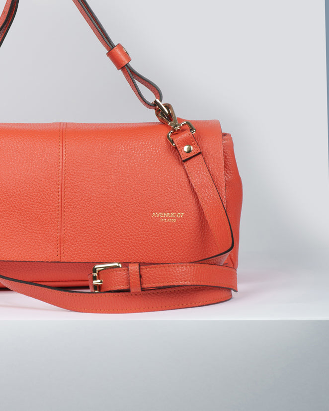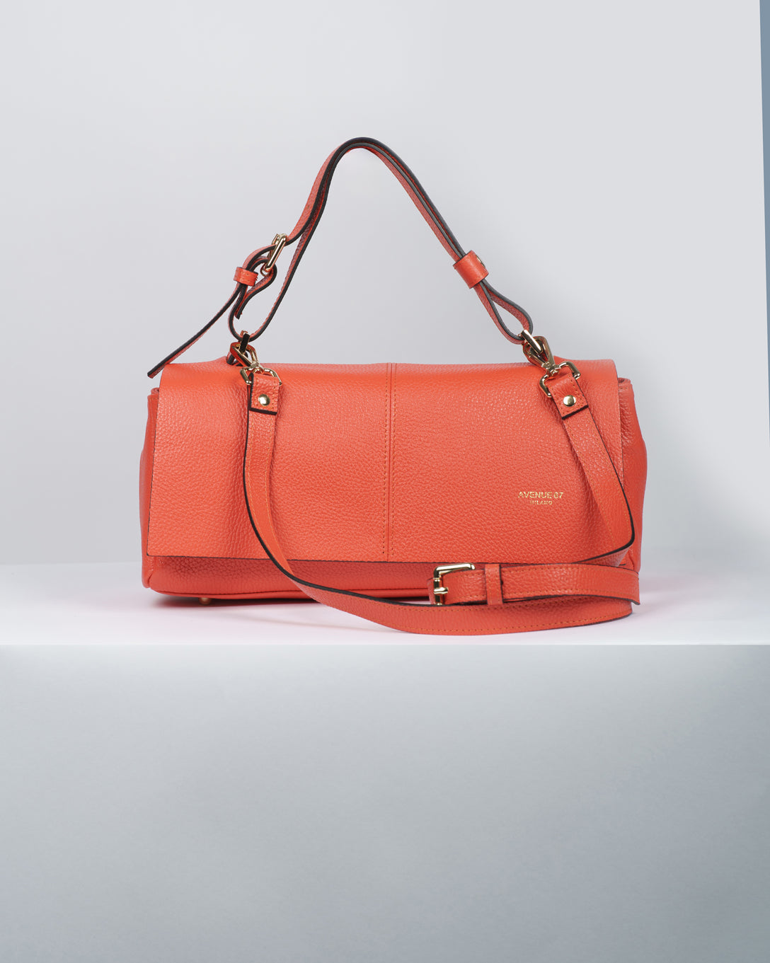 Borsa baguette con patella, chiusura con cerniera e bottone, manico regolabile, unico vano, tasca con zip e doppia tasca portaoggetti, tracolla rimovibile cm.98Pelle: DOLLAROSIZE cm L.32 H.14 P.12