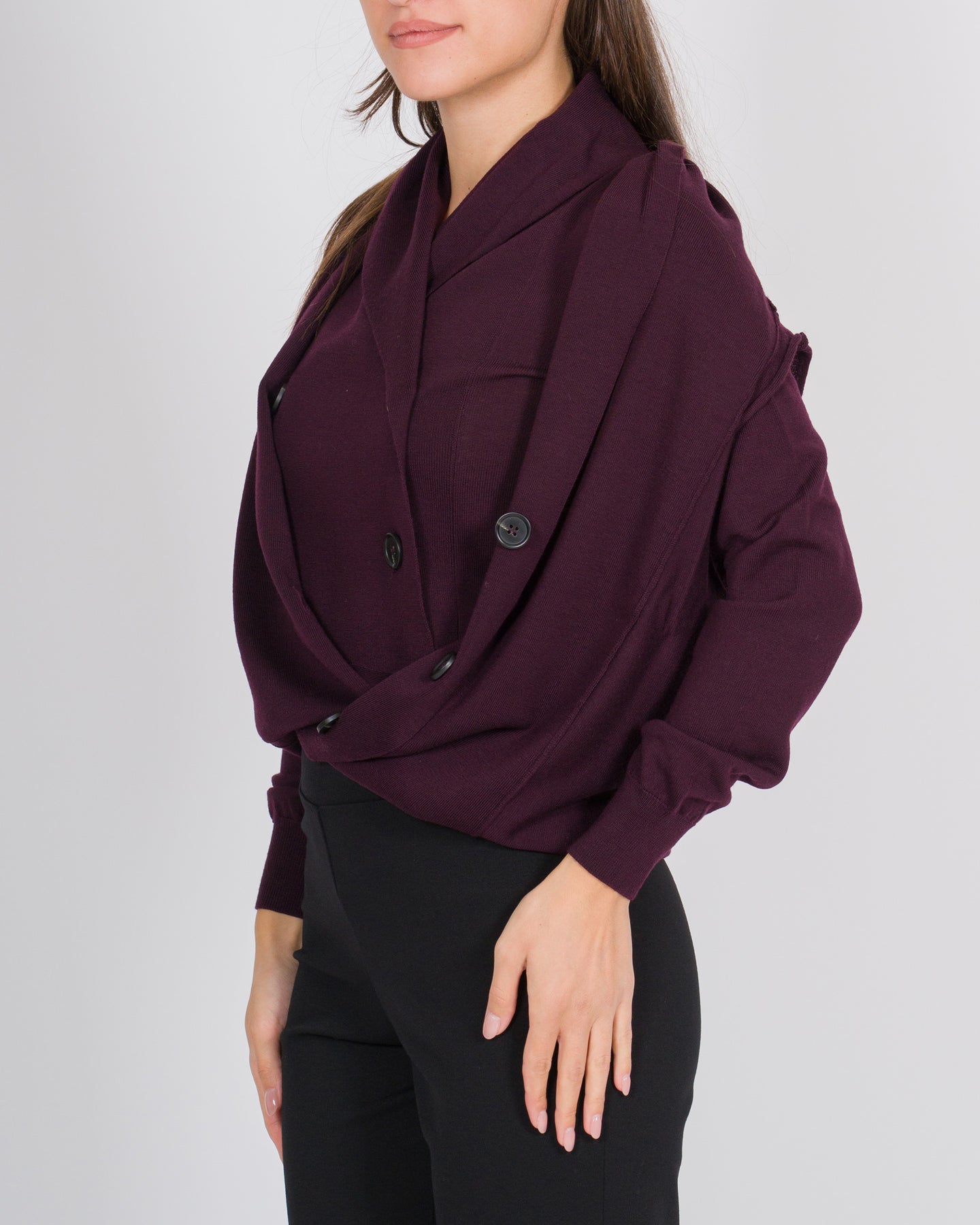 Un capo dal fascino senza tempo, il cardigan lungo Meimej si distingue per la sua silhouette avvolgente e la lavorazione pregiata in lana punto stoffa, che conferisce struttura e morbidezza al tempo stesso.La chiusura doppiopetto e il collo sciallato richiamano l'eleganza dei cappotti sartoriali, mentre la tonalità bordeaux profondo aggiunge un tocco di calore e sofisticatezza. Le maniche lunghe e il taglio allungato completano il design, offrendo comfort e versatilità in ogni occasione.Perfetto da indossare come capospalla leggero o come elemento protagonista di un look raffinato, questo cardigan incarna l'essenza di Meimej: un equilibrio armonioso tra eleganza moderna e dettagli artigianali.