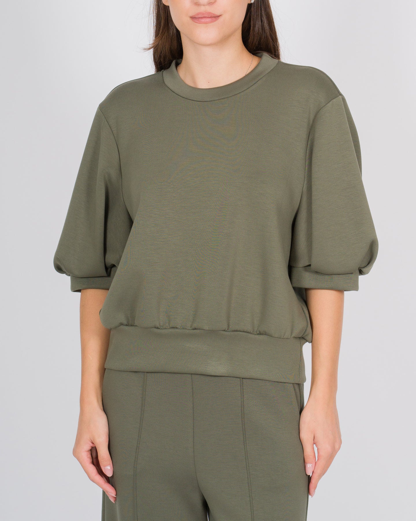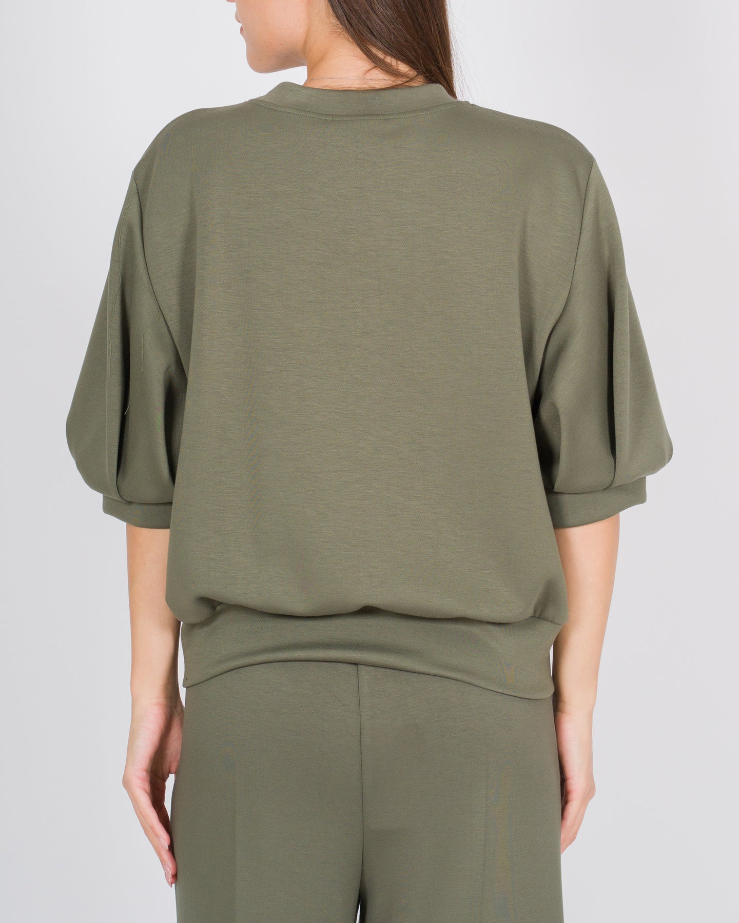 Maglia trequarti in jersey verde con elastico al fondo e manica a sbuffo