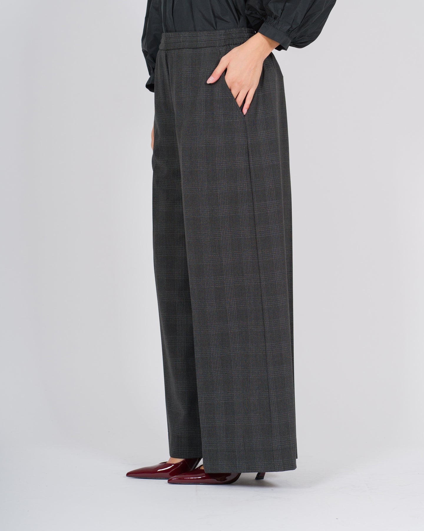 Dallo stile ricercato e contemporaneo, questo pantalone Meimej in tessuto di lana con texture a quadri unisce eleganza e comfort in un design raffinato. I volumi morbidi creano una silhouette fluida e armoniosa, mentre il bustino elastico in vita assicura una vestibilità naturale e disinvolta.Il motivo a quadri tono su tono conferisce profondità visiva e un tocco sartoriale, rendendo il capo ideale per look sofisticati ma rilassati, perfetti dal giorno alla sera.