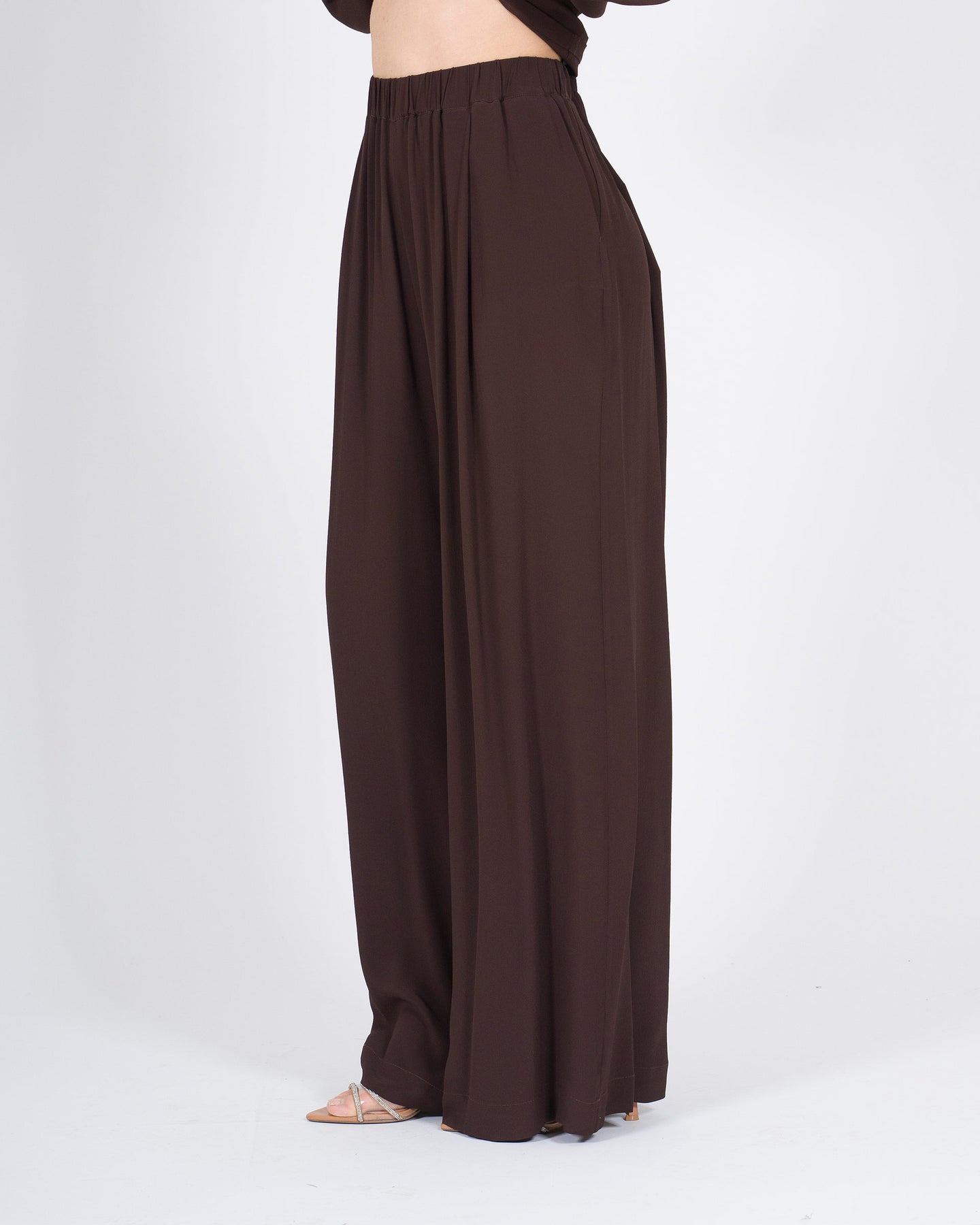 Fluidità elegante, volumi morbidi, stile contemporaneo.I pantaloni palazzo MEIMEJ in seta con elastico in vita avvolgono la silhouette con leggerezza, combinando comfort e linee raffinate per un look minimal e sofisticato.Un capo versatile, perfetto da abbinare a camicie, top o giacche leggere per outfit eleganti e ricercati.