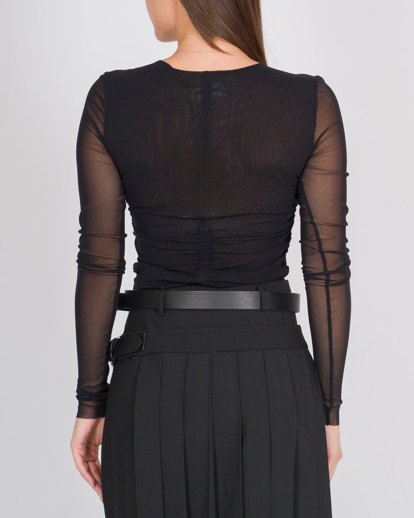 T-shirt in chiffon trasparente con scollo arricciato nera