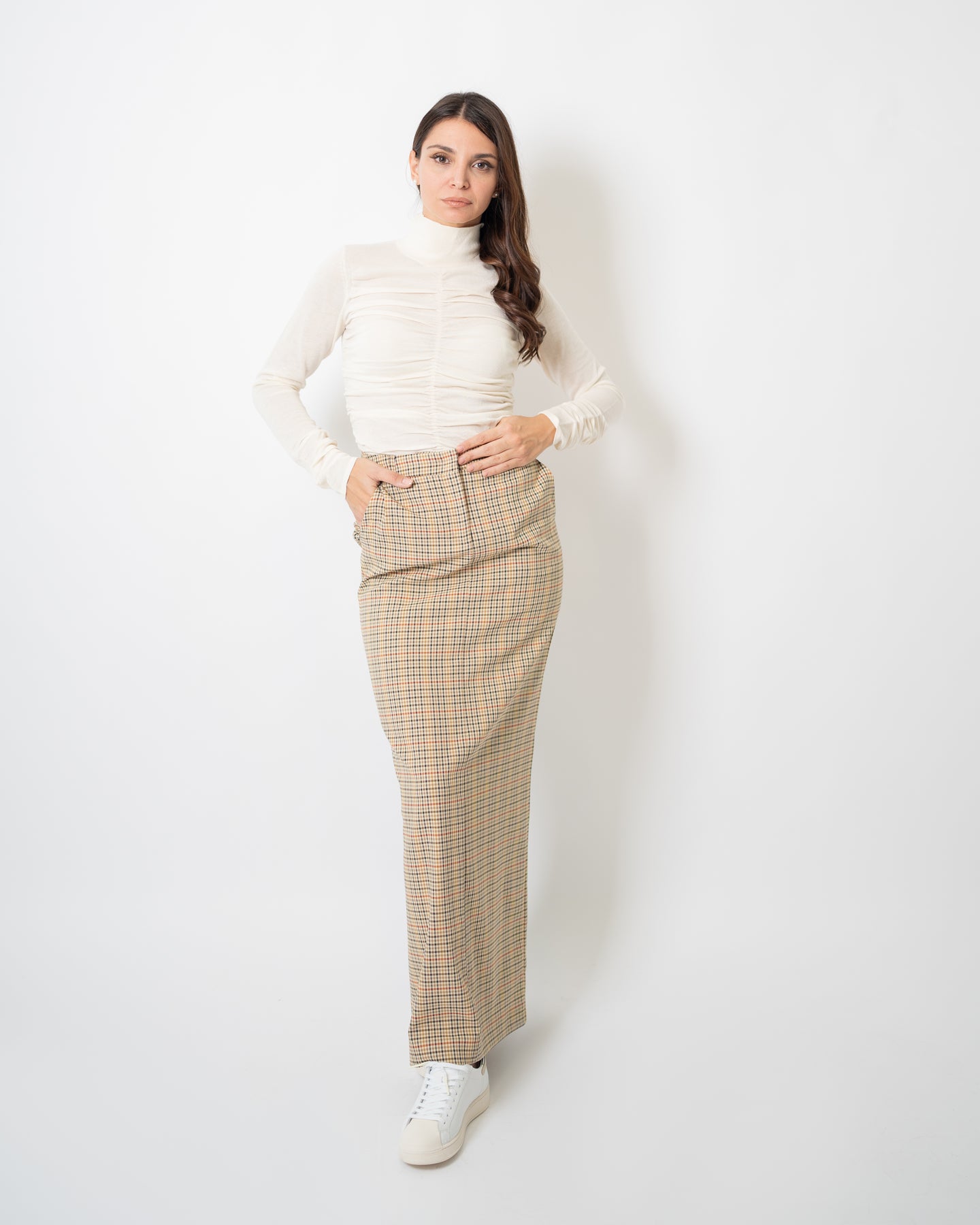 Gonna lunga, vestibilità dritta, spacco sul retro, fantasia check.
